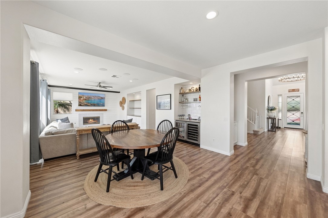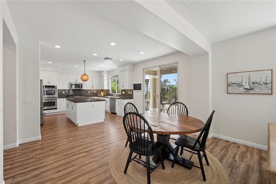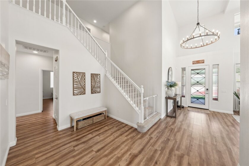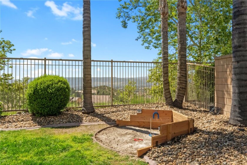 *PRIVATE POOL & SPA * STUNNING VIEWS * PRIVACY * LARGE LOT * GUARD-GATED COMMUNITY Set near the highest point in Greer Ranch on an expansive 11,761 sq ft lot, this exceptional 3,806 sq ft home showcases sweeping views of the Santa Rosa Plateau & Temecula Valley, with only one home above it. A long driveway, new landscaping, freshly painted exterior, updated wrought-iron glass front door & 3 car garage create a striking first impression. Inside, soaring 2 story ceilings, luxury vinyl plank floors & neutral interior paint set the stage, while the formal living & dining rooms are filled with natural light from expansive windows. The kitchen features granite counters, white cabinetry, stainless steel appliances & a walk-in pantry, opening to a beautifully updated farmhouse-style family room with shiplap accent wall, remodeled fireplace with wood mantle, custom built-in with floating shelves, recessed lighting, ceiling fan & dry bar with tile backsplash & beverage fridge. A wall-to-wall roll-up screen with hidden projector adds a fun touch for movie nights. The main floor offers a bedroom with ceiling fan & walk-in closet & includes an attached bath with walk-in shower, ideal for guests or multi-gen living, along with an additional upgraded 1/2 bath & laundry room with sink & abundant cabinetry off the 3 car garage with epoxy floors & hi-loft storage. Upstairs offers 3 secondary bedrooms (2 of them a Jack-n Jill), 2 baths & a large bonus room with wood floors, barnwood door entry & balcony. Privately situated away from the secondary bedrooms, the primary suite features double door entry, its own private balcony with stunning views, jetted tub, walk-in shower, make-up vanity & large walk-in closet. The backyard is a private haven with a saltwater pool & spa with fire bowls, grassy area, horseshoe pit & patio spaces to relax or entertain. Additional features include a Quiet Cool whole house fan, attic fan, NEST cameras & ADT pool security system. Located within the guard-gated Greer Ranch community with 24 hr security, scenic hiking & biking trails, parks, community pool & spa, and year-round neighborhood events. Enjoy convenient access to the 215 & 15 freeways, nearby shopping & dining, Old Town Temecula, Temecula wineries & the Promenade Mall, all w/in the highly regarded Murrieta school district. Don't miss this rare opportunity to own a pool & view home that blends privacy, space & everyday luxury.