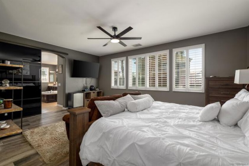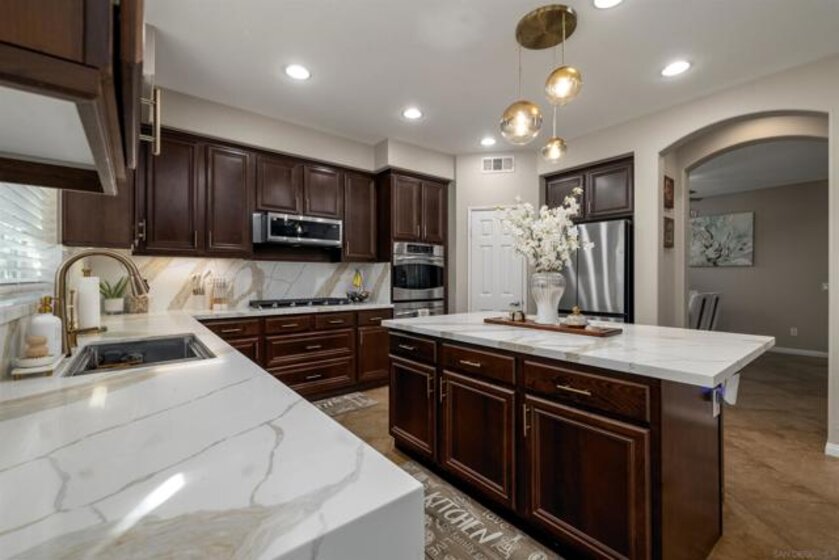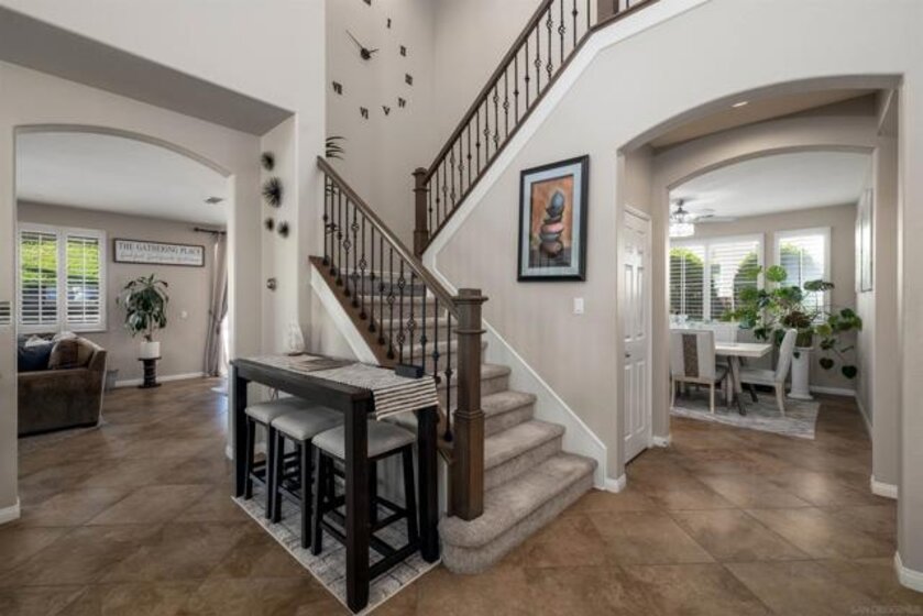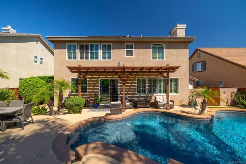Experience Resort Style Living in this beautifully updated 3,100 square foot home featuring 5 bedrooms, 3 baths and a 3 car garage. Backyard is an entertainers dream with a custom built saltwater pool and spa, fire-pit, built-in outdoor bbq/cooking area w/fridge, multiple fruit trees and can’t forget about the custom shed with trimmings to match the house exterior. When you first step in to this home, you will notice the large cathedral ceilings, updated staircase railing and newly added carpet in family room and stairs. A gorgeous remodeled kitchen with large island featuring quartz counter tops, sink with on/off touch faucet, microwave, stove range and fixtures. Open concept style family room with a fireplace and kitchen with separate dining room area. A bedroom, full bathroom and laundry room located on main floor. On the Second floor you will find the large owner’s suite with a custom glass barn door to the owner’s suite bathroom that features a spa tub, walk-in shower and 2 large walk-in closets. Down the hallway is a sitting area surrounded by the 3 additional large bedrooms with walk in closets and an additional large bathroom with dual sinks. Home is equipped with leased solar, 3 air conditioning units (downstairs, upstairs and garage), newly updated toilets in each bathroom, freshly painted walls in common areas, awnings/fence. Prime Location with top-rated schools, shopping centers, parks and freeway access. This home was well thought out and designed to be a personal retreat that makes coming home a dream and have pride in ownership.