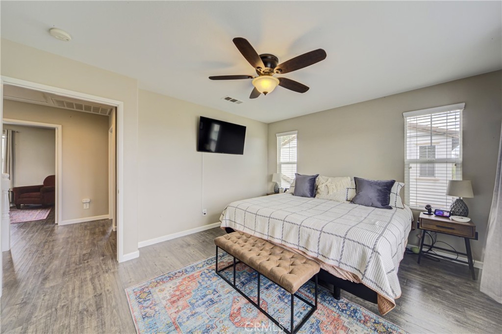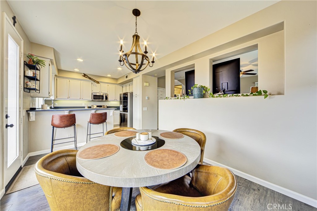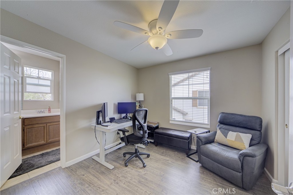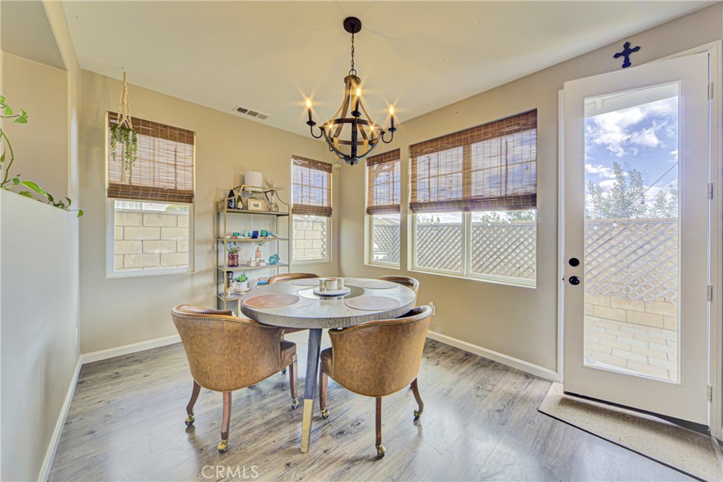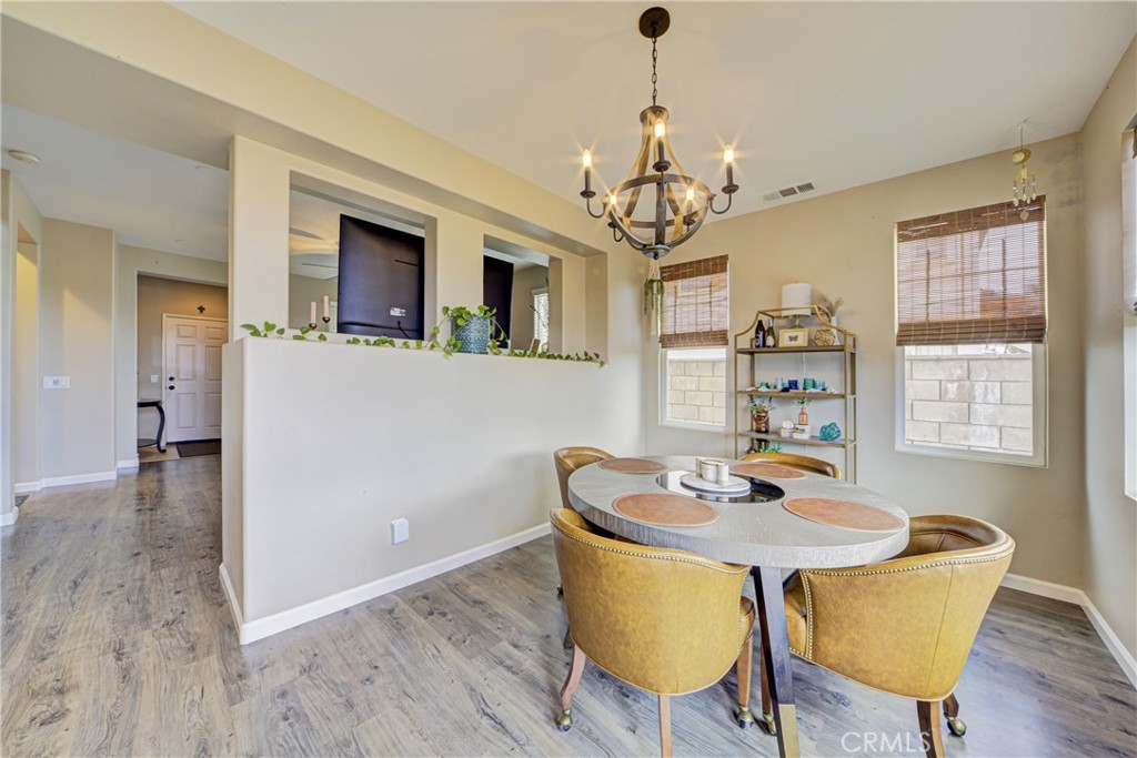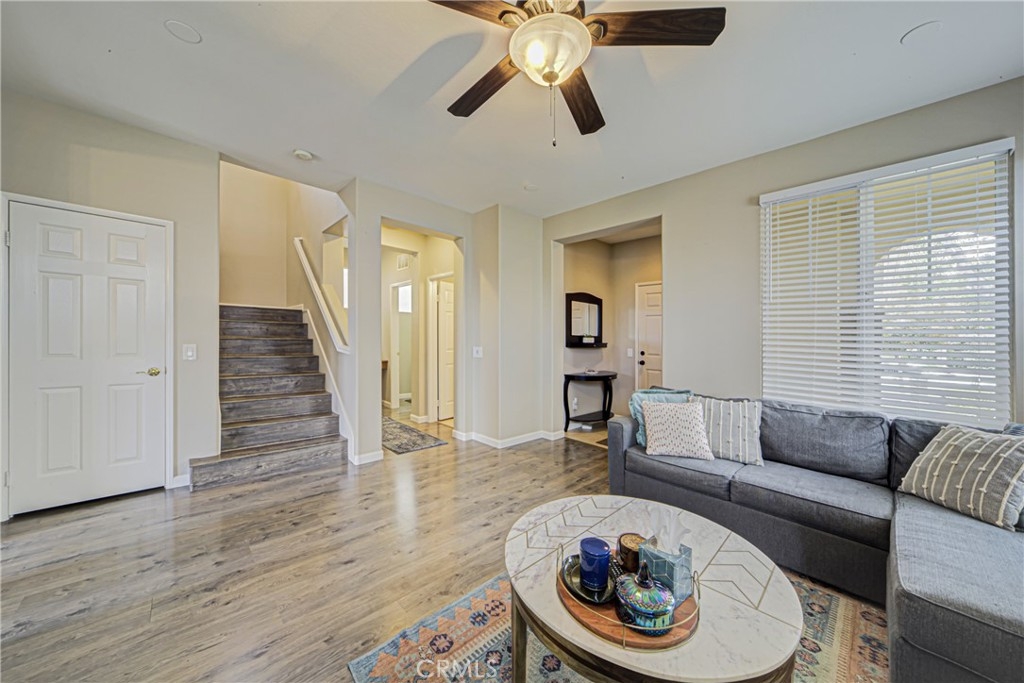 Introducing this stunning Murrieta residence! Boasting 3 bedrooms, 2.5 baths, and 1,464 square feet of living space, this home offers a serene retreat with a low maintenance backyard featuring a privacy block wall and no rear neighbors! Step inside to discover laminate and tile flooring throughout, creating a sleek and modern ambiance! The inviting living room welcomes you with a cozy fireplace, ceiling fan, and abundant natural light. The updated kitchen seamlessly flows into the dining room, showcasing updated countertops, barstool seating, recessed lighting, refinished cabinets, and stainless steel/black appliances - perfect for entertaining! The first floor also features a personal desk nook, laundry room with overhead storage, and an attached 2-car garage. Upstairs, the primary bedroom offers stunning East facing views of the nature preserve land, a ceiling fan, walk-in closet, dual sink vanity, and an oversized tub/shower. Two additional generously sized bedrooms share a Jack and Jill style full bath with dual sinks! Enjoy community amenities including a pool and kids play area within walking distance, while the HOA maintains front yard landscaping. With its pride of ownership, proximity to the 215 freeway, nearby shopping, and schools, this home is an absolute must-see!