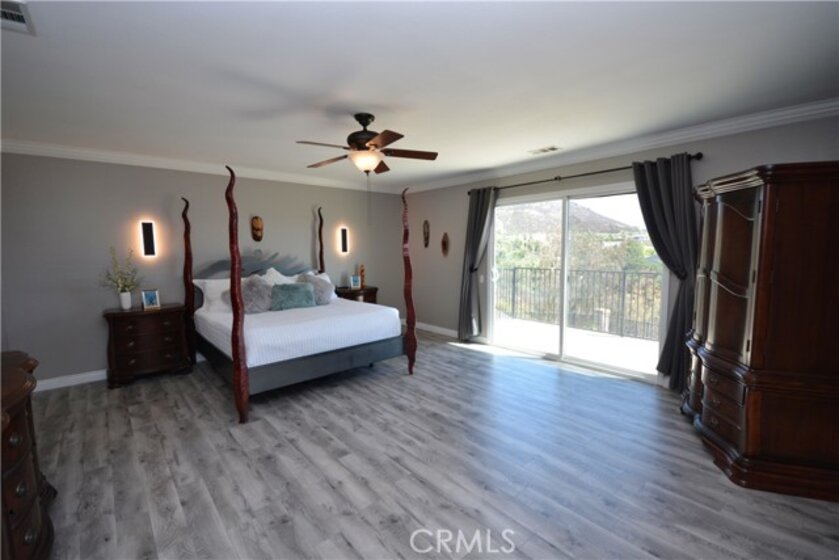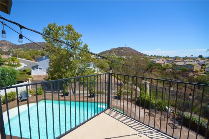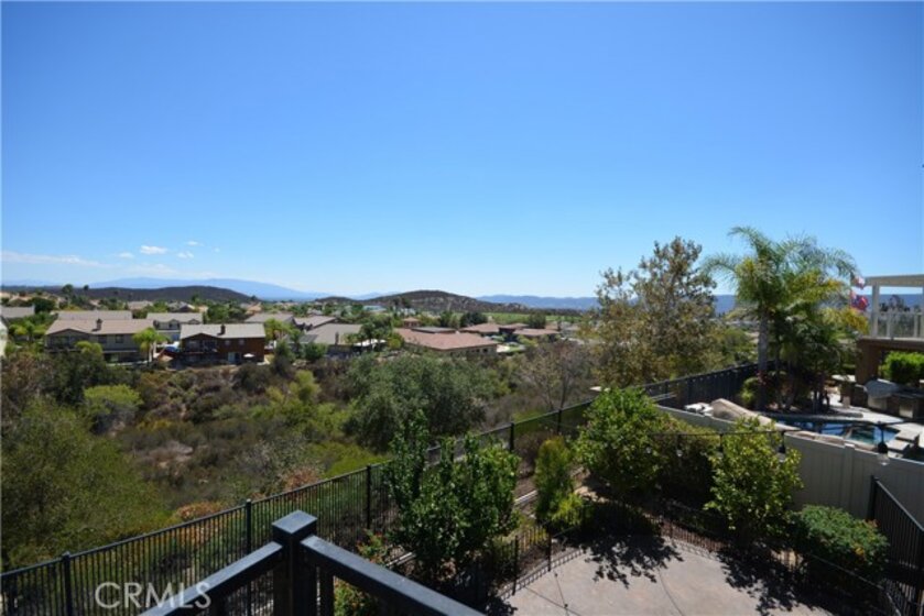 Stunning Panoramic views! Sparkling pool, main floor bedroom, quiet cul de sac location for privacy, No HOA dues, solar and low, low tax rate keep this home affordable! This highly upgraded executive home has all the features buyers request most. Enter through a covered front porch to the formal living room to see that the whole home has new hard wood flooring, new light fixtures, plantation shutters and more. Pass through the formal dining room to the spacious great room at the rear of the home which features a family room space with fireplace, eating area and impressive kitchen with granite counters, stainless appliance package, pantry, center island and absolutely loaded with cabinet and counter space. All of this looking out to the heated saltwater pool, spa, firepit and 180 degree views of all of Temecula, the hills and city lights. Main floor bedroom with its own bath and large laundry/mud room complete the main floor. Second floor features a massive loft/family room, 3 large guest bedrooms and an amazing primary suite with it's own private retreat/bonus room, luxury 5 piece bath, walk-in closet and private balcony/deck to take in the breathtaking views. New A/C and solar keep it cozy and comfortable. Outside, sculpted concrete patio, sunken fire pit, pool, covered dog run, and fruit trees all on a lot that you just can't find anywhere else. Home water softener filtration system, new perimeter fencing, removable locking security pool gate and so much more. Close to parks, top rated schools, shopping, award winning wineries, and with easy freeway access for commuters. Homes with all these features are hard to find, and even harder to forget, if you let it pass you by!