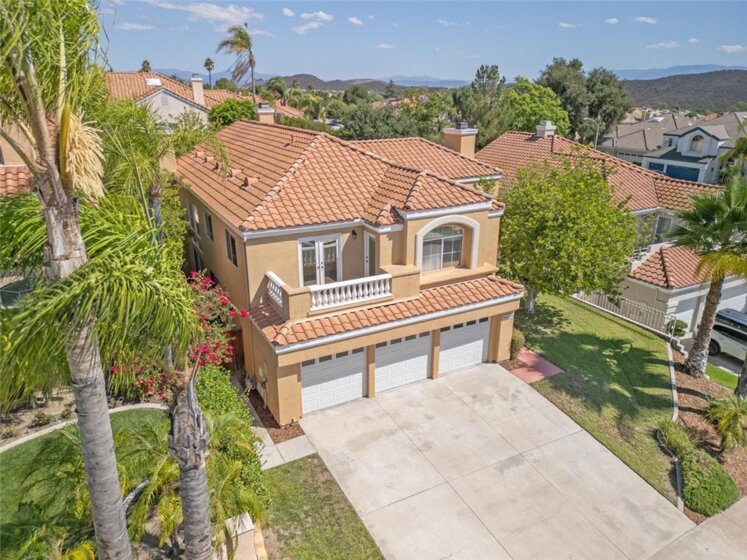 LOW TAXES & NO HOA!! Welcome to this beautifully maintained 2-story executive home in the heart of Murrieta, offering 5 bedrooms, 3 full bathrooms & 3,176 sf of thoughtfully designed living space on a 7,841 sf cul-de-sac lot! This quality-built home is located in one of Murrieta's most desirable neighborhoods, Corta Bella, known for its family friendly atmosphere, well-kept surroundings & convenient access to everything the area has to offer. Curb appeal shines with an inviting exterior, mature landscaping & spacious 3-car garage. Step through front door & you're greeted by a stunning curved wooden staircase that sets the tone for elegance & craftsmanship of the home. Rich dark hardwood floors in entryway create warmth & contrast beautifully with the neutral colors found throughout. The formal living room offers a cozy fireplace & high ceilings, making it an ideal space for entertaining. Adjacent to the living room is a spacious dining room, perfectly suited for holiday dinners & celebrations. The family room, featuring its own fireplace, flows seamlessly into the kitchen, creating a welcoming open-concept layout, perfect for family gatherings. Chef's kitchen is a standout feature of this home. With granite countertops, dark wood cabinetry, DBL ovens, built-in range, large center island & huge walk-in pantry, it offers both beauty & practicality. Downstairs, you'll also find a full bathroom & a generously sized bedroom, ideal for guests, in-laws, or home office. Upstairs, the thoughtful design continues with 4 spacious bedrooms. Primary suite is private retreat with its own fireplace & balcony overlooking backyard, providing a perfect spot for relaxation. En-suite bathroom includes dual sinks, a soaking tub & separate shower. Additional upstairs bedrooms are equally spacious. Backyard offers ample space for outdoor living, gardening & entertaining. Home is located within the Murrieta Valley Unified School District & is zoned for the highly rated schools including Antelope Hills Elementary, Shivela MS & Murrieta Mesa HS. Families will appreciate quick access to both the 15 & 215 Freeways. You're just minutes from shopping including a BRAND NEW Costco, dining & entertainment such as the award-winning Temecula wineries. Murrieta is known for its vibrant community & beautiful parks such as Los Alamos Sports Park & the BRAND NEW Glen Arbor Dog Park right off Nutmeg! Combining space, style & prime location, this quality-built Murrieta home is truly a rare find.