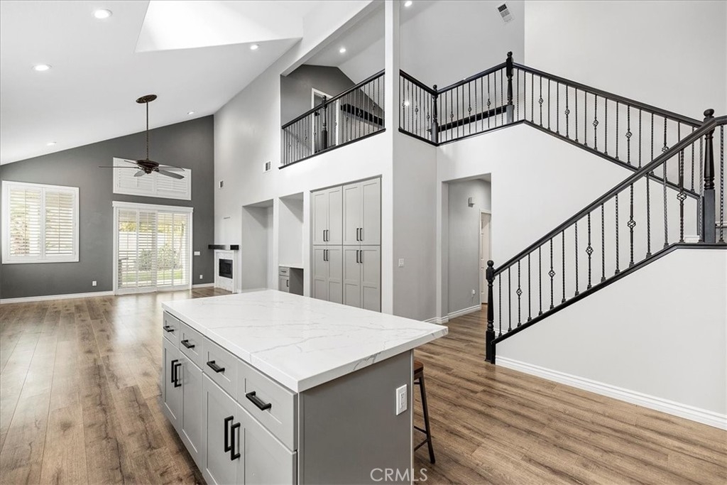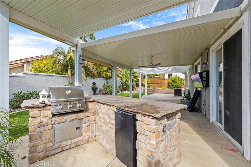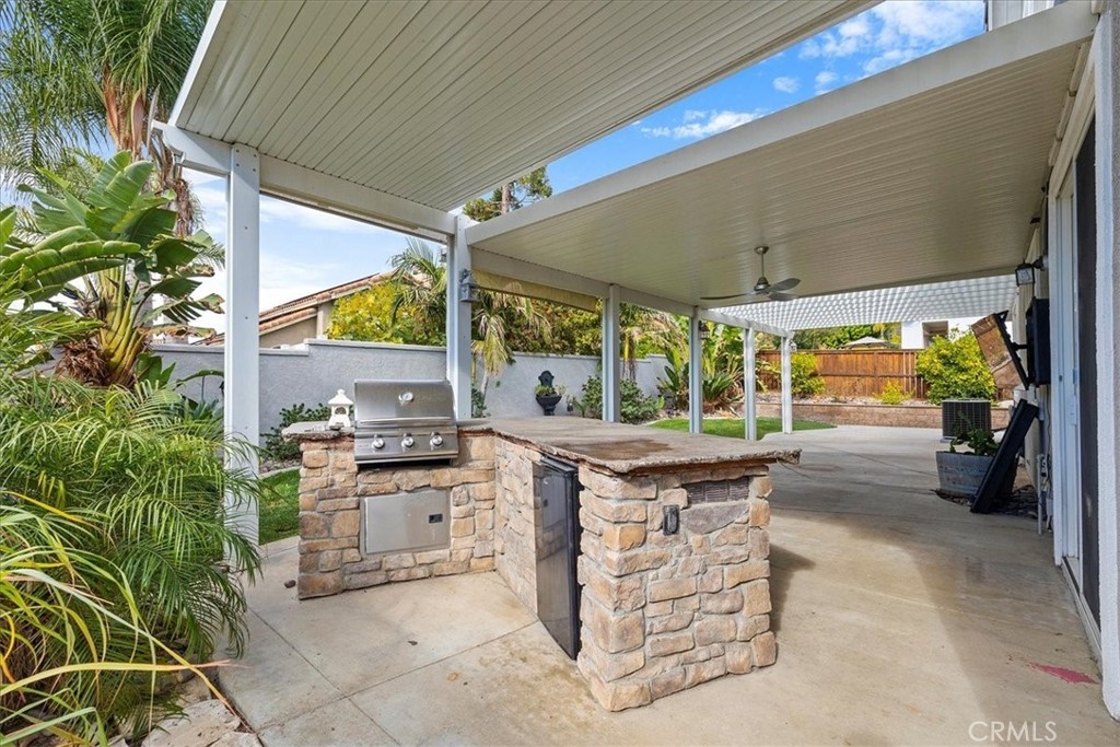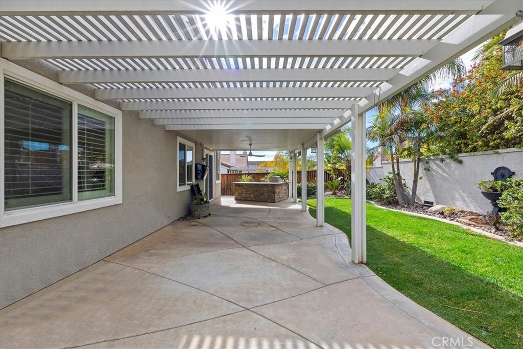 This Beautiful 4-bedroom, 3-bathroom home in the highly desirable Murrieta Oaks neighborhood combines the convenience of single-level living with the bonus of an upstairs retreat. SOLAR PAID OFF AND HO HOA! Located between the 15 and 215 freeways, premier shopping, dining, and the new Costco, this property is ideally situated for modern living. The main level features an open-concept design, with vaulted ceilings and the bright, upgraded kitchen at its heart. Upon entering you notice the upgrades and feeling of a quality home with high ceilings, laminate flooring, and wood shutters on windows. The Formal Dining-to-Living Room is in the front of the home and leads into the Kitchen-to-Family Room. The kitchen boasts stainless steel appliances, quartz countertops, stone backsplash, a new industrial faucet, an oversized sink, a spacious center island, and ample counter space, perfect for cooking and entertaining. The Kitchen-to-Family Room is complete with a cozy gas fireplace, and it all seamlessly connects to the outside backyard. The downstairs layout includes a luxurious primary ensuite, two additional bedrooms, a hallway bathroom, and a convenient laundry area. The Upstairs retreat is an open Loft, overlooking the main living space, along with a fourth bedroom and a full bathroom, ideal for guests, a home office or home gym. The backyard is an entertainer’s dream, featuring Alumawood patio covers, a built-in barbecue island with bar seating, and a brand-new BBQ grill and Mini Frig. The landscaped yard is enhanced by fruit trees, creating a serene outdoor retreat. With fully paid-for solar that transfers to the buyer, this home offers energy efficiency and long-term savings. Don’t miss this opportunity to own a versatile and stylish home in a prime Murrieta location!