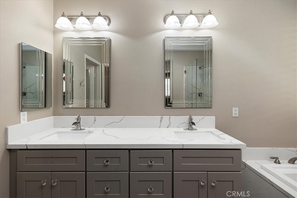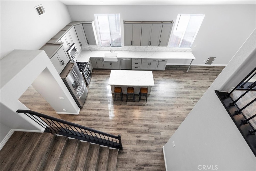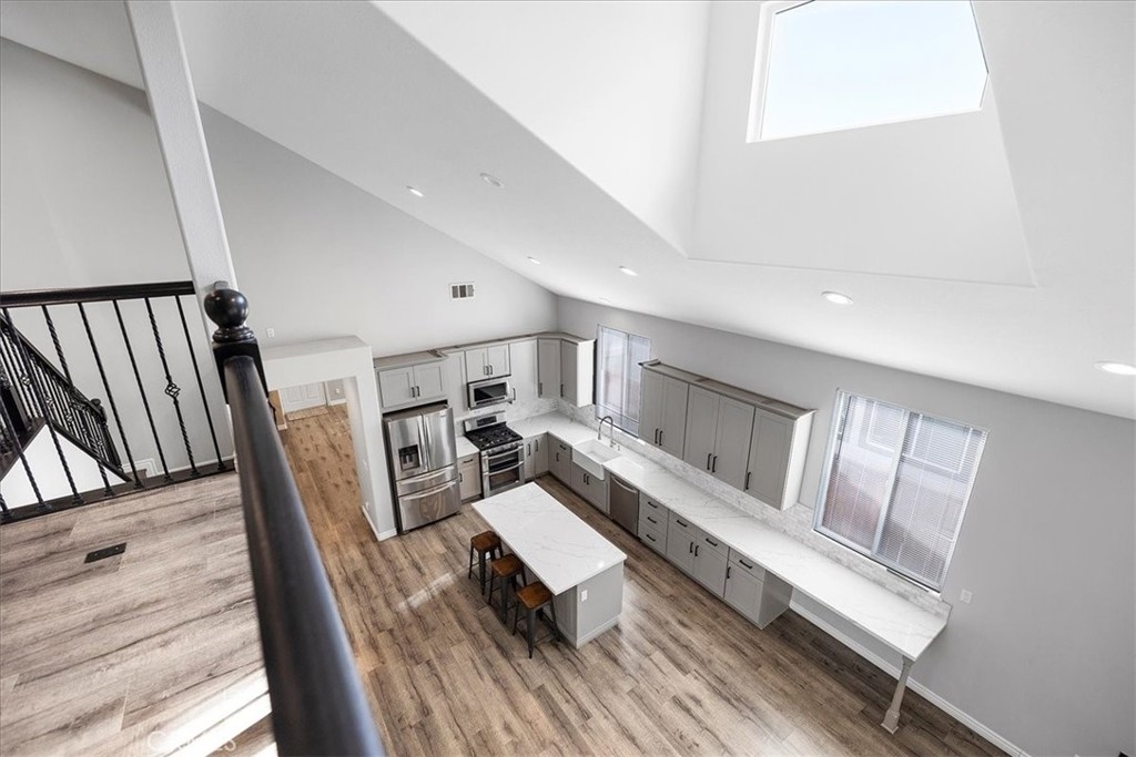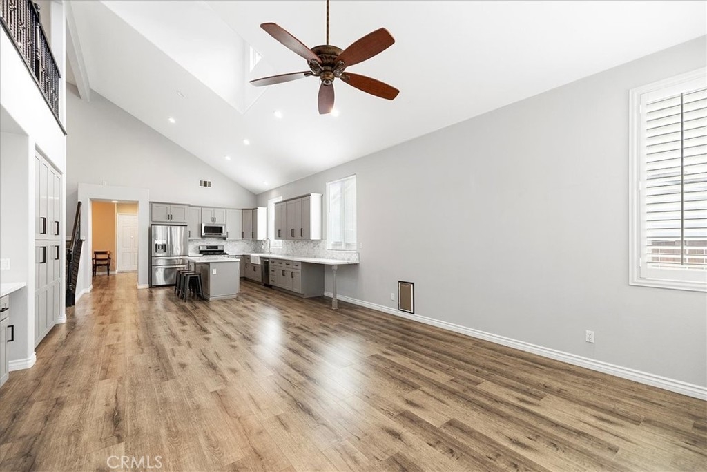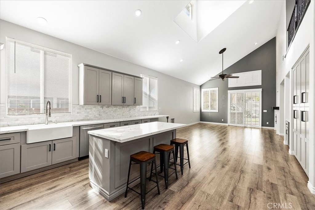 This Beautiful 4-bedroom, 3-bathroom home in the highly desirable Murrieta Oaks neighborhood combines the convenience of single-level living with the bonus of an upstairs retreat. SOLAR PAID OFF AND HO HOA! Located between the 15 and 215 freeways, premier shopping, dining, and the new Costco, this property is ideally situated for modern living. The main level features an open-concept design, with vaulted ceilings and the bright, upgraded kitchen at its heart. Upon entering you notice the upgrades and feeling of a quality home with high ceilings, laminate flooring, and wood shutters on windows. The Formal Dining-to-Living Room is in the front of the home and leads into the Kitchen-to-Family Room. The kitchen boasts stainless steel appliances, quartz countertops, stone backsplash, a new industrial faucet, an oversized sink, a spacious center island, and ample counter space, perfect for cooking and entertaining. The Kitchen-to-Family Room is complete with a cozy gas fireplace, and it all seamlessly connects to the outside backyard. The downstairs layout includes a luxurious primary ensuite, two additional bedrooms, a hallway bathroom, and a convenient laundry area. The Upstairs retreat is an open Loft, overlooking the main living space, along with a fourth bedroom and a full bathroom, ideal for guests, a home office or home gym. The backyard is an entertainer’s dream, featuring Alumawood patio covers, a built-in barbecue island with bar seating, and a brand-new BBQ grill and Mini Frig. The landscaped yard is enhanced by fruit trees, creating a serene outdoor retreat. With fully paid-for solar that transfers to the buyer, this home offers energy efficiency and long-term savings. Don’t miss this opportunity to own a versatile and stylish home in a prime Murrieta location!