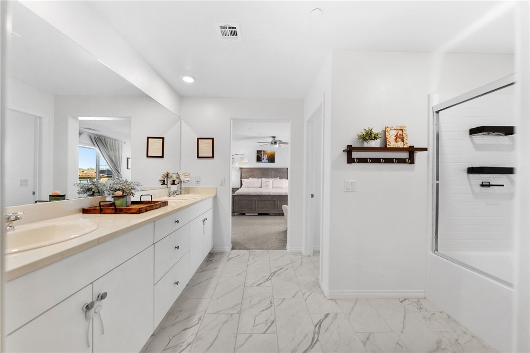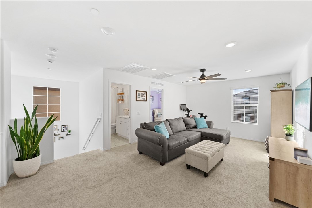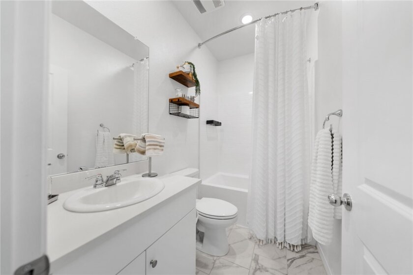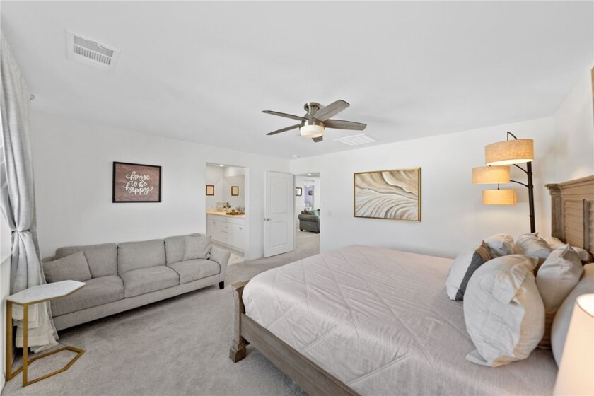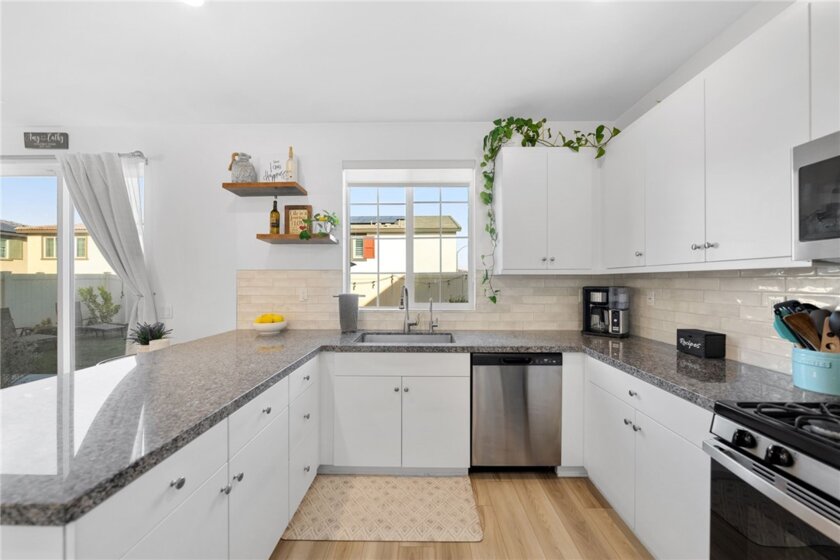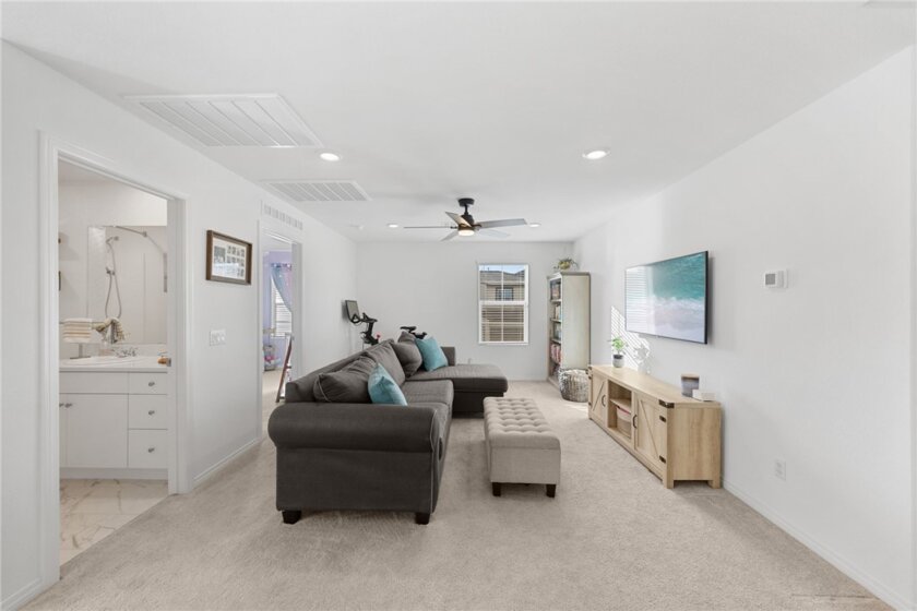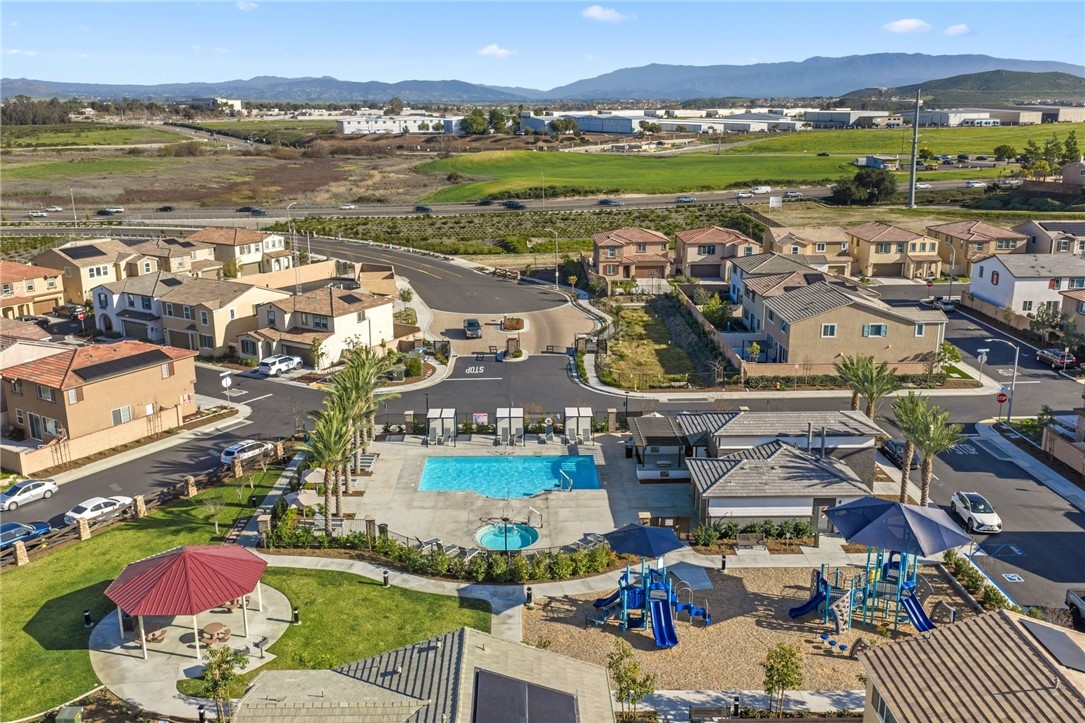 Tucked into one of the most desirable locations within the Willow Springs community, this beautifully maintained 4-bedroom, 3-bath home offers the space you need with the comfort you’ve been hoping to find. From the moment you step inside, natural light carries your view through the home and out to the backyard, creating an open and welcoming feel. A main-floor bedroom and full bath near the entry provide flexibility for guests, a home office, or multi-generational living. The kitchen is bright and inviting, featuring white cabinetry, granite countertops, and an oversized peninsula that naturally becomes the heart of the home — the place where mornings begin with coffee and evenings end gathered with family and friends. Open to the dining and living areas, the layout allows for connection and easy entertaining while still feeling warm and comfortable. Upstairs, a spacious loft offers a versatile second living area ready to fit your lifestyle, movie nights, a playroom, workout space, or a quiet retreat. Two additional bedrooms are generously sized and filled with natural light, and the upstairs laundry room adds everyday convenience. The primary suite feels like a true retreat, offering peaceful mountain views and even the occasional sight of hot air balloons drifting across the sky. An expansive walk-in closet provides exceptional storage and organization. One of the standout features of the home is the private backyard, a rare find for this style of living. Thoughtfully finished with low-maintenance turf and patio space, it’s ready for outdoor dining, relaxing evenings, and year-round enjoyment under the Southern California sky. Additional highlights include a two-car garage, water softener and filtration system, and energy-saving solar. Ideally located with convenient access to both the 15 and 215 freeways, shopping, dining, parks, and Temecula wine country, this home offers low-maintenance living while still feeling spacious, peaceful, and truly inviting. Come experience a home that feels comfortable the moment you walk in.