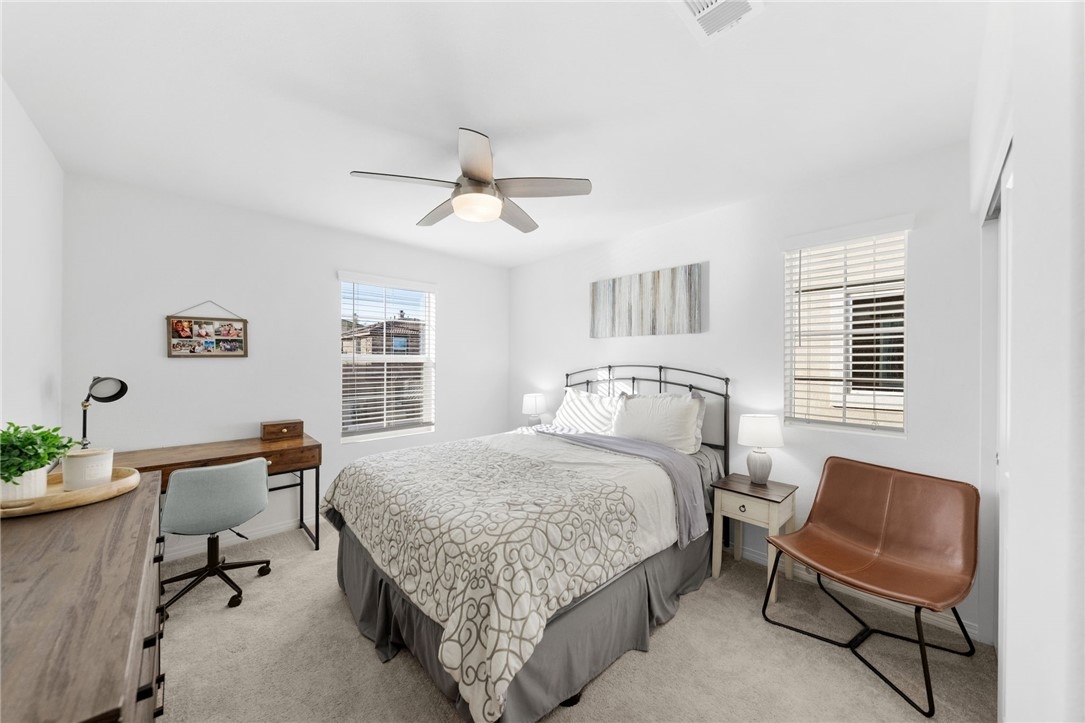 Tucked into one of the most desirable locations within the Willow Springs community, this beautifully maintained 4-bedroom, 3-bath home offers the space you need with the comfort you’ve been hoping to find. From the moment you step inside, natural light carries your view through the home and out to the backyard, creating an open and welcoming feel. A main-floor bedroom and full bath near the entry provide flexibility for guests, a home office, or multi-generational living. The kitchen is bright and inviting, featuring white cabinetry, granite countertops, and an oversized peninsula that naturally becomes the heart of the home — the place where mornings begin with coffee and evenings end gathered with family and friends. Open to the dining and living areas, the layout allows for connection and easy entertaining while still feeling warm and comfortable. Upstairs, a spacious loft offers a versatile second living area ready to fit your lifestyle, movie nights, a playroom, workout space, or a quiet retreat. Two additional bedrooms are generously sized and filled with natural light, and the upstairs laundry room adds everyday convenience. The primary suite feels like a true retreat, offering peaceful mountain views and even the occasional sight of hot air balloons drifting across the sky. An expansive walk-in closet provides exceptional storage and organization. One of the standout features of the home is the private backyard, a rare find for this style of living. Thoughtfully finished with low-maintenance turf and patio space, it’s ready for outdoor dining, relaxing evenings, and year-round enjoyment under the Southern California sky. Additional highlights include a two-car garage, upgrades throughout, and energy-saving solar. Ideally located with convenient access to both the 15 and 215 freeways, shopping, dining, parks, and Temecula wine country, this home offers low-maintenance living while still feeling spacious, peaceful, and truly inviting. Come experience a home that feels comfortable the moment you walk in.
