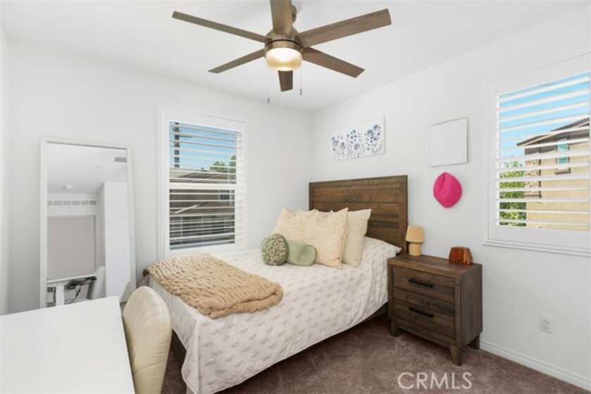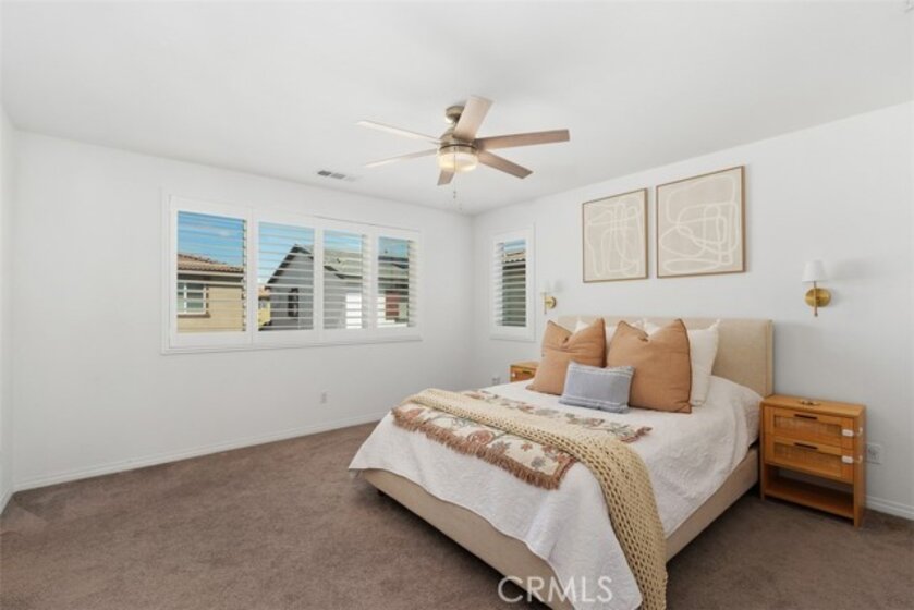 Gorgeous home, just minutes from Temecula mall, shops, restaurants and entertainment. Prime location, less than 20 minutes from Temecula Wine Country! Brand new 2023 home with upgrades galore. Home features 3 Bedrooms, plus a large loft/optional 4th bedroom and 2.5 bathrooms. Large open concept kitchen and family room. Luxury plantation shutters throughout and vinyl flooring all downstairs. Kitchen includes stainless steel appliances, sleek white cabinets, granite counter tops and large kitchen island perfect for entertaining. Primary suite includes private bathroom with his/hers sink and a huge walk-in closet. Separate laundry room upstairs is a huge plus! Home includes PAID SOLAR for that nice cold A/C on those hot summer days. YES PAID SOLAR INCLUDED IN PRICE!! Home also includes Tankless water heater, water filtration system for entire home for soft, clean water, Energy Efficient home with special R5 foam insulation to keep home cool. Fully finished backyard with paved patio and turf grass for low maintenance. Home also includes two car attached garage. This home is located in Murrieta with AWARD WINNING SCHOOLS, this is a master planned community with private parks, pool and jacuzzi. You're going to love this home, close to the 15fwy and the Promenade in Temecula. If you are in the market for a new home, this has it all. Come check it out!