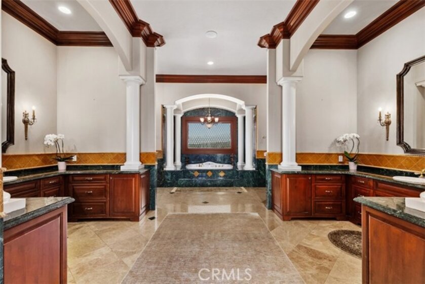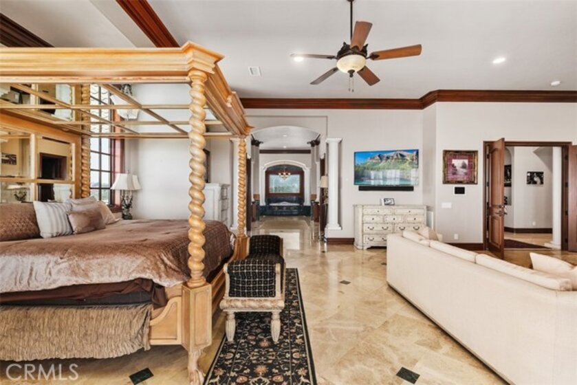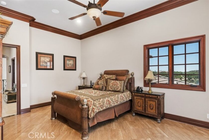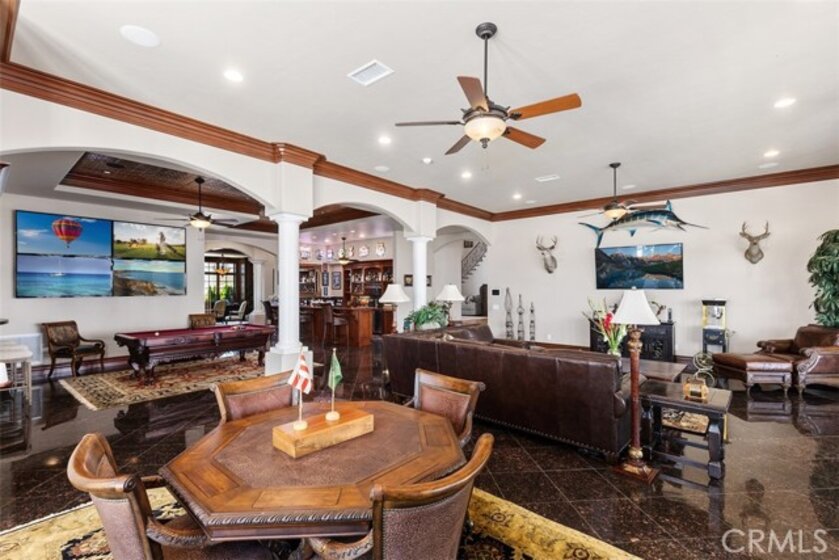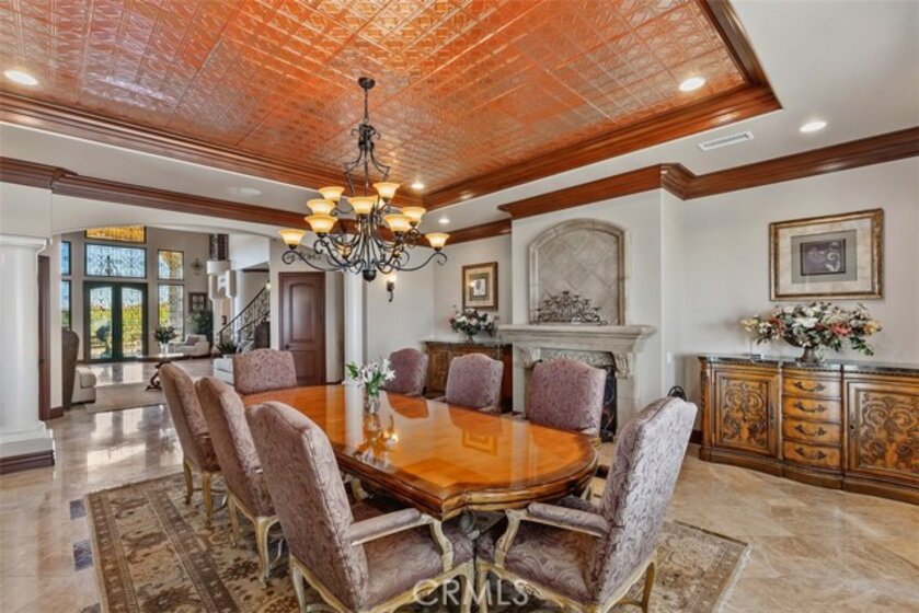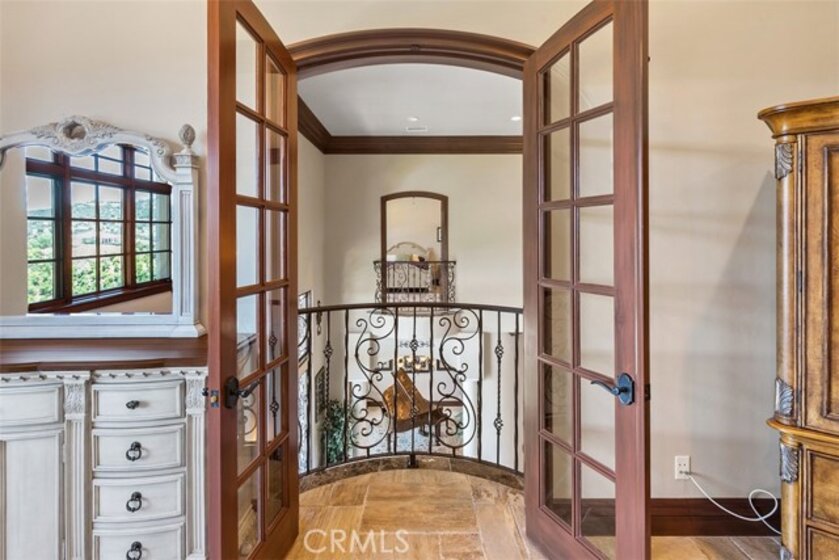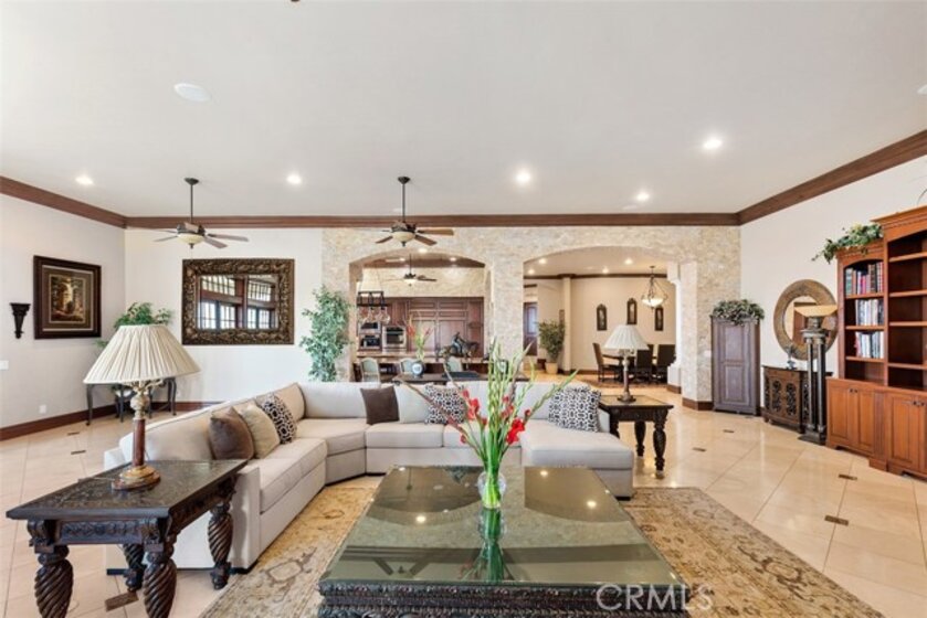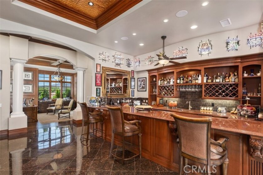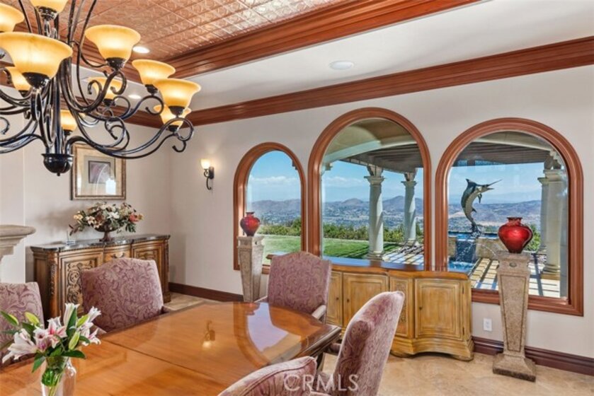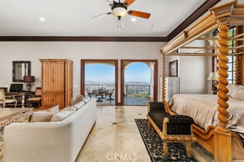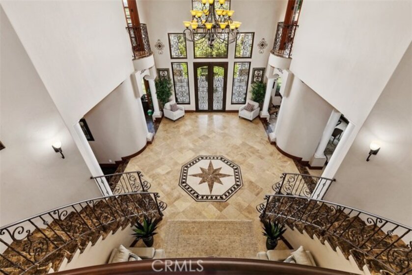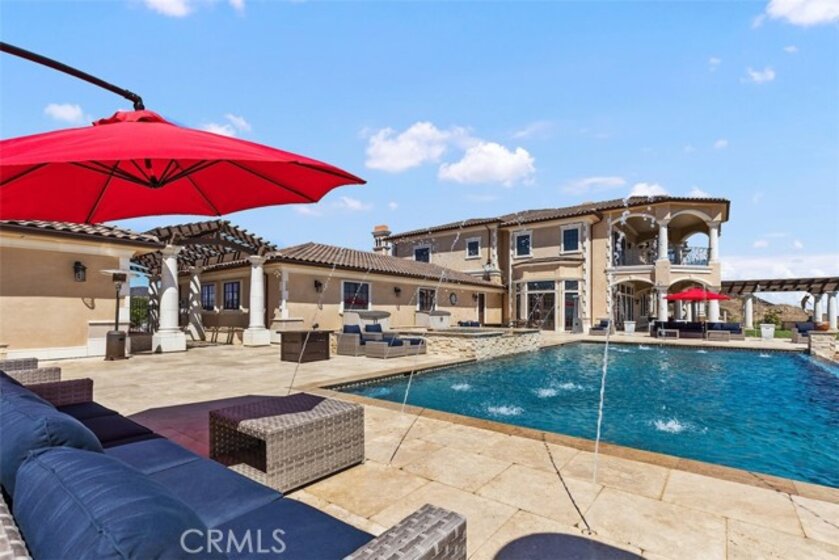 Welcome to Villa Dolce Vista. Commandingly positioned atop 20.39 ACRES at the north point of the EQUESTRIAN COMMUNITY of La Cresta, this Italian inspired masterpiece offers luxury amenities appreciated by the most discerning buyers. Impressive private GATED COMPOUND offers uninterrupted panoramic VIEWS of mountains, city lights, and the Temecula Valley. Encompassing nearly 14,000 SF, the resplendent home includes 5 EN-SUITE BEDROOMS, 8 BATHROOMS, a grand foyer with DUAL STAIRCASES and 24’ ceiling, elegant wood paneled STUDY, FORMAL DINING ROOM with fireplace and expansive city light view. Incredible CHEF’S KITCHEN includes a 20’ granite topped island, COPPER CEILING and LEDGER STONE WALLS. Extraordinary PRIMARY SUITE offers a FIREPLACE, BALCONY with staggering city light views, OPPULANT BATH with dual water closets, vanity areas, marble spa showers, and Jacuzzi tub. Massive GAME ROOM with full wet bar and access to the outdoor travertine deck with FOUNTAINS, INFINITY EDGE JEWEL SCAPE POOL AND SPA and two full outdoor BBQ kitchens. EIGHT CAR GARAGE with built in cabinetry. This SMART HOME is equipped with $155,000 in electronics that provides you with touch screen devices throughout the home. For extended family, a 1,777 SF SINGLE STORY 2 BEDROOM, 2 BATH BUNGALOW with two- 2 car attached garages. Energy efficient with a 47 KW 136 PANEL SOLAR SYSTEM powering both the main home and casita. 53’x40’ RV GARAGE totaling 2,120 SF for storage of two 45’ motorhomes plus all the toys. INCOME PRODUCING HAAS AVOCADO GROVE with automatic fertilization system and WELL watered with two 5000 gallon holding tanks. Additional building pad for future barn, tennis court or helipad. The La Cresta community is located mid-way between Orange County and San Diego County with convenient access to Ontario, San Diego, and John Wayne International Airport. This stunning estate is just minutes from the members only Bear Creek Golf Club offering a Jack Nicklaus designed golf course, tennis, and fine dining as well as the growing Temecula wine country.