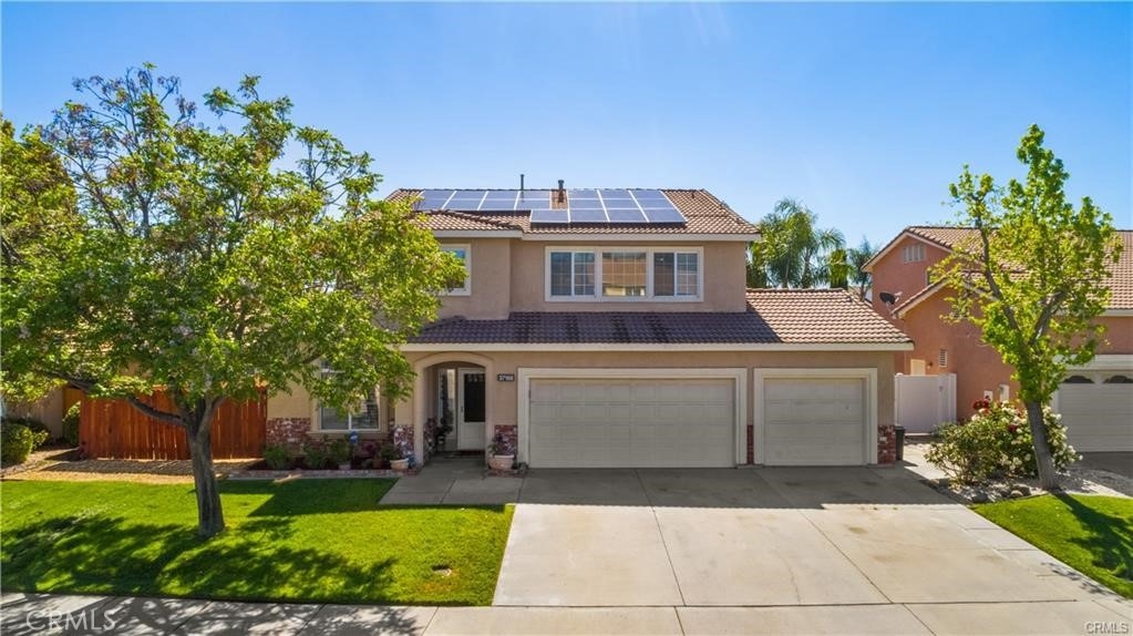 Welcome to your dream home! This beautifully upgraded 4-bedroom, 3-bath residence offers an open, inviting layout with a spacious bonus room—perfect for a home office, game room, or private retreat. Throughout the home, you’ll find custom window shutters, dual-zone central AC, and a cozy gas fireplace that create the perfect blend of comfort and style. The chef’s kitchen is the heart of the home, featuring a massive island with Corian countertops, a Sub-Zero refrigerator, brand-new stainless steel appliances, and a built-in water filtration system—ideal for entertaining and everyday living. Upstairs, unwind in the luxurious primary suite, complete with a private lounge area, a large balcony with sweeping mountain views, and an elegant en-suite bath offering dual sinks, a glass-enclosed shower, and a relaxing soaking tub. Step outside to your own private oasis—a resort-style backyard with a sparkling pool and rock slide, a soothing spa, and plenty of space for gatherings under the California sun. Additional features include a 3-car garage and an oversized driveway with ample parking for guests or recreational vehicles. Homes like this don’t come around often—schedule your private showing today and experience the beauty of Copper Canyon living for yourself!