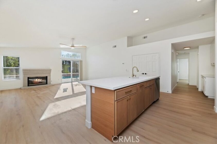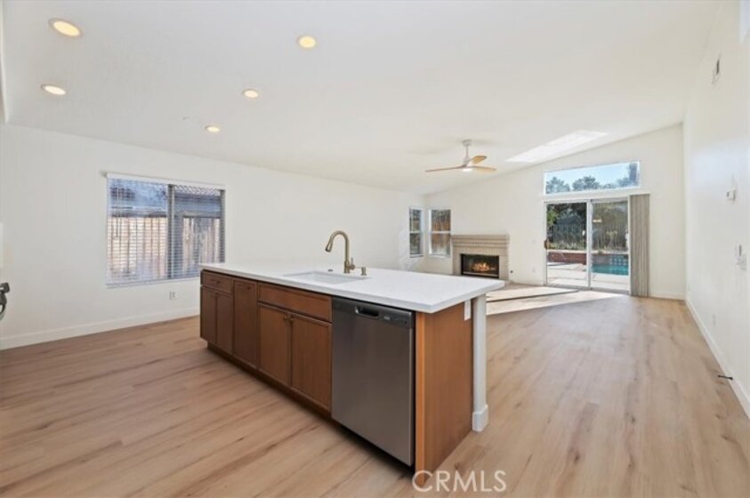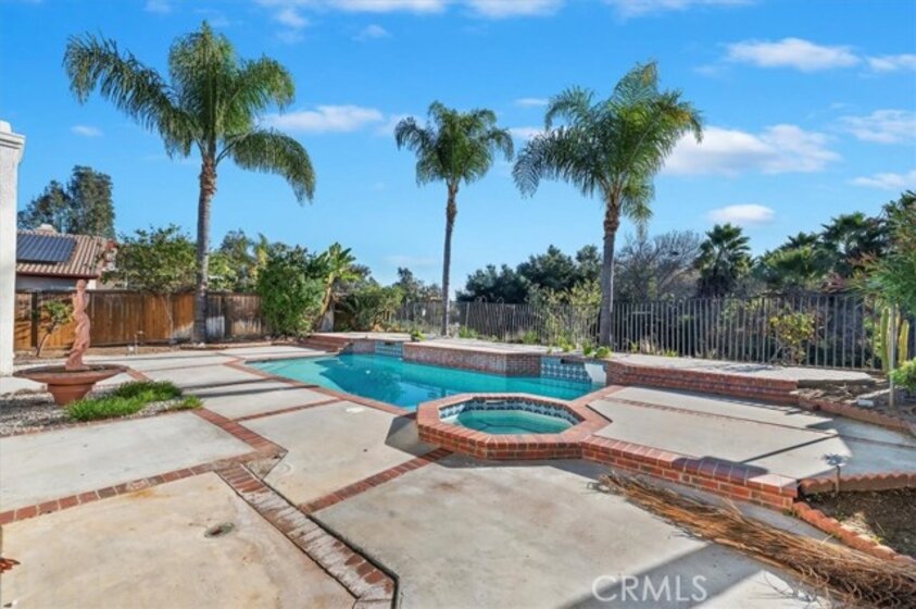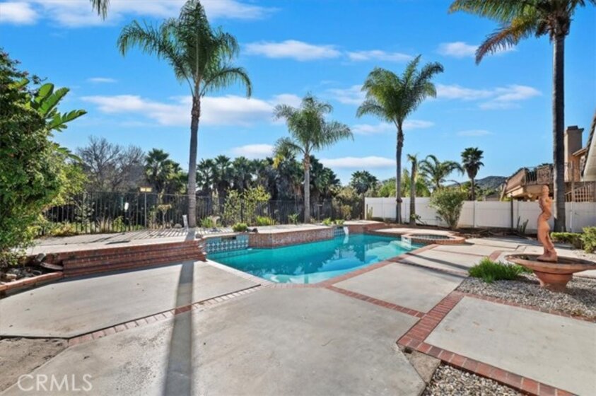 Welcome to your new pool home! This home has beautiful curb appeal and is nestled in a gorgeous neighborhood. As you walk into the home, you will notice the amazing natural lighting and open layout. The new kitchen, with all new cabinets, appliances and a large island is great for entertaining guests. Large double door pantry, ceiling lights throughout and ceiling fans. Central heat and A/C. This home features a 4th bedroom that was optional when the homes were built. Indoor laundry room with plenty of cabinets. Master bed and bath, walk in closet, too much to list. Master bedroom also has its own glass door to the backyard, where you will find your own private pool and spa. Backyard is spacious with beautiful Palm Trees and landscaping. Behind the house is a view of the greenbelt Come make this your new home!