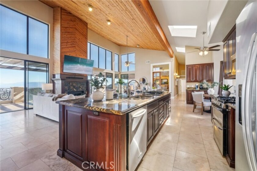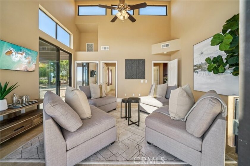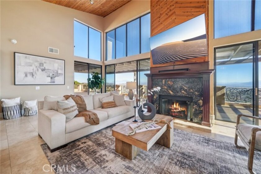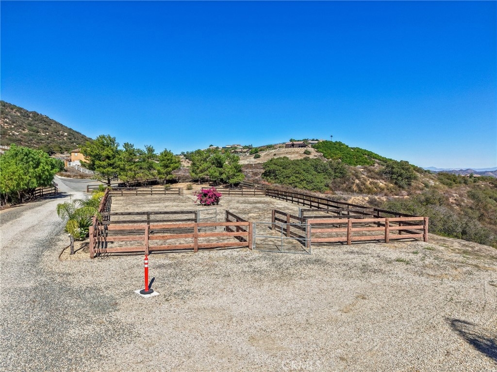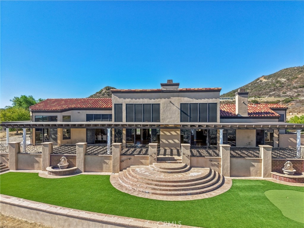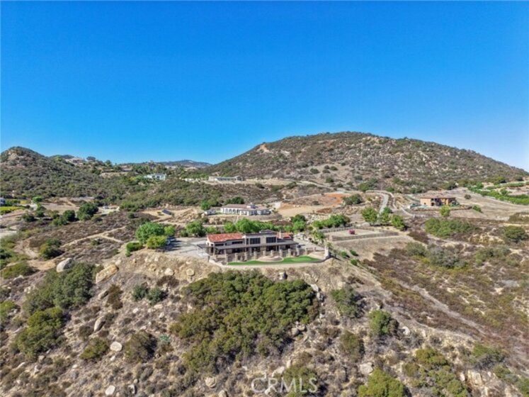 SINGLE-STORY LA CRESTA ESTATE on 10+ private acres with breathtaking panoramic views of the Bear Creek Golf Course, Santa Rosa Plateau, Temecula/Murrieta Valleys, Mount San Jacinto, and sparkling city lights. A private gated driveway sets a grand arrival to this serene, luxury retreat. Enjoy Semper Solaris solar backed up by two Tesla Powerwalls, plus 33 guava trees—including strawberry, white, lemon, and pineapple varieties—with room to expand your orchard or plant a vineyard. The expansive great room boasts dramatic ceilings, picture windows, and seamless indoor–outdoor living. The entertainer’s kitchen showcases an 18-ft granite island, premium appliances, two sinks, two stovetops, two microwaves, and two dishwashers, with elegant custom cabinetry and abundant storage. Flexible layout with 4 bedrooms plus formal dining/office, and potential for a separate-entry suite. The spa-inspired primary bath features a luxurious double walk-in shower. The bedrooms feature upgraded porcelain tile flooring, combining style, comfort, and easy maintenance. Recent upgrades include new skylights, new roof underlayment, exterior re-stucco and paint, replaced capstones on the terraces, new patio with architectural pillars and an Elitewood Ultra heavy-duty cover with Kynar 500 coating, and new outdoor lighting fixtures. Outdoor living spans over 5,000 sq. ft. of terraced space with an outdoor fireplace, putting green and flag area with AstroTurf, and ample parking for guests and vehicles. The property is horse-ready with stalls, arena, and access to extensive horse trails, plus space for a barn, guest house, or other amenities. Additional features include two heating and cooling units for zoned comfort. Luxury, privacy, usable land, and unforgettable views—this rare La Cresta estate combines elegant living with the natural beauty of Southern California.