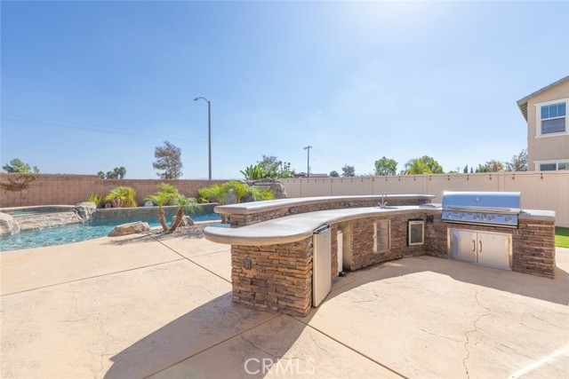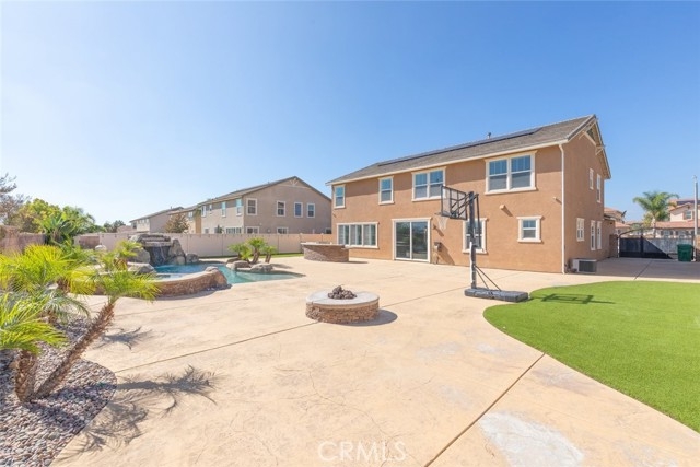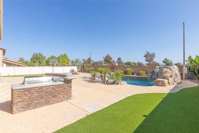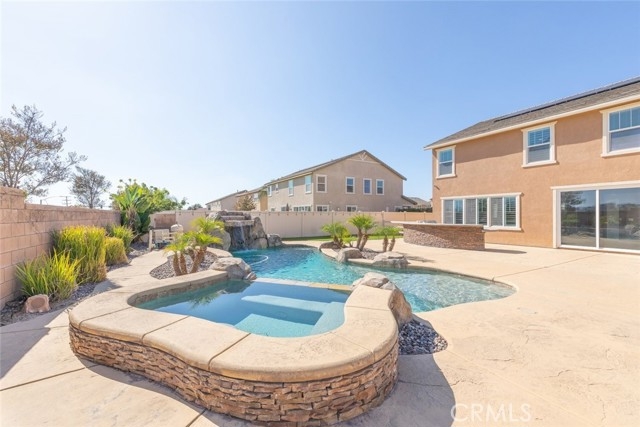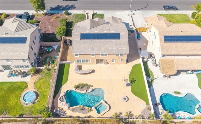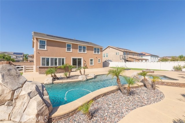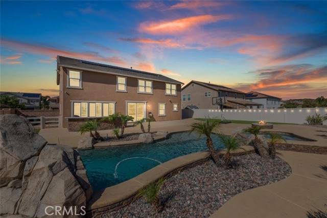 This home truly has it all — yes, five bedrooms! A versatile main-floor bedroom with an adjacent full bath makes the ideal space for guests or multi-generational living. Just off the garage, you’ll also find a flexible bonus space — perfect for a home gym, office, or hobby room. Upstairs, a spacious loft provides even more room for work or play. The open-concept design connects the living, dining, and kitchen areas seamlessly, while two large entertainment spaces, including one that opens to the backyard, make this home perfect for gatherings. Step outside to your own resort-inspired retreat. The expansive backyard features a sparkling pool and spa with ambient lighting, a built-in bar and BBQ, a cozy firepit, and gently sloping hillsides with space for gardening and landscaping. The property also includes RV parking — a rare and valuable feature. Paid off solar!!! The inviting kitchen is both stylish and functional, with sleek stainless steel appliances and plenty of space to prepare everything from everyday meals to holiday feasts. Upstairs, the master suite is a true sanctuary, offering an oversized bedroom, dual sinks, a soaking tub, elegant vanity area, and spa-like bath. Gorgeous floors add timeless sophistication from the stairs and upstairs, while large windows bathe the home in natural light. Nestled in a prestigious and private pocket of Murrieta, this property offers the perfect blend of comfort, elegance, and convenience — just minutes from top-rated schools, shopping, and dining. The kitchen is both stylish and functional, with sleek stainless steel appliances and plenty of space to prepare everything from weeknight dinners to holiday feasts. Upstairs, the master suite is a true sanctuary, offering a spa-like bath with dual sinks, an elegant vanity, soaking tub, and a generously sized bedroom retreat. Conveniently located in a prestigious and private pocket of Murrieta, you’ll enjoy close proximity to top-rated schools, shopping, and all the amenities the city has to offer.