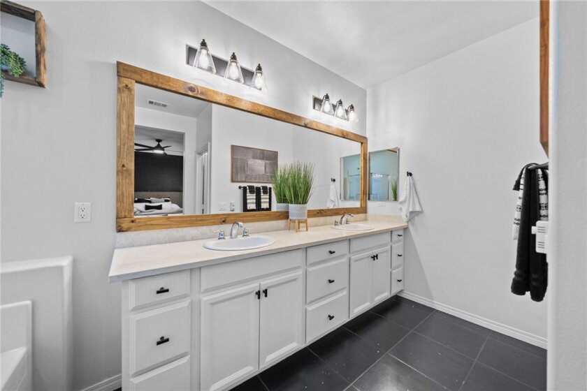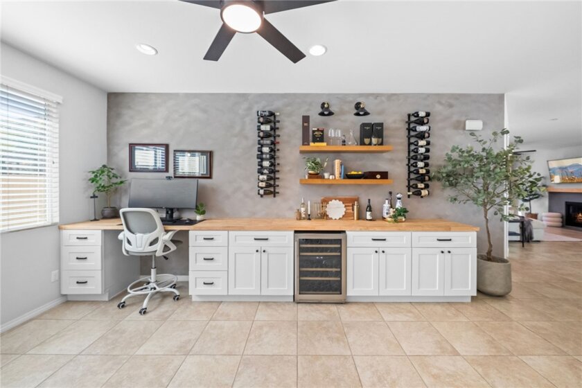 SINGLE-STORY | OWNED SOLAR | CUL-DE-SAC | LOW HOA | TESLA CHARGING SYSTEM! Located within the highly sought-after Temecula Valley School District in the Rancho Bella Vista community, this exceptional 3-bedroom, 2-bathroom home offers the perfect blend of comfort, efficiency, and thoughtful design. From the moment you arrive, pride of ownership is evident throughout, with many custom designer accents adding character and elevated style at every turn. Inside, you’ll find a spacious and functional layout designed for both everyday living and entertaining. The kitchen is the heart of the home, featuring granite countertops, barstool seating, a walk-in pantry, stainless steel appliances, including a double oven, and a brand-new dishwasher. Just beyond, the custom bar area with built-in wine fridge and integrated desk creates the perfect space for entertaining or working from home in style. The inviting living room showcases a gas fireplace and a sliding glass door that opens seamlessly to the backyard, allowing for effortless indoor-outdoor living. The primary suite is a true retreat, complete with an en suite bathroom featuring dual sinks, a custom framed mirror, a relaxing soaking tub, and a separate shower. Two secondary bedrooms have easy access to a full bathroom. Additional highlights include owned solar, a Tesla charging system, smart irrigation, a tankless water heater, a custom mud room off the laundry with a bench and storage space, and an oversized laundry room with cabinetry and flexible walk-in storage pantry. Step outside to enjoy a beautifully maintained backyard with vinyl fencing, lush grass, tropical landscaping, a covered patio, and a separate sitting area, making this a perfect spot for relaxing evenings or hosting gatherings. All of this, just minutes from shopping, dining, and award-winning schools. This is the one you’ve been waiting for. Schedule your private showing today!