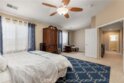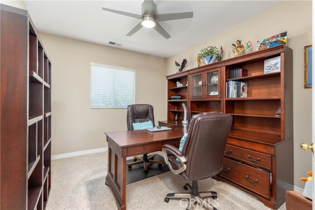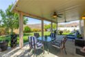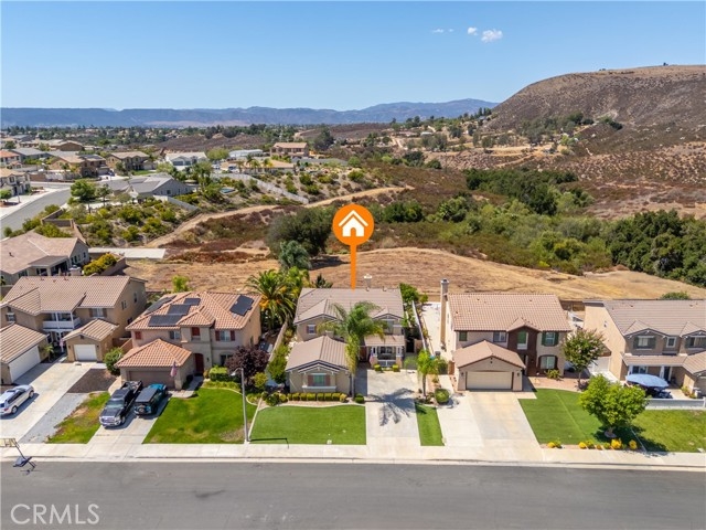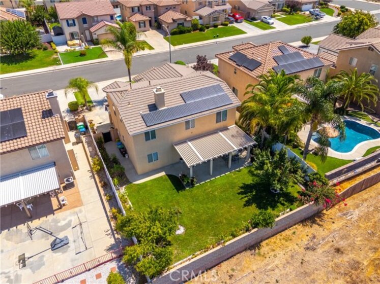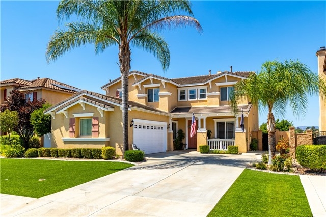 Welcome to your dream home! This beautifully maintained two-story home offers a comfort, versatility, and stunning outdoor living. The front yard features low-maintenance turf landscaping for year-round curb appeal. Step inside to discover a spacious layout that includes a welcoming living room, cozy family room, and an open concept kitchen perfect for gatherings. A convenient half bath an a generous den-ideal for a home office or easily converted into a fifth bedroom complete the main level. Upstairs you will find all bedrooms and all bathrooms thoughtfully arranged for privacy and functionality. The master suite is a true sanctuary, featuring a private retreat area, luxurious jacuzzi tub, double-sink vanity, shower and a walk-in closet. Step outside to a backyard oasis, beautifully landscaped with lush greenery and thriving citrus trees. Enjoy the mountain views from the shaded patio, complete with remote-controlled shade and stylish outdoor furnishings-perfect for relaxing or entertaining. This home blends indoor comfort with outdoor serenity, offering a lifestyle of ease and elegance. No HOA, low taxes, paid solar system and halo water system filtration. Don't miss your chance to own a home that is as beautiful inside as it is outside.