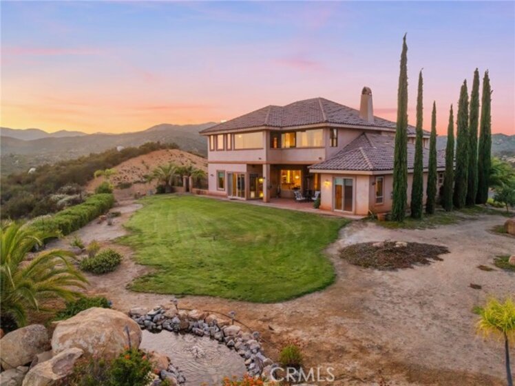 Welcome to your hilltop haven in the heart of La Cresta—where privacy, natural beauty, and sustainable luxury come together on five peaceful, sun-soaked acres. This gated Tuscan-inspired estate feels like a tranquil getaway, offering timeless architecture, modern amenities, and the freedom to live life on your terms. Thoughtfully designed to blend comfort with elegance, this custom-built home lives like a single story, with the spacious primary suite located on the main level. Inside, you’re greeted by a dramatic grand entry, soaring ceilings, solid mahogany doors, and an expansive layout featuring hardwood and travertine floors. A private elevator connects all levels of the home, offering accessibility and ease for all ages and stages of life. The gourmet kitchen features custom granite countertops and opens seamlessly to the living and dining spaces—ideal for entertaining or simply enjoying quiet evenings at home. Cozy up beside one of the three fireplaces, or step out onto one of the 1,500+ square feet of view decks to enjoy the soft breeze and mountain air. Wine lovers will delight in the 500-bottle, temperature-controlled wine cellar, easily accessed from the formal dining area or the garage. And for those who crave connection to the land, this estate is truly a dream come true. A private vineyard of mature Syrah grapes, 50 fruit-bearing olive trees lining the drive, and additional fruit trees throughout the property create a beautiful and productive landscape. Whether you’re tending gardens, growing your own food, or simply enjoying the views, you’ll appreciate the property’s private well and owned solar system—giving you energy efficiency, water independence, and the ability to live comfortably off the grid, without compromising on style or quality. Horse lovers will enjoy the lower portion of the property, which includes a fenced corral, horse stall, tack room, and turnout area, plus direct access to nearby riding trails—saddle up and ride out without ever loading a trailer. There’s also room to add an infinity-edge pool, guest house, workshop, or barn, making this property as versatile as it is beautiful. More than just a home, this is a lifestyle: Peaceful mornings. Endless views. Sunsets over the vineyard. Sustainability. Space to breathe. And the kind of timeless charm that never goes out of style.
