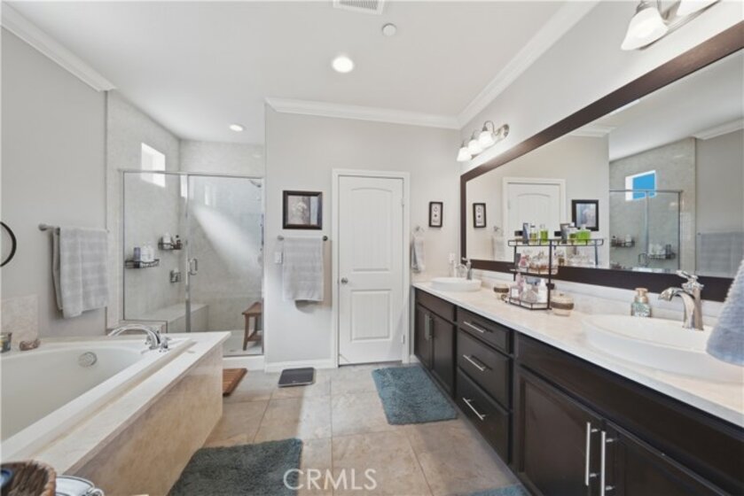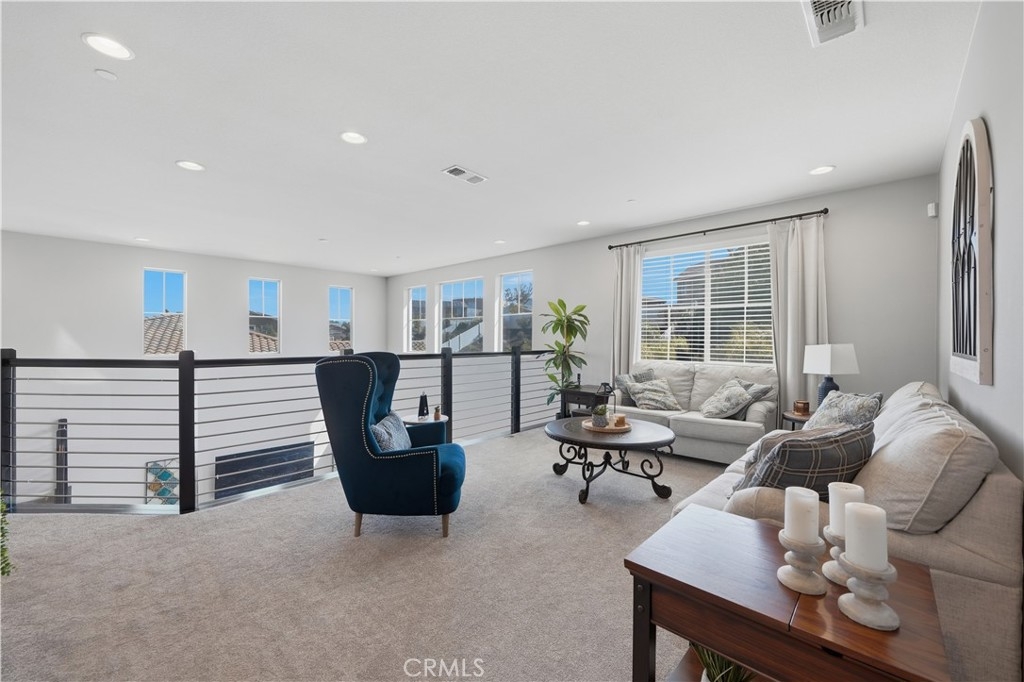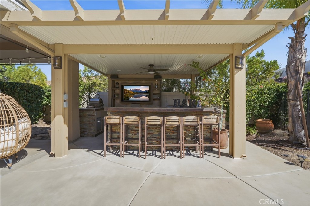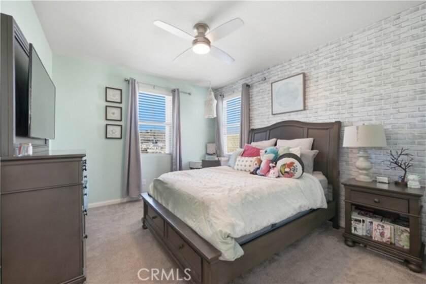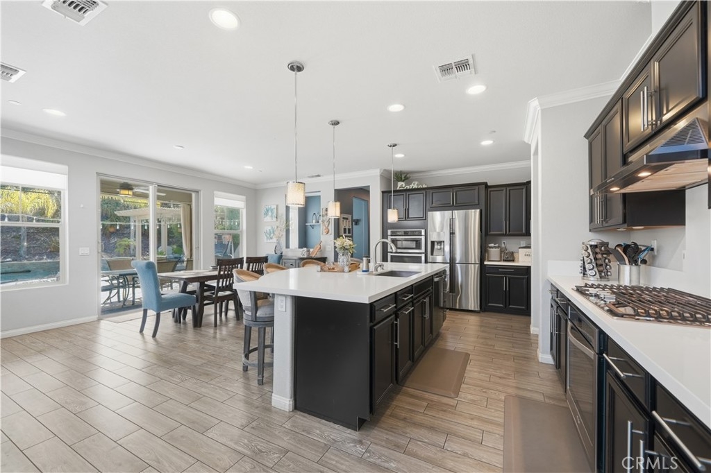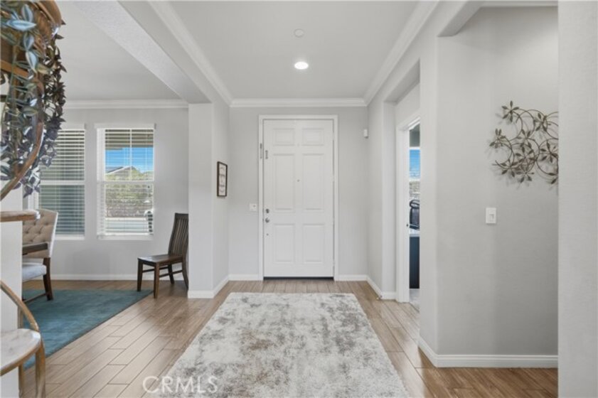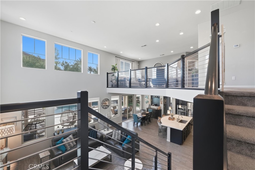 This Stunning Meadowlark 4 Bedroom 4 Bathroom Pool Home with RV parking has it all, Enter and Enjoy! Once inside, you will pass an office or optional 5th bedroom, half bath, and formal dining room. Next, walk into your spectacular great room with vaulted ceilings that looks out to your private Entertainer’s backyard. The beautiful kitchen is open and bright with double ovens, quartz counters, and pantry. Downstairs, there is also a large laundry room, workspace area, and mudroom. Walking upstairs, hold on to the Modern railing and enter the loft that overlooks the great room. Next, you will find 4 bedrooms including the primary. The spacious primary bedroom has a retreat, closet has built-ins and the bathroom has dual sinks with separate shower and tub. In addition there is a shared bathroom between 2 bedrooms and 4th bedroom has an adjacent bathroom as well. The Private Backyard Oasis is a real WOW moment with a magnificent covered outdoor stacked stone kitchen complete with gas griddle, BBQ, fan, fridge, sink, and outdoor TV. Saltwater pool and spa is upgraded with remote controls, solar, pebble tec, and stacked stone. Add to that a gas fire pit, solid patio cover with fans, pergola and grass area with a playset. The 3 car garage has an epoxy floor and cabinets. Full size RV parking has all hook ups and drainage. Upgrades include whole house reverse osmosis water filtration system, 2 Tesla Batteries, solar, new electrical panel, new paint, and new RV Gate! Award winning schools, close to Temecula Wine Country and No HOA!