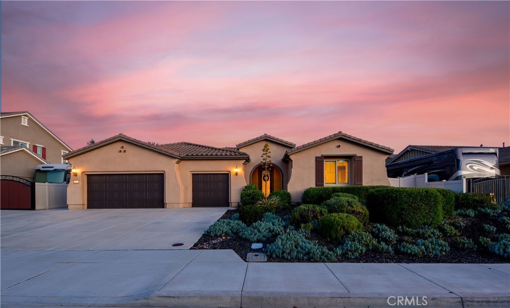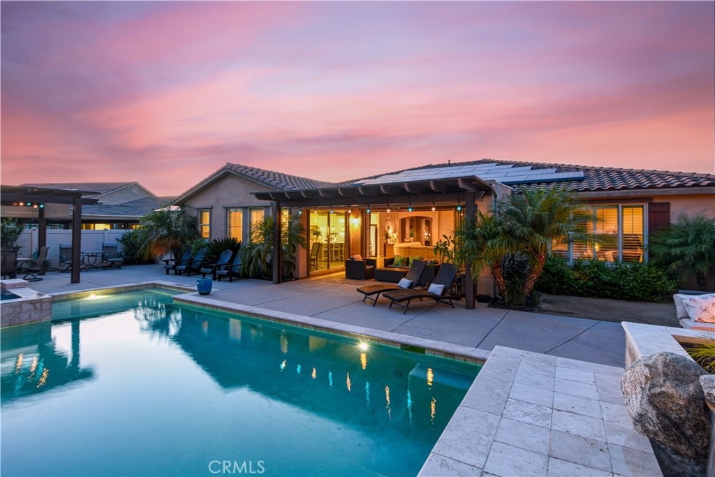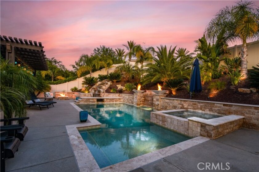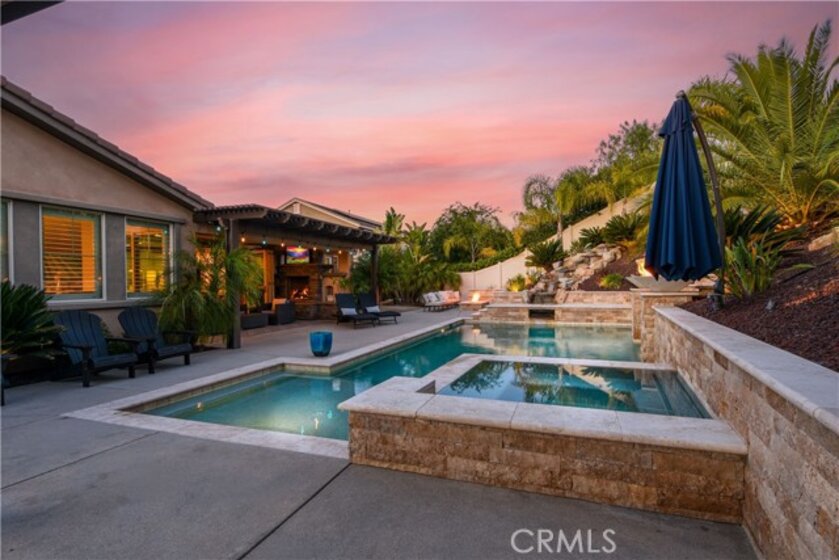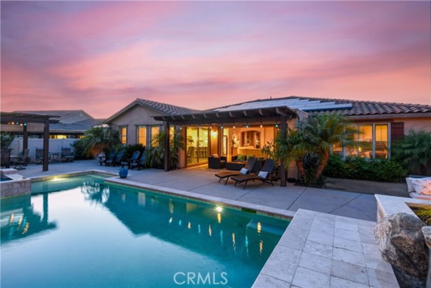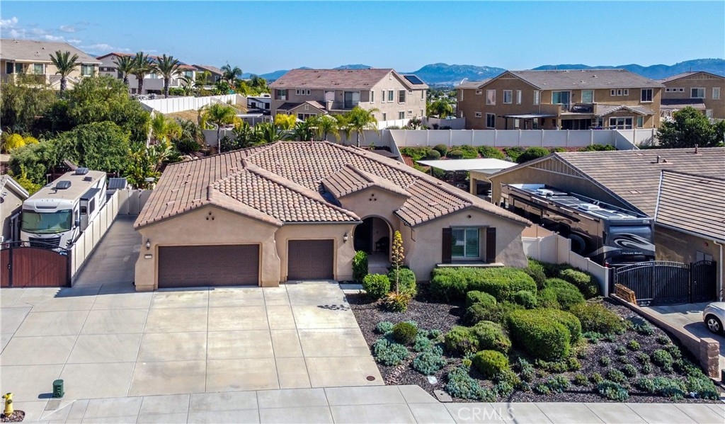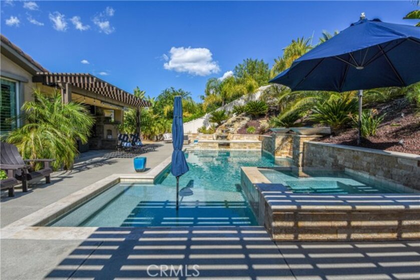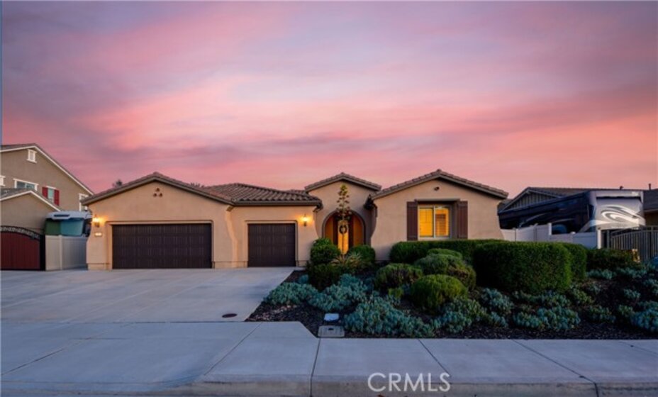 THIS HOME IS A MUST SEE!!! Welcome to the ultimate luxurious home! Pride of ownership clearly shines through in this NO HOA executive residence located in the highly desirable Meadowlark community. This is a stunning single-story home where refined elegance meets the ease of Southern California living. Built in 2015 by Pulte Homes, this beautifully designed property boasts nearly 3,300 square feet of living space, offering four spacious bedrooms and two-and-a-half bathrooms. Soaring 9-foot ceilings and an abundance of natural light create a bright, open ambiance throughout. The thoughtfully designed open-concept floor plan provides a seamless flow between the living, dining, and kitchen areas ideal for both everyday comfort and elevated entertaining. The gourmet kitchen is truly an entertainer’s dream, featuring a large island and an extra-large walk-in pantry. Expansive living spaces offer warmth and versatility, while generously sized bedrooms ensure privacy and relaxation for family and guests alike. The spacious owner’s suite serves as a private retreat, complete with a huge walk-in closet and a luxurious bathroom featuring a soaking tub, separate shower, and dual sinks providing all the elegance expected in a home of this caliber. The additional bedrooms are ample in size and share a convenient Jack & Jill bathroom. Step outside to your own private resort-style retreat, where a sparkling pool and expansive entertaining areas set the stage for unforgettable gatherings or tranquil evenings under the Southern California sky. A beautifully appointed California Room with a cozy fireplace adds an additional layer of indoor-outdoor living, creating the perfect space to relax or entertain year-round. Adding to the home’s appeal is dedicated RV parking, offering convenience and flexibility for a variety of lifestyle needs, along with a built-in central vacuum system for added ease and efficiency. The desirable single-level layout enhances accessibility and ease of living, making this residence as functional as it is sophisticated. Ideally situated in a sought-after Murrieta neighborhood, this exceptional home offers close proximity to top-rated schools, shopping, dining, commuter routes and a short distance from Temecula wineries. With its perfect blend of luxury, space, and location, this residence presents a rare opportunity to experience elevated living in one of the area's most desirable communities.