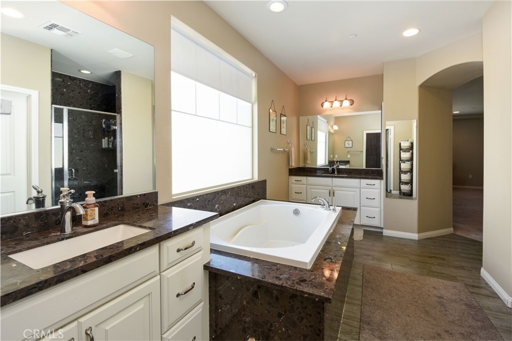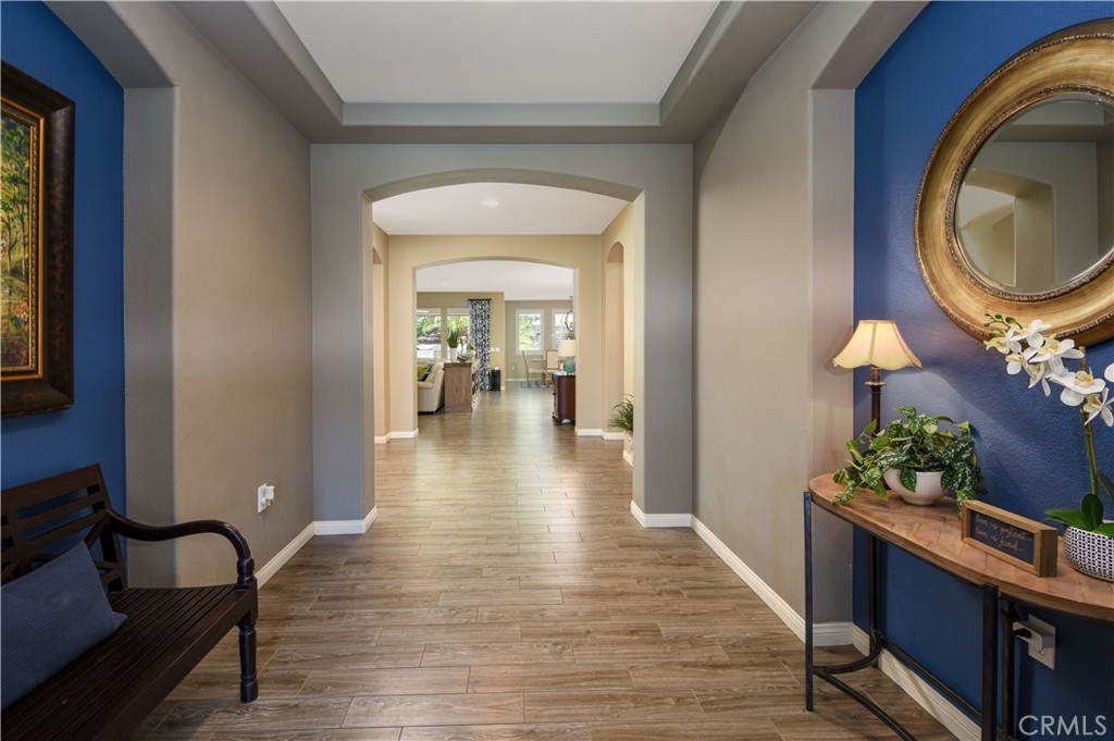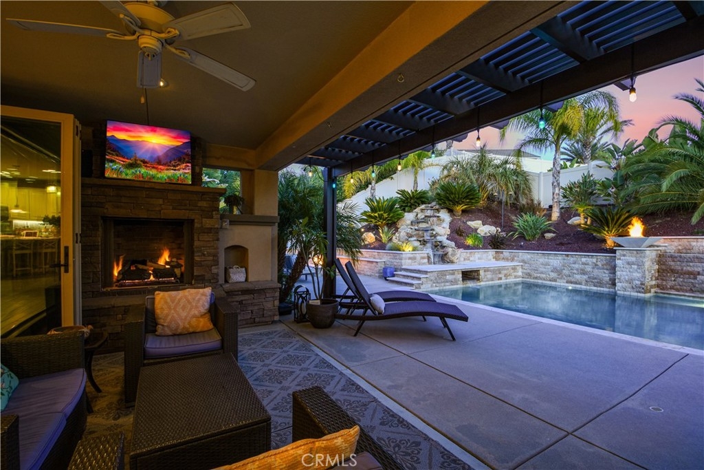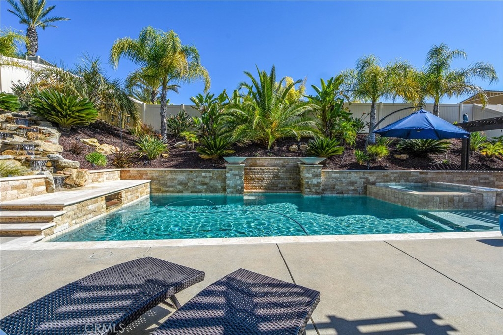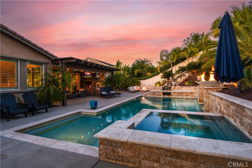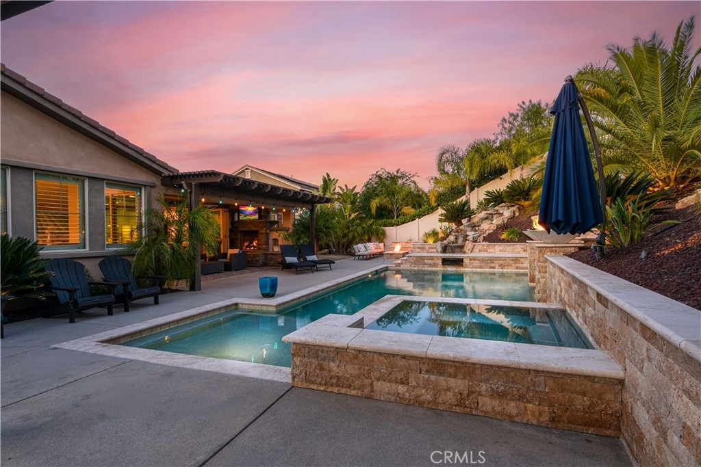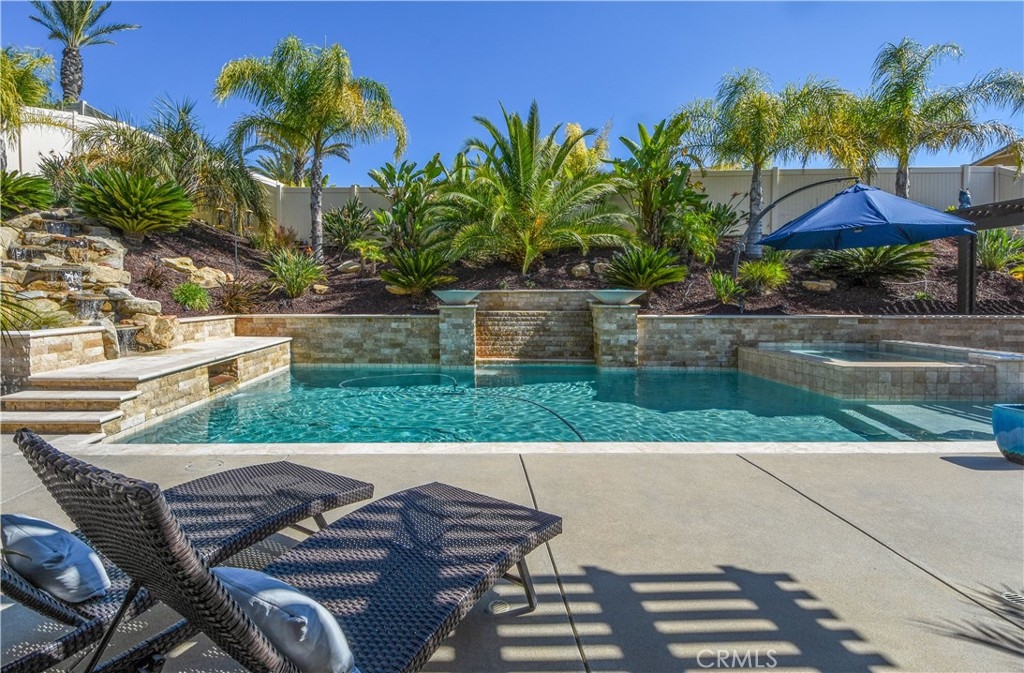 THIS HOME IS A MUST SEE!!! Welcome to the ultimate luxurious home! Pride of ownership clearly shines through in this NO HOA executive residence located in the highly desirable Meadowlark community. This is a stunning single-story home where refined elegance meets the ease of Southern California living. Built in 2015 by Pulte Homes, this beautifully designed property boasts nearly 3,300 square feet of living space, offering four spacious bedrooms and two-and-a-half bathrooms. Soaring 9-foot ceilings and an abundance of natural light create a bright, open ambiance throughout. The thoughtfully designed open-concept floor plan provides a seamless flow between the living, dining, and kitchen areas ideal for both everyday comfort and elevated entertaining. The gourmet kitchen is truly an entertainer’s dream, featuring a large island and an extra-large walk-in pantry. Expansive living spaces offer warmth and versatility, while generously sized bedrooms ensure privacy and relaxation for family and guests alike. The spacious owner’s suite serves as a private retreat, complete with a huge walk-in closet and a luxurious bathroom featuring a soaking tub, separate shower, and dual sinks providing all the elegance expected in a home of this caliber. The additional bedrooms are ample in size and share a convenient Jack & Jill bathroom. Step outside to your own private resort-style retreat, where a sparkling pool and expansive entertaining areas set the stage for unforgettable gatherings or tranquil evenings under the Southern California sky. A beautifully appointed California Room with a cozy fireplace adds an additional layer of indoor-outdoor living, creating the perfect space to relax or entertain year-round. Adding to the home’s appeal is dedicated RV parking, offering convenience and flexibility for a variety of lifestyle needs, along with a built-in central vacuum system for added ease and efficiency. The desirable single-level layout enhances accessibility and ease of living, making this residence as functional as it is sophisticated. Ideally situated in a sought-after Murrieta neighborhood, this exceptional home offers close proximity to top-rated schools, shopping, dining, commuter routes and a short distance from Temecula wineries. With its perfect blend of luxury, space, and location, this residence presents a rare opportunity to experience elevated living in one of the area's most desirable communities.
