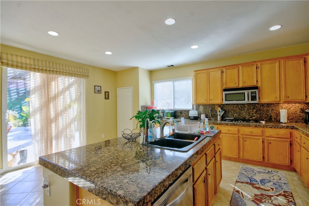 Located at the end of a cul-de-sac with a 3-car garage and a sprawling 15,682 sq ft parklike lot, this spacious Murrieta home has room for everyone. Go inside to a bright and inviting layout featuring formal living and dining rooms, a versatile oversized loft, and a large family room with a cozy fireplace. The generous kitchen offers granite countertops, ample storage, center island for plenty of space for cooking and gathering. With 5 bedrooms and 3 bathrooms, this home provides exceptional flexibility—including a main-level bedroom and full bathroom, perfect for guests or multi-generational living. Upstairs, the expansive primary suite includes an en suite bathroom with a soaking tub and great natural light. The backyard is a true highlight—lush, private, and beautifully landscaped—with a covered patio ideal for dining, lounging, or entertaining. Mature trees and expansive green space create a serene, parklike retreat. An OWNED SOLAR system adds energy efficiency and savings. Located in the highly rated Murrieta School District and close to shopping, dining, and convenient freeway access, this home offers comfort, space, and an unbeatable location.