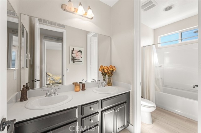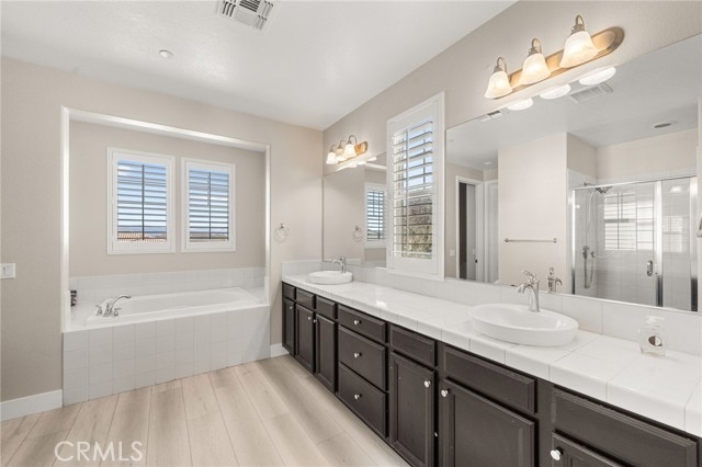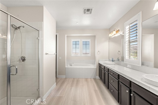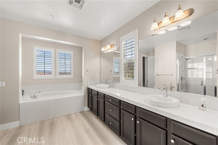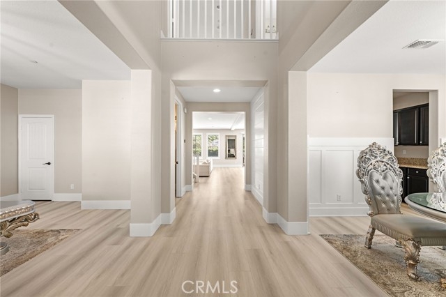 Welcome home to modern luxury in the prestigious MeadowLark Community of East Murrieta. This exquisite five-bedroom, five-bathroom residence spans over 4,000 square feet of fully remodeled elegance. From the moment you step inside, you’ll notice brand new flooring that extends throughout the entire home, setting a tone of contemporary sophistication. The open-concept living and dining areas are perfect for both everyday living and entertaining guests. A cozy office nook on the main floor provides an ideal space for remote work or study. Meanwhile, a private mother-in-law suite with its own living room offers a comfortable retreat for guests or extended family. Upstairs, you’ll find an expansive loft area that is even larger than the downstairs living room, offering a versatile space for relaxation, a media room, or an additional family gathering area. The master suite is a true sanctuary, boasting an expansive walk-in closet that feels like an additional room of its own. When you step outside, you’ll discover a backyard that’s a true blank canvas. Whether you envision adding a pool, a gazebo, a barbecue area, or all of the above, this outdoor space is ready to become your personal oasis. Located just minutes from Temecula’s renowned wine country, Lake Skinner, the Promenade Mall, and an array of parks and shopping, this home offers not only luxurious living but also unbeatable convenience. The neighborhood’s growth and development make it a prime investment for the future. This property truly offers everything and more. Come and experience it for yourself!