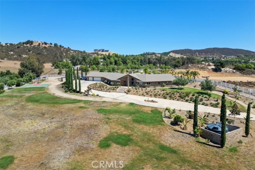 Discover the perfect blend of luxury, privacy, and functionality in this single-story estate, nestled in the prestigious La Cresta community. Set on a fully usable, flat parcel accented by natural rock outcroppings, this custom-built home offers designer finishes throughout, 6" exterior insulated walls, and a lifestyle defined by both sophistication and comfort. Step into a grand great room with soaring vaulted ceilings, handcrafted cedar beams, and a dramatic stone fireplace. The expansive, open-concept layout is anchored by a chef’s kitchen, recently upgraded with modern cabinetry, sleek countertops and premium fixtures. Take in panoramic views of the surrounding foothills through the expansive kitchen windows, blending natural beauty with refined living. The thoughtfully designed split-bedroom floor plan includes a luxurious primary suite tucked away for privacy, featuring a spa-inspired en-suite bath and a cedar lined walk-in closet. Secondary bedrooms include a Jack-and-Jill suite and a versatile bonus room with its own fireplace and bath—ideal for a guest retreat, game room, or mother-in-law quarters. All bathrooms throughout the home have been tastefully remodeled with designer selected finishes, elevating both style and comfort. The interior also offers an oversized laundry room with additional storage, utility sink, and central vacuum system. A covered breezeway leads to a 1,200 sq. ft. finished garage deep enough for large trucks or sports cars, complete with a workshop area and utility sink. Outdoors, your private resort awaits. Enjoy a 50,000 gallon custom pool with beach entry, 10-foot deep end, spa, rock waterfall, waterslide and swim up bar—surrounded by lush landscaping. Gather around the built-in firepit, or entertain under the stars at your outdoor kitchen, featuring a built-in BBQ, spacious prep counters, and a two-burner cooktop. A private well irrigates the entire landscape and outdoor features . Equestrian amenities include two in-and-out corrals with stud panel fencing, large pasture, a tack/feed/storage room, and a riding trail encircling the property. You’ll also find a chicken coop, fruit trees, and raised garden beds, with extra space to expand and bring your outdoor hobbies to life. The La Cresta lifestyle, where luxury meets freedom and nature. Move-in ready and rich in opportunity, this estate is ready to welcome its next discerning owner.