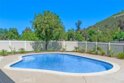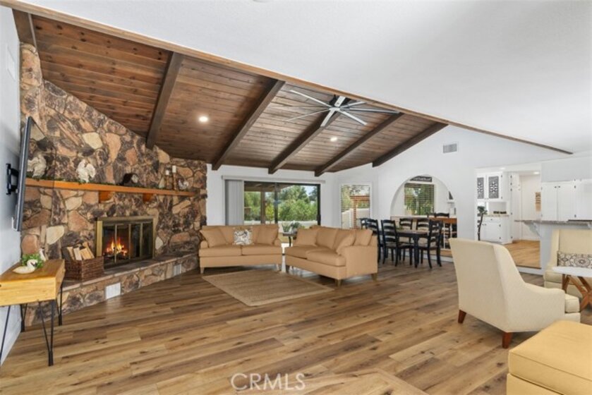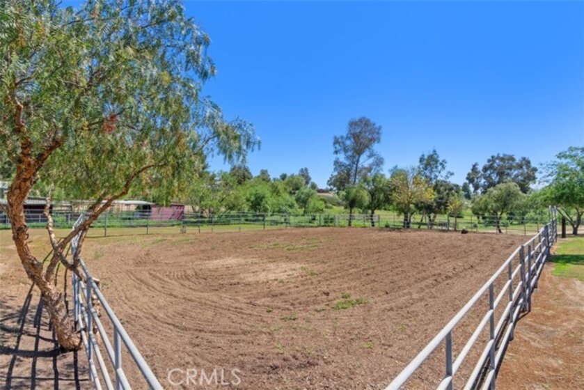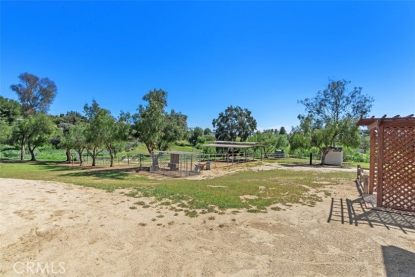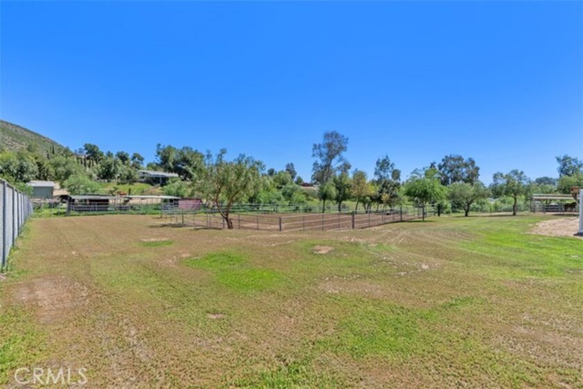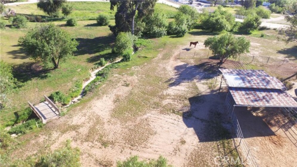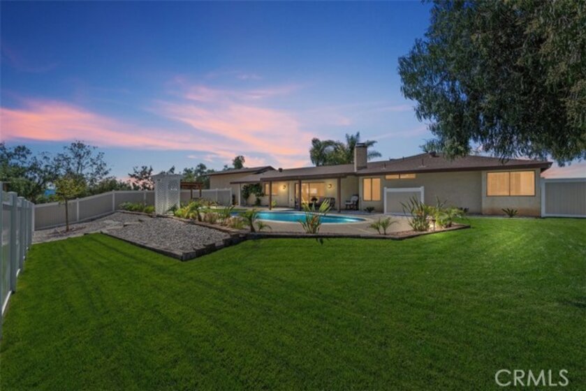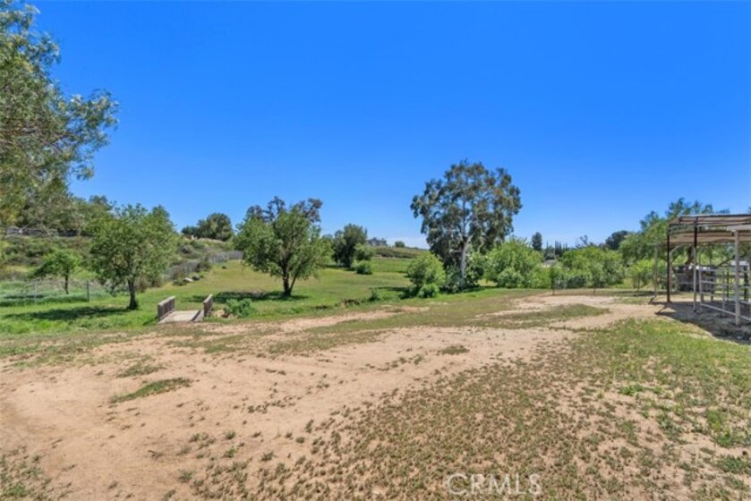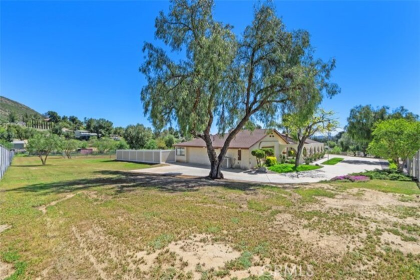 Welcome to this exceptional Murrieta estate—a custom single-story oasis set on 3.26 acres of peaceful, well-maintained land that offers the perfect blend of natural beauty, usable space, and a lifestyle designed for both relaxation and recreation. This meticulously remodeled single-story home offers a harmonious blend of modern luxury and serene country living. The open-concept design is accentuated by a stunning tongue-and-groove wood beam ceiling and a floor to ceiling stone fireplace in the living room that adds warmth and natural beauty to the space, bench window seating, new stainless steel appliances, granite countertops and high-end finishes chosen with impeccable taste. Freshly painted and thoughtfully upgraded, the home features luxury vinyl flooring, soft carpet in the bedrooms, new baseboards throughout. Featuring 3 spacious bedrooms and 2.5 nicely updated bathrooms. The bedrooms are oversized, including a luxurious primary suite with a generous walk-in closet. Both full bathrooms feature double sink vanities. New window coverings are installed throughout the home for a clean, finished look. Step outside to your private backyard paradise, professionally landscaped to perfection. Dive into the sparkling swimming pool, relax under the patio, or cook under the stylish cabana and entertain guests in this idyllic setting. The backyard is beautifully enclosed with vinyl fencing, creating a safe and private outdoor sanctuary. The entire 3.26-acre property is surrounded by secure chain-link fencing, providing peace of mind and space for RVs, boats, trailers, and all your recreational toys. A three-car garage and storage shed add convenience and flexibility. Equestrian enthusiasts will appreciate the riding arena and pipe corrals, offering plenty of room for horses and the potential to expand. A charming seasonal creek meanders through the property, complete with a bridge crossing, and is adorned with mature walnut, pepper, and eucalyptus trees, creating a tranquil and shaded environment. All landscaping is on a water-efficient drip system, including an automatic setup for the yards. Close to parks and located in the highly-rated Murrieta Valley Unified School District. With ADU potential, serviced by a private well with optional city water connection available, no HOA, and close proximity to shopping, restaurants, and hospitals, this Murrieta gem has it all.