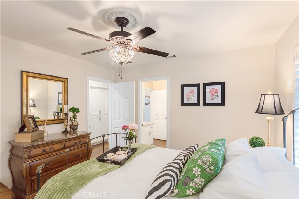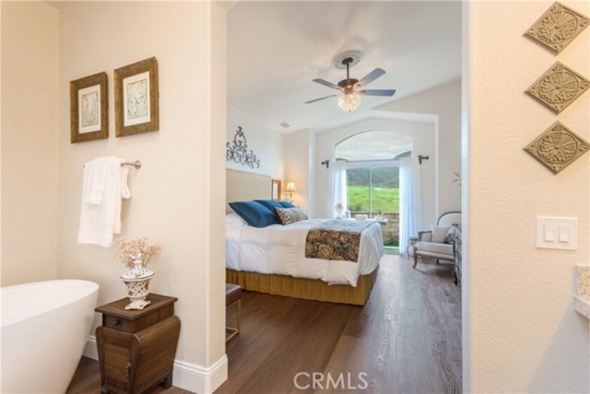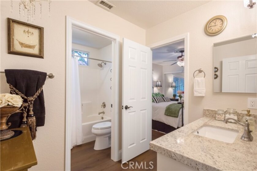 Location, Location, Location with breathtaking mountain views, sunset views and seasonal creek views. This home is located in the highly desirable gated, golf course community of Bear Creek. The gated community amenities include 24/7 security patrol, a community center with weight rooms, cardio rooms, a huge, heated swimming pool, spa, 6 tennis courts, 4 Pickleball courts, Bocce ball courts, locker rooms, sauna rooms, an event room with kitchen and more. The community also provides many social events and activities throughout the year. This prestigious Jack Nicklaus signature golf course has lush greens surrounded by beautiful mountain views and offers fine dining at the Clubhouse. The Bear Creek Golf Club has social and golf memberships available. This property has a fully fenced pie-shaped yard surrounded by mature trees. It’s located at the end of a quiet cul-de-sac with no one behind, just a gorgeous view of nature to start and end your day, all with low taxes and no Mello-Roos. This spacious single-story detached home has vaulted ceilings, a large living room with fireplace, dining area, 3 bedrooms, 2 bathrooms and spectacular views. The dining room, primary bedroom and sunroom all have sliding glass doors that open to the quiet, fully landscaped, low water use, low maintenance side and backyard. The yard is planted Kurapia - a pet friendly, highly versatile, drought tolerant ground cover. The newly enclosed covered patio sunroom has energy efficient floor to ceiling window walls. Bedroom 3 is currently configured as an office. Don't miss out on this fabulous home! This unattached condo is located in the “Retreat” of Bear Creek, a private cul-de-sac enclave of 20 single-level detached homes within the Bear Creek gates with all Bear Creek has to offer. The Retreat has the lowest HOA fees of all the condo sub associations in Bear Creek. This home is located near the south gate for quick entry and exit for your convenience. It’s a wonderful place to live! Come see for yourself.