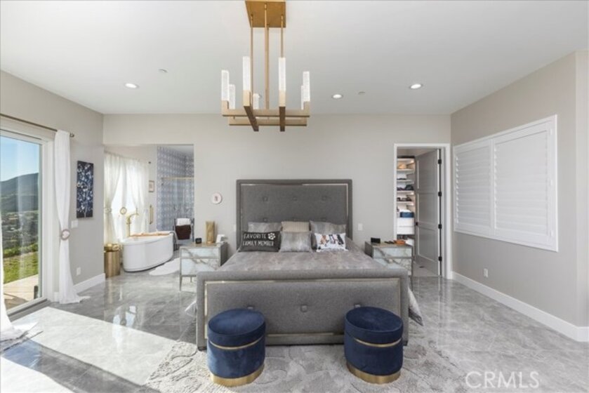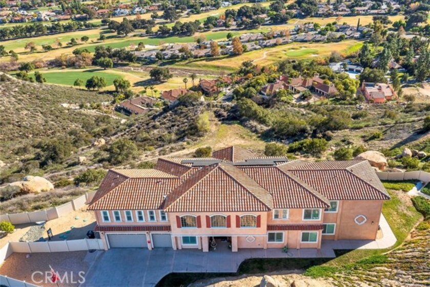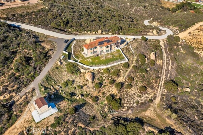 Elevated to capture breathtaking panoramic views of city lights, the golf course, and the mountains, this exceptional 2022 custom estate offers refined living across 5,057 sq. ft. on 6.31 private acres. Designed for luxury and comfort, the home features 5 ensuite bedrooms which includes dual primary suites plus 2 powder rooms. Closets were professionally done by the Container Store. The residence showcases sophisticated living spaces including two offices, billiard room (pool table negotiable), 3 wet bars, sound system throughout including the 3 car garage. Thoughtful details continue with Plantation shutters, professionally designed kitchen and premium built-ins, laundry room with a dog wash station. Move-in ready, the home includes all kitchen appliances. Outdoor living is elevated with a free-standing jacuzzi, BBQ island, and breathtaking views from every angle. Additional amenities include owned solar, plus a 1,300 sq. ft. (approx) detached garage/shed with bulldozer, gated entry, low HOA, and favorable low taxes. Supported by septic, propane, and a nearby high-pressure fire hydrant. A rare opportunity to own a turnkey luxury estate with extraordinary views and amazing privacy.