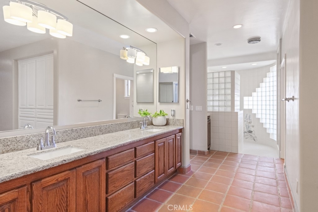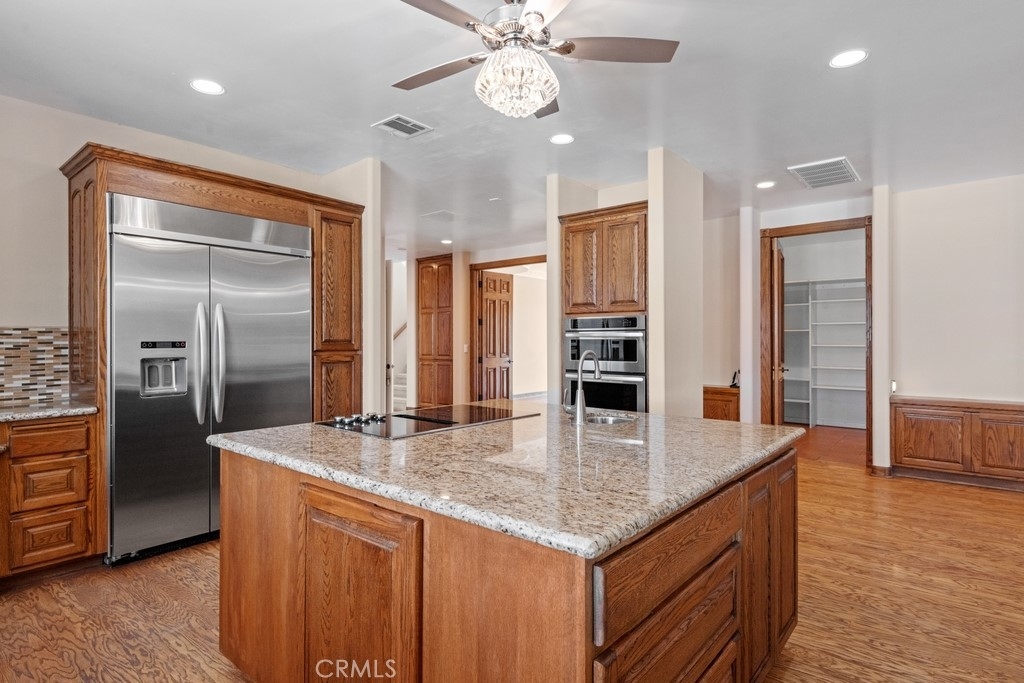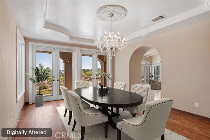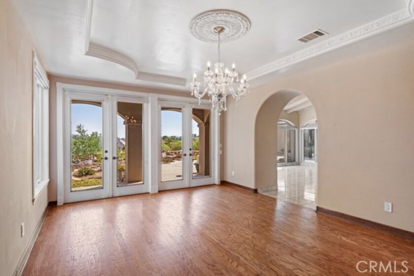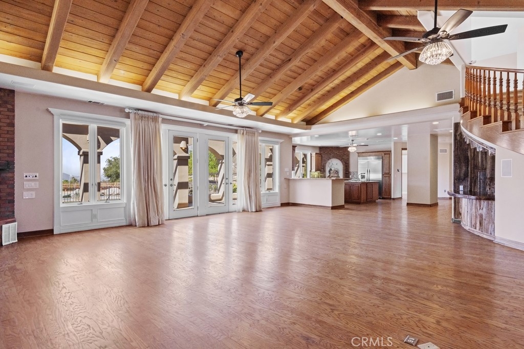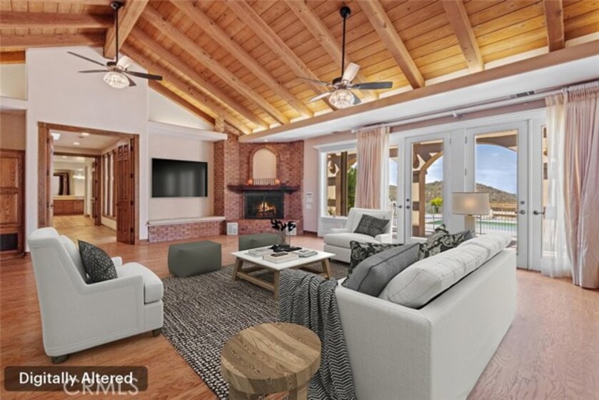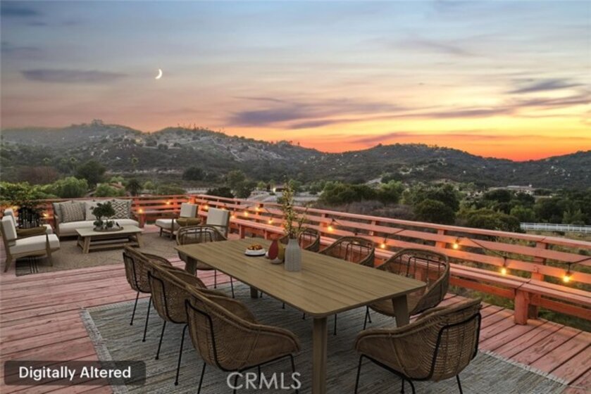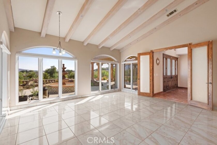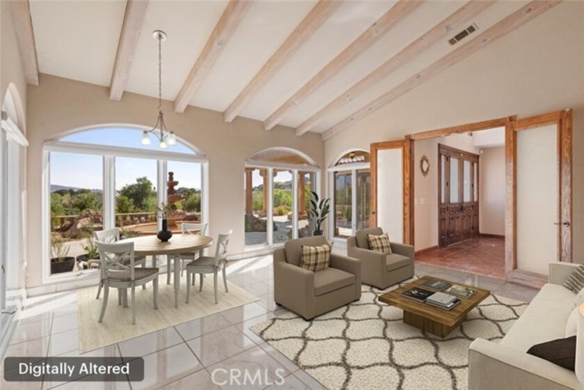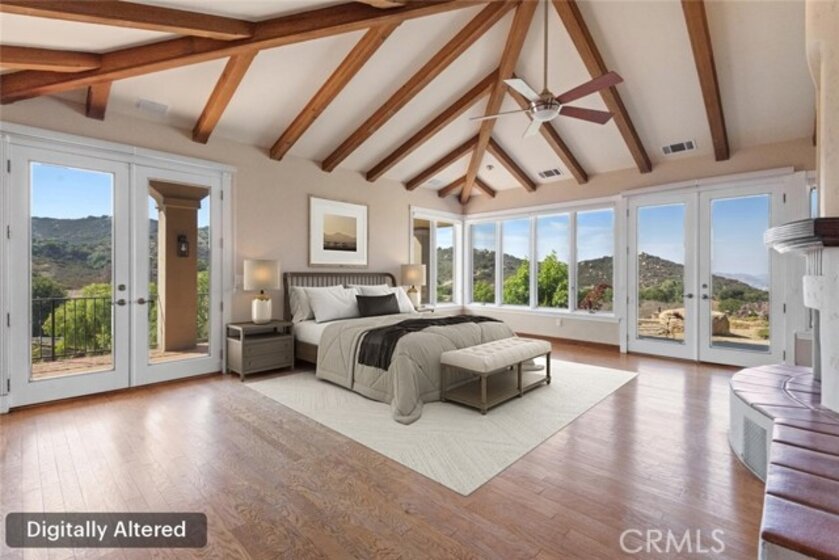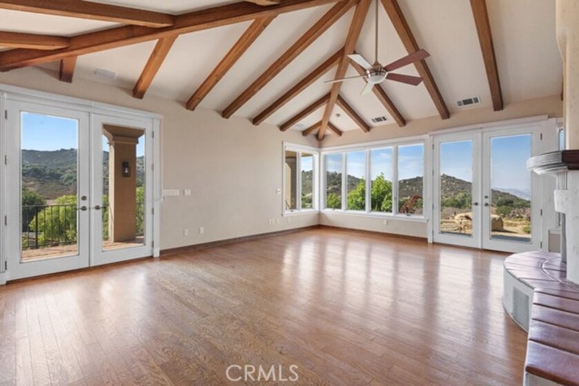 HUGE PRICE REDUCTION! Beautiful Grand Equestrian Estate with Panoramic Views & Endless Possibilities in La Cresta. Set atop 5.55 breathtaking acres, this spectacular La Cresta equestrian estate offers panoramic views from every window, luxurious living spaces, and versatile additions including a studio casita and a converted caretaker home attached to the barn. A 5-stall barn, RV garage, fenced pool with view deck & outdoor kitchen, and indoor spa make this a true dream property. Enter through solid wood double doors into a stunning foyer with terra cotta tile, leading to formal living and dining rooms featuring marble floors, wood-beamed vaulted ceilings, and oversized windows showcasing majestic mountain and garden views. The grand family room impresses with a fireplace, wood floors, custom built-ins, and French doors to the patio and pool. The spacious kitchen includes granite counters, wood cabinetry, a large island, and views of the pool and mountains. A den or office, additional flex space with built-ins, and access to the spa room offer flexible living. The primary suite boasts incredible views, a fireplace, private office, outdoor access, and a luxurious en suite with soaking tub, dual vanities, and two walk-in closets. Upstairs via two staircases, find a spacious loft, 3 bedrooms, and a huge balcony. Two junior suites downstairs feature private baths and walk-in closets, plus an additional den/bedroom. The studio casita includes a full bath, walk-in closet, and kitchenette space. The attached barn unit offers a living area, kitchen, 2 bedrooms, and a bathroom—perfect for guests or caretakers. There's a leased solar system for energy efficiency. Additional adjacent 5-acre parcel also for sale on Via Baya—combine for a rare 10+ acre equestrian estate!