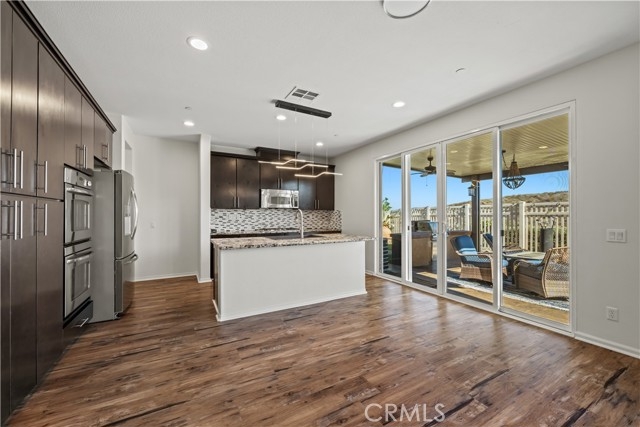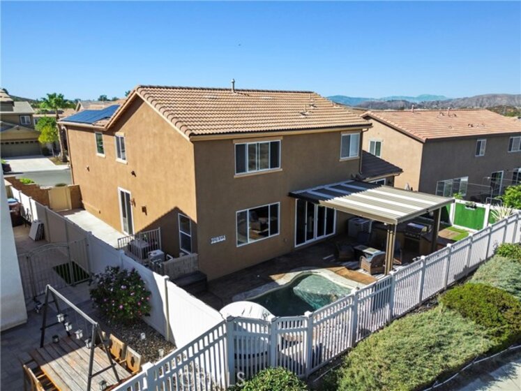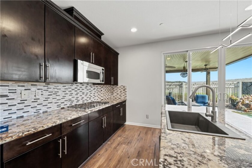 Beautiful 5-bedroom, 4-bath former model home offering nearly 3,000 square feet of living space. The desirable Next-Gen suite features its own private entrance, bedroom, and bathroom—ideal for guests or multi-generational living. The home showcases hardwood floors beneath luxury vinyl plank, and a gourmet kitchen with granite countertops, double ovens, and a built-in stove. The downstairs bedroom was previously used as a studio and includes plumbing connections for added flexibility. Upstairs features plush luxury carpeting and spacious bedrooms. The 3-car tandem garage provides ample parking and storage. Enjoy privacy with no neighbors behind and take in breathtaking views of hot air balloons from Temecula’s Wine Country right from your backyard. The outdoor area includes a spool, perfect for relaxing or entertaining. Located in a highly sought-after community with HOA amenities including a sports park, clubhouse, and multiple parks. Walking distance to schools and close to shopping, dining, and local attractions.