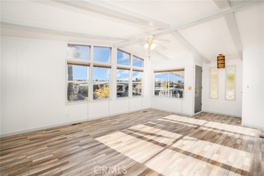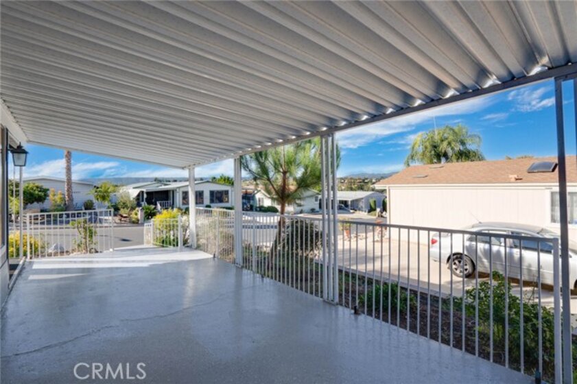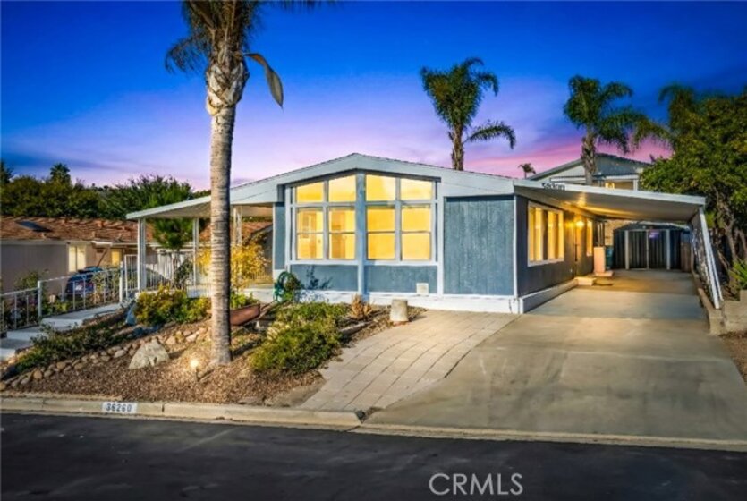 * VIEWS & BEAUTIFULLY UPDATED * This 3-bedroom home is located in the highly desirable 55+ community of Golf Knolls, where you own your own land. This home is on permanent foundation convenient for financing. A rare opportunity to live at the top of the hill, this home offers stunning mountain views and a highly sought-after open floor plan with two separate living spaces—ideal for flexible living, entertaining, or creating a cozy retreat. The home has been thoughtfully remodeled with upgraded flooring throughout, a spacious kitchen featuring granite countertops, and a freshly painted interior that feels bright and inviting. Additional updates include a new roof, providing peace of mind for years to come. A unique feature of this home is the large covered front porch with views of the Santa Rosa Plateau. The porch presents a generous outdoor living space, a perfect place to enjoy your morning coffee and, in the evening, admire the sunsets. Upon entering the home through the convenient glass sliding door off the porch the home opens into a generous size bright & open great room that accommodates the kitchen, casual dining area & living room featuring wood beamed cathedral ceilings, engineered wood flooring & ceiling fan. The home’s second entry leads to a large, light-filled formal living area, also designed with beamed cathedral ceilings, a ceiling fan, and two oversized picture windows that beautifully frame the surrounding views. Golf Knolls is an active community offering 3 pools, 2 spas, exercise room, clubhouse with community events, billiards room, a library, ping pong, card rooms, sauna, laundry facilities and BBQ areas. Minutes from dining, shopping and the Temecula wineries! A MUST SEE HOME