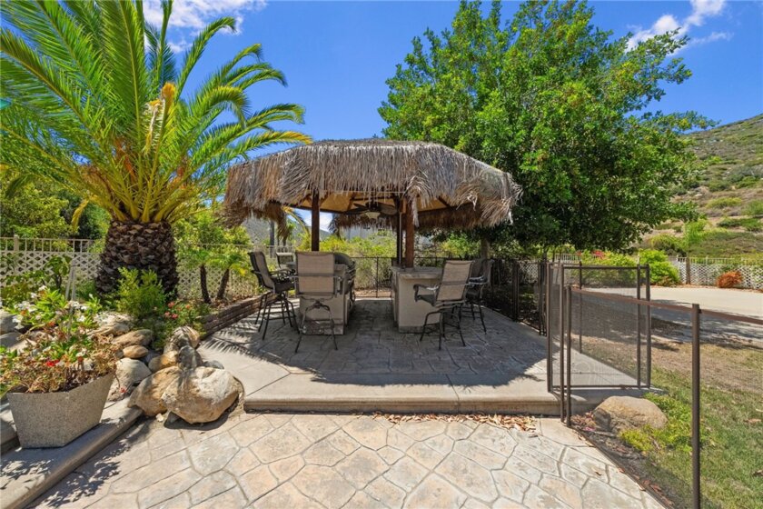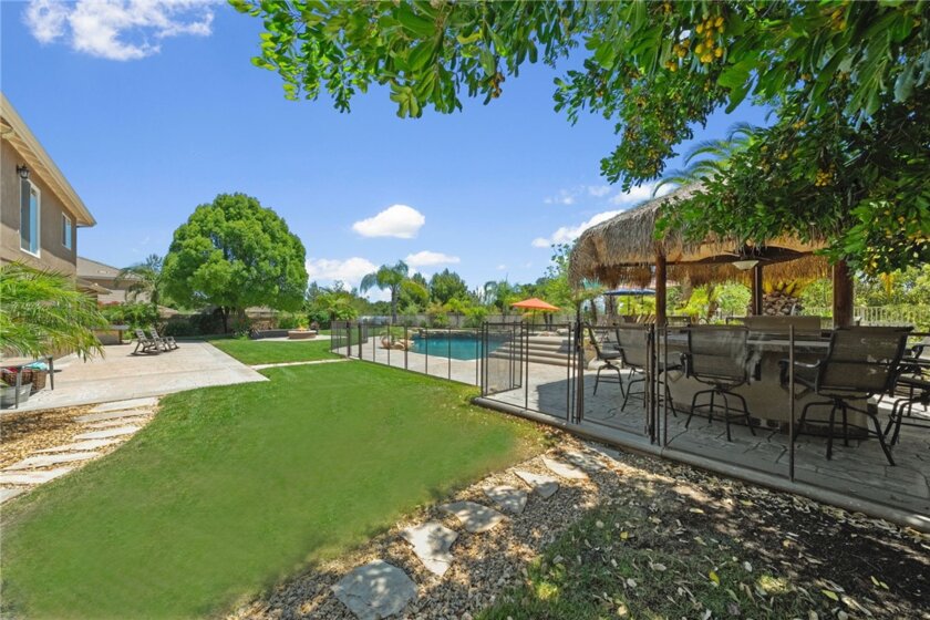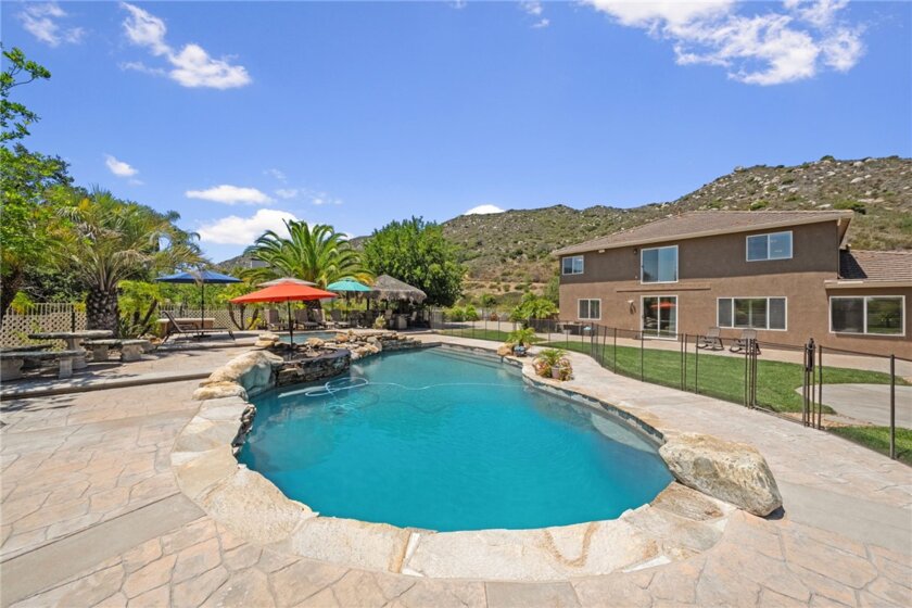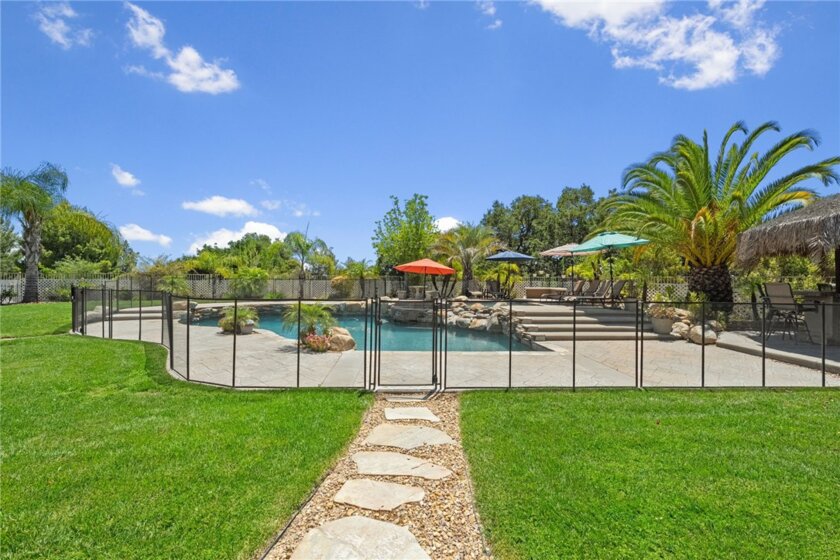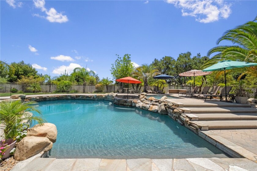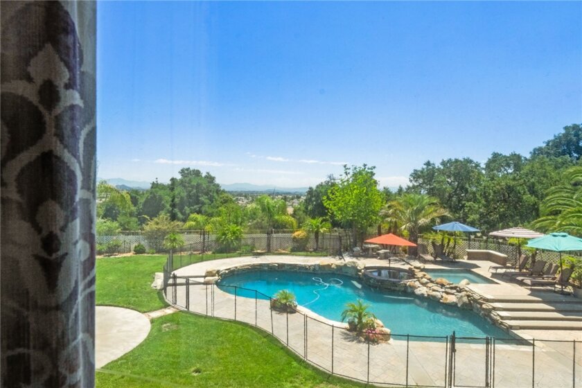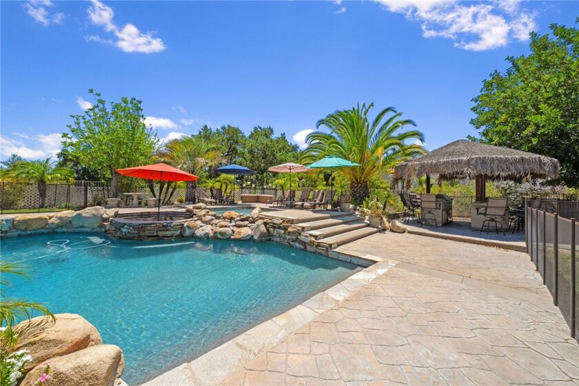 If you're a longtime agent here in Murrieta then you know The Oakhurst Estates and OAK BLUFF LANE. This street is considered one of the best streets to live on in the Murrieta Valley. Agents have been asking for years when this home would go on the market. Well, here it is! This home is nestled in beside the Santa Rosa Plateau, with only six homes on this street. This home enjoys all the amenities of LUXURY LIVING! You will experience oak trees, beautiful 360 degree views of the valley and plateau, enjoy the daily afternoon ocean breeze, and a large, resort style backyard. You will enjoy a large palapa, firepit, basketball court for the kids which can also be used for a round of pickleball. This all lies amongst a fully custom, oversized pool and jacuzzi. This pool was built with real, fully natural boulders and rocks specially transported in from a Utah quarry. The coping and tile are all natural, along with top of the line Pebble Tec Sheen. Surrounding the pool is high-end, stamped colored concrete which matches the pool and huge patio. The yard is fully fenced, along with the pool being full fenced for child safety. The interior of the home was custom remodeled within the last five years, sparing no expense. The new owners will enjoy custom wood floors, upgraded carpet, window shutters, drapery, new appliances, and granite counter tops throughout the home. All windows in the home have beautiful views. Lastly, this home has an oversized living room, a super-sized family room, a supersized laundry and crafts room, along with oversized bedrooms, and open-concept. Come see for yourself. WATCH THE VIDEO! ITS A MUST!