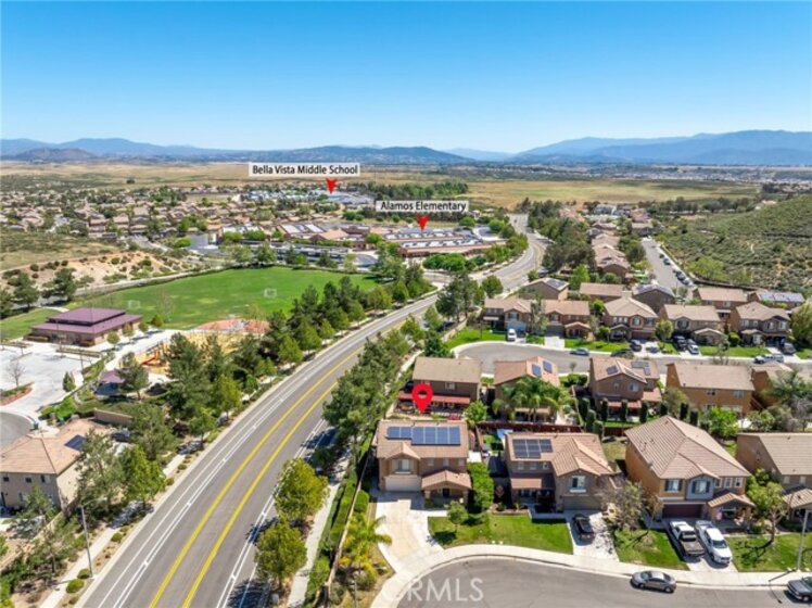 Located just 10 minutes from the Temecula Wineries and walking distance to Top-Rate Schools, this Murrieta home has it all! Welcome to 38332 Chestnut Circle, a beautifully cared for 3-Bedroom, 2.5-Bathroom home in the desirable community of Rancho Bella Vista. This home sits less than a block away from Alamos Elementary School and within walking distance to Bella Vista Middle School, Sports Park, Playground, and Recreation Center. As you step inside, you will notice the functional and well-designed floor plan. The main level showcases stylish mosaic tile flooring and a spacious living area centered around a cozy fireplace with a classic mantel, creating the perfect space for both relaxing and entertaining. The kitchen is upgraded with custom lighting, stainless steel appliances, and ample cabinetry, offering style and functionality. Upstairs, you will find a generously sized loft providing flexible living space ideal for a home office, game room, media room, or play area. The oversized primary suite is your peaceful retreat, complete with a large walk-in closet and walk-in shower. Additional bedrooms are well-proportioned and versatile for family, guests, or workspace needs. The backyard is beautifully maintained with mature trees, vibrant flowers, and lush greenery, creating a private and serene outdoor setting. Enjoy year-round outdoor living under the Alumawood patio cover, and unwind in the spa after a long day. The home is equipped with an energy-efficient solar system with approximately 8 years remaining on the solar lease, offering significant savings on utility costs. Don’t miss this opportunity to own a turn-key home in one of Murrieta’s most sought-after neighborhoods.