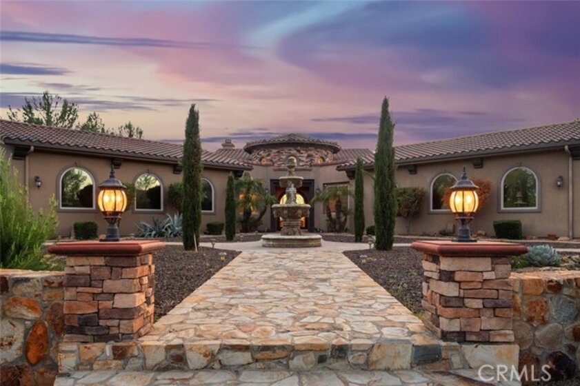 UTMOST PRIVACY & STUNNING VIEWS FROM THIS 10-ACRE SINGLE-STORY ESTATE IN LA CRESTA! Even has room for horses with submitted barn & arena plans! This single-story Showstopper is a “WOW” from the jump! From one of the best streets in La Cresta (Vista del Bosque means “View of the Forest”), the long private tree-lined driveway leads you to an automatic entry gate, accessing this magical estate. Notice the abundant use of natural stone (quarried from the property), as you head toward the custom iron front door and into the vaulted entry, where you will immediately be greeted, through a wall of glass, by the inviting resort-style pool and unobstructed panoramic mountain views. At dusk, as the sun sets over the Cleveland National Forest, the color palette goes from daylight to every imaginable shade of lavender. With views from every room in the house, the inside of this Italian-inspired home will not disappoint. Find 10–22-foot ceilings, all ensuite bedrooms, 8-ft solid doors, spacious great room, separate media room, wet bar, and a chef’s kitchen with 4 dishwasher drawers, & massive eat-around island. One of the two garages has been tastefully converted to a spacious bonus room, to be used how you like (currently is a game room). The grounds are very interesting with varying elevations, walk paths, gardening pavilion, RV parking pad and wood fencing. The pad adjacent the house is plenty large enough for an ADU or workshop, and the bottom 4 acres, already stubbed for power, has views of the forest and abundant flat land to create a dream horse or farm area. Views like this are one in a million. Add the immaculate, high-quality, dramatic, private estate, and you have a formula for a STUNNING FOREVER HOME! *****SANTA ROSA PLATEAU: 5-acre minimum parcels (10-acre minimum. in SR West), just minutes to schools, restaurants, hospitals, grocery stores, 15 Fwy & Temecula Wine Country. Enjoy this peaceful ranch community w/no commercial businesses, robust social activities, miles of private community trails & 1000s of acres of Ecological Reserve…All less than 1.5 hours from LA, SD, OC, Palm Springs & Big Bear. Discover the country, yet convenient, lifestyle of La Cresta, Tenaja & the Communities of the Santa Rosa Plateau!