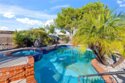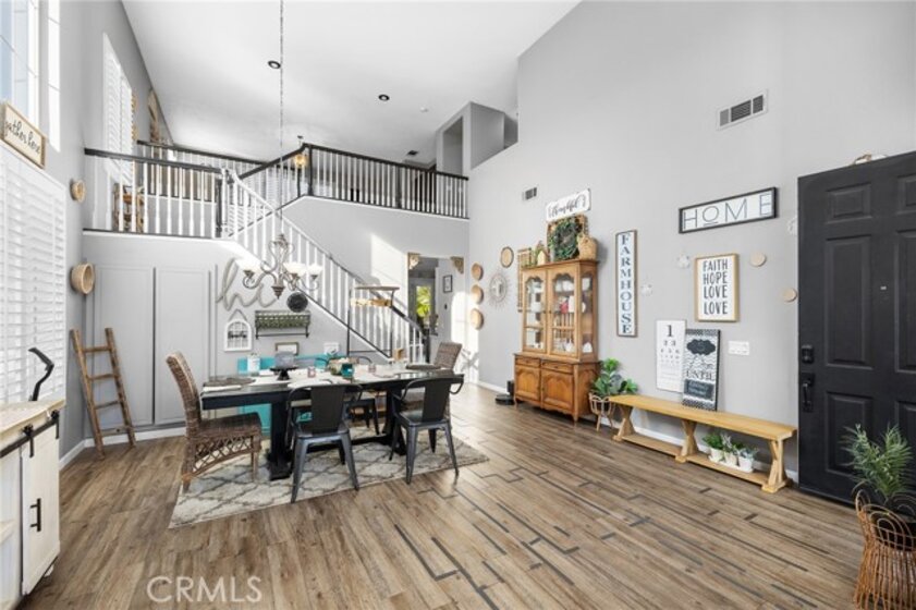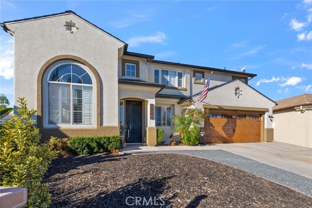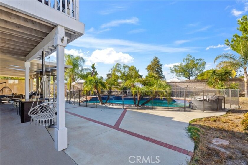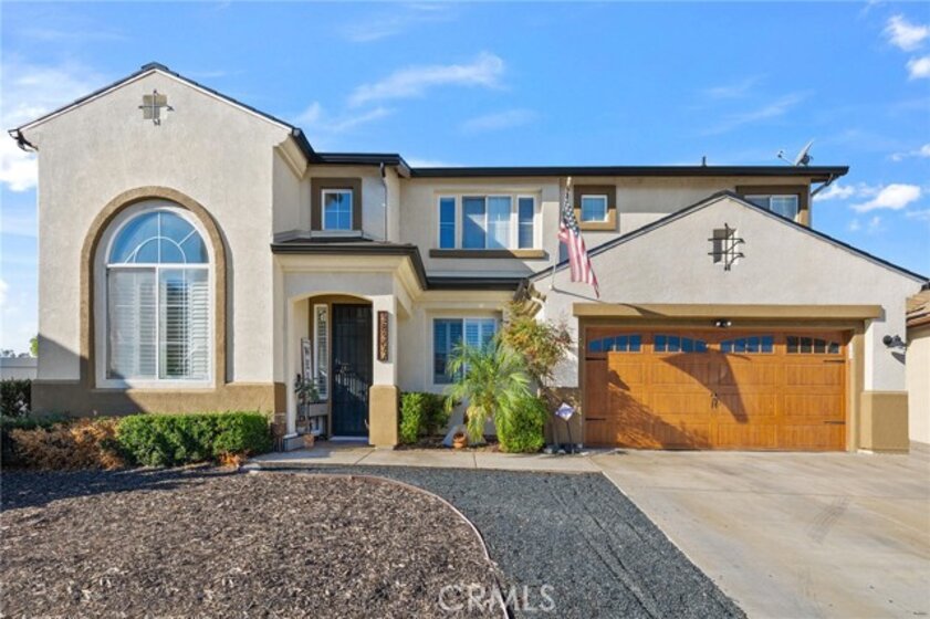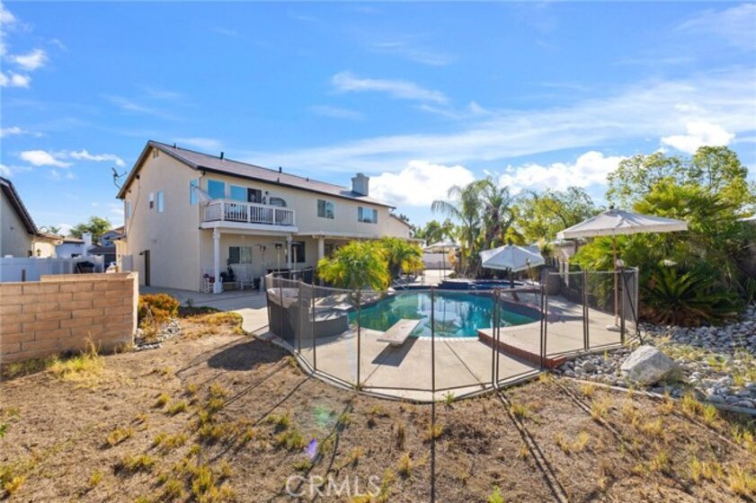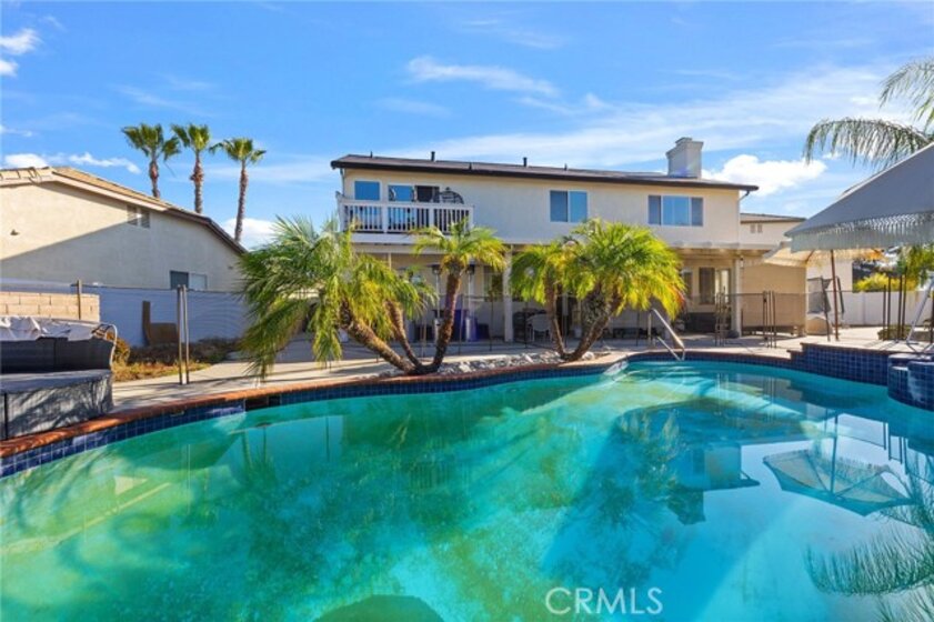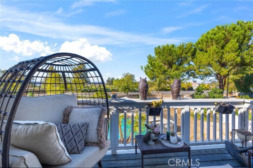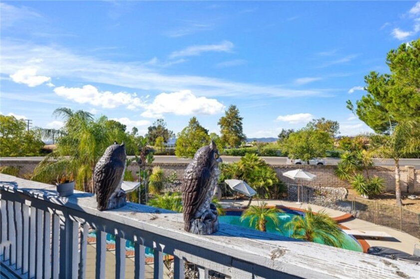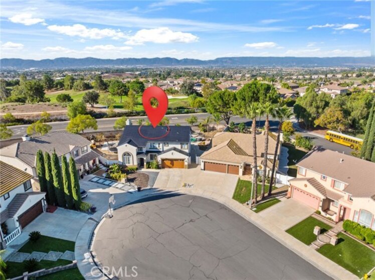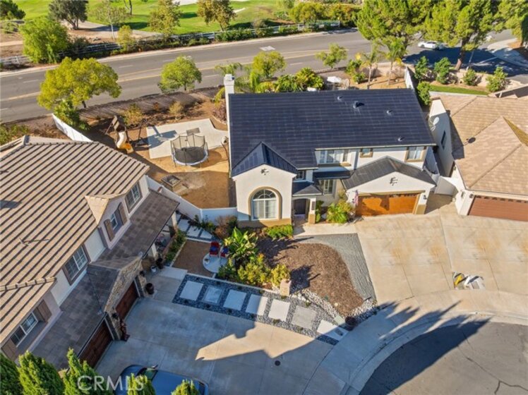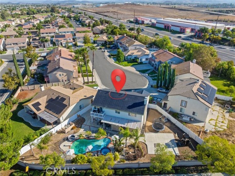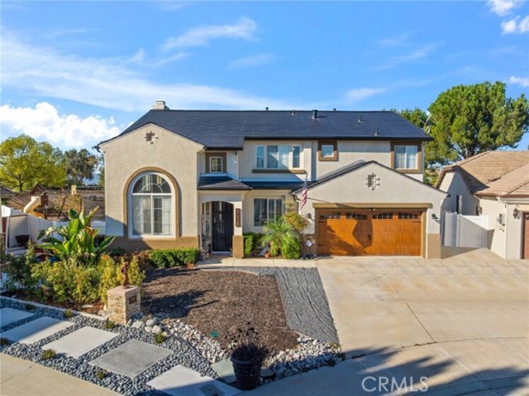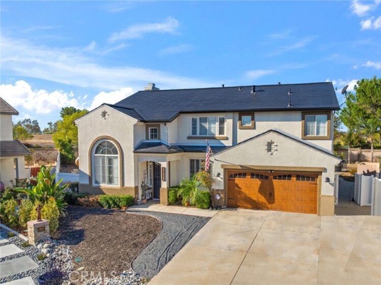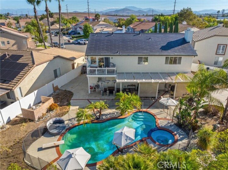 This Murrieta pool home located in The Golf Club at Rancho California Community sits on an expansive 11,000+ square foot lot in a desirable cul-de-sac location and features fully paid-off Tesla solar roof tiles for energy-efficient living with a Tesla car charger and no HOA fees. The thoughtfully designed 4-bedroom, 3-bathroom floor plan offers main-level convenience with a guest bedroom and full bathroom downstairs, perfect for visitors or multi-generational living. The home showcases an open-concept family room seamlessly connected to the kitchen, complete with a charming fireplace for cozy gatherings, while the formal living room impresses with soaring vaulted ceilings and flows into an elegant formal dining room ideal for entertaining. Upstairs, you'll discover a versatile loft space, two generous secondary bedrooms, and a luxurious master suite featuring a spa-like master bathroom and an exceptionally spacious walk-in closet. Step out onto the private deck off the master bedroom to enjoy breathtaking views and peaceful mornings. The backyard has a covered patio providing shade for outdoor dining, plus a pool and relaxing spa where you can unwind and enjoy the Southern California lifestyle year-round and no rear neighbors.