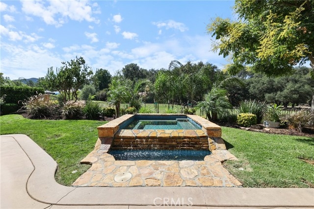 Tucked away on a serene cul-de-sac, this single-story French Provençal estate blends timeless architecture with modern luxury. Rare offering of elegance and lifestyle in the prestigious Bear Creek Community. Framed by graceful oak trees and sweeping hillside views, the home offers 4 bedrooms, 4.5 bathrooms, and exquisite living spaces designed for both comfort and elegance. Inside, the heart of the home is a chef’s kitchen featuring a center island, 6-burner range with griddle, double ovens, granite counters, and a walk-in pantry. The adjoining family room dazzles with a stone fireplace and a picture window that captures the beauty of the natural landscape. The primary suite is a private retreat with its own fireplace, French doors leading to a secluded jacuzzi, and a spa-inspired bath with soaking tub, dual sinks, vanity, walk-in shower, and expansive closet. Each additional bedroom enjoys its own en-suite bath, with two opening onto a charming courtyard. Outdoors, private patios and a welcoming front courtyard invite relaxation and entertaining, while a resort-style spa with stone and waterfall features completes the setting. An oversized 3-car plus golf cart garage with epoxy floors, along with a fully paid solar system, ensure convenience and efficiency.