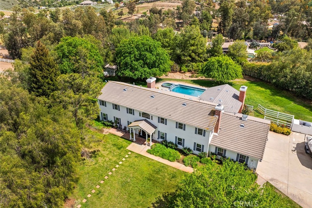 HORSE LOVERS’ LA CRESTA DREAM ESTATE! This spectacular, recently renovated home on 5 acres comes with all the bells & whistles! Tons of usable land, 150x75’ arena, 40’ round pen, direct trail access, barn with massive turnouts, pool & spa, giant mature trees, parklike grounds with grassy lawns and a very private location within the renown ranch community of La Cresta on the Santa Rosa Plateau. This estate even comes with a generous insurance discount for its proximity to the local fire station! The current owners spared no expense on the home renovations, including new flooring & paint throughout, remodeled kitchen, leveling of the previous sunken living room, designer lighting, custom front door and more! Most of the living space is single level with no steps, spacious rooms, guest wing (great for in-laws, kids…), lots of natural light, beamed ceilings, direct garage access, windows & doors to the beautiful backyard and pool. The Primary Suite and Jr. Primary Suite are both upstairs separated by a dramatic catwalk, providing an abundance of privacy. This remodeled estate in the heart of La Cresta with its usable land, fantastic horse facilities, paid-for solar and easy location is a real gem. And it is PRICED TO SELL! *****LA CRESTA & THE SANTA ROSA PLATEAU: 5-ac minimum parcels, minutes to schools, restaurants, hospitals, shopping, 15 Fwy & Temecula Wine Country. Enjoy this peaceful ranch community w/no commercial businesses, robust social activities, miles of private community trails & 1000s of acres of Ecological Reserve…All less than 1.5 hours from LA, SD, OC, Palm Springs & Big Bear. Discover the country, yet convenient, lifestyle of La Cresta, Tenaja & the Communities of the Santa Rosa Plateau!