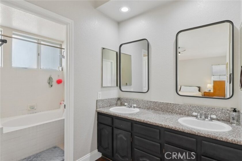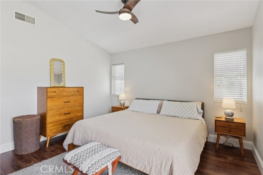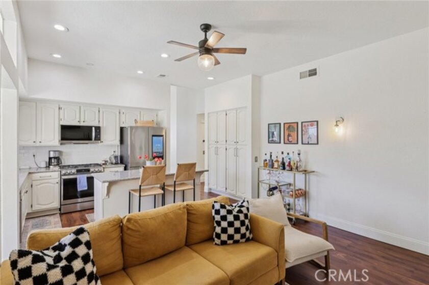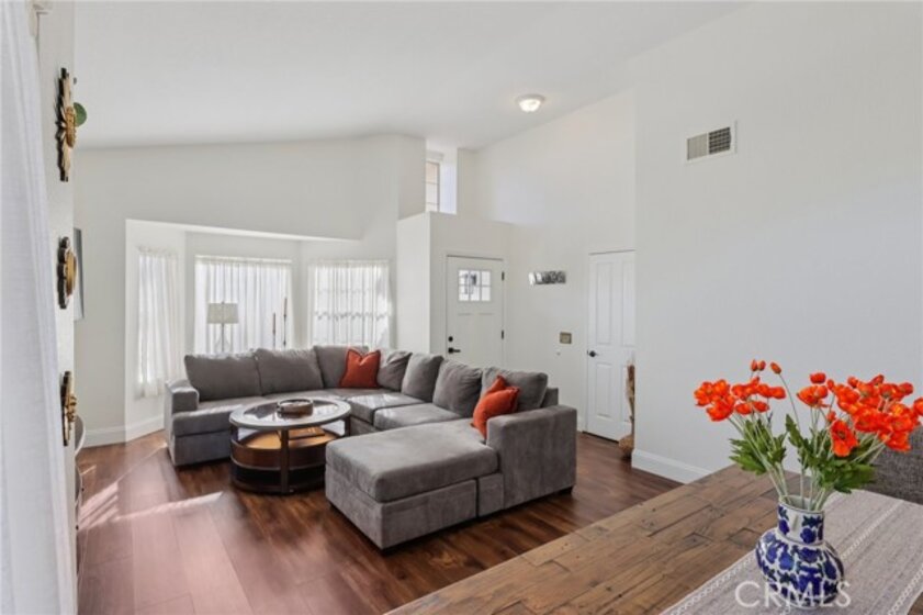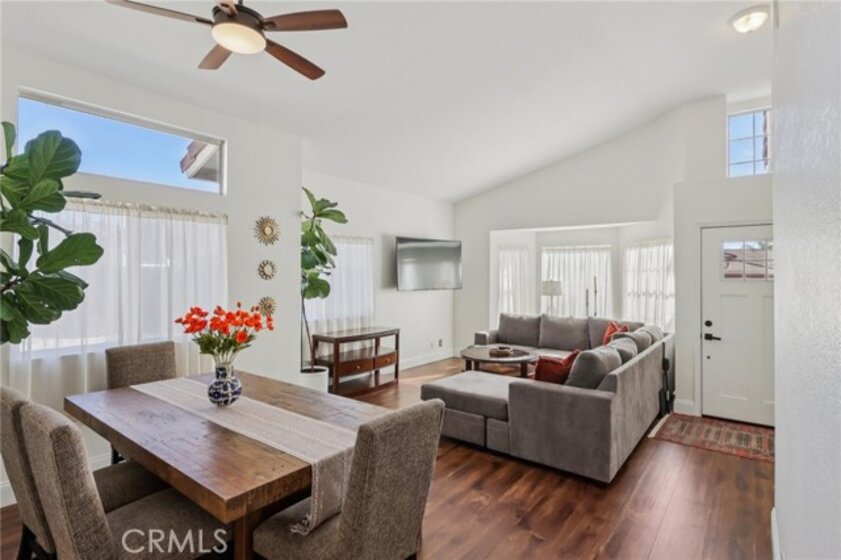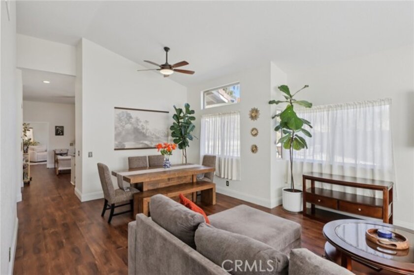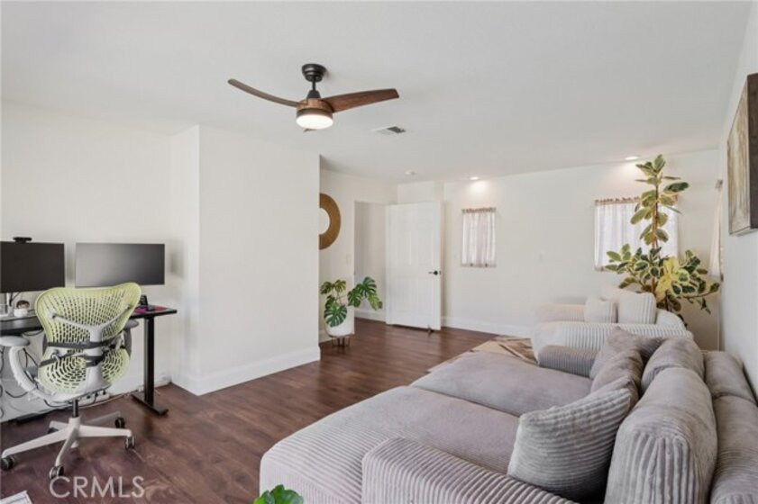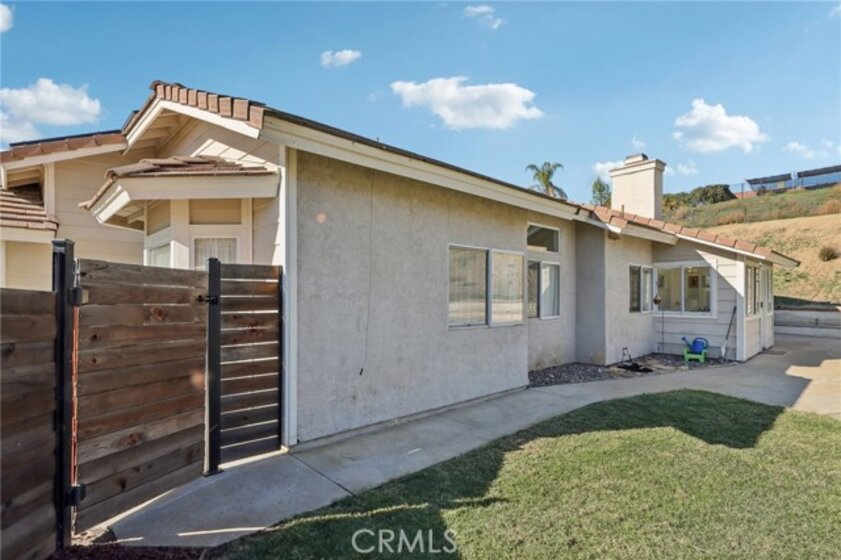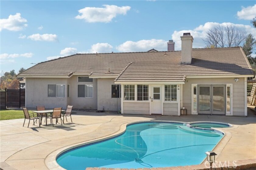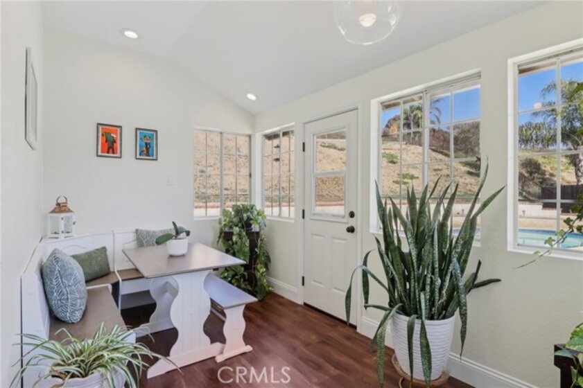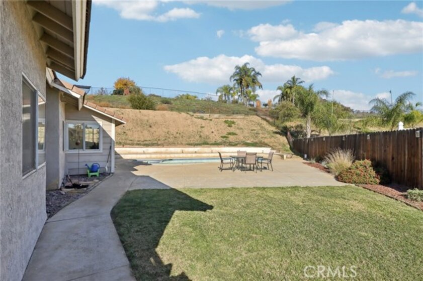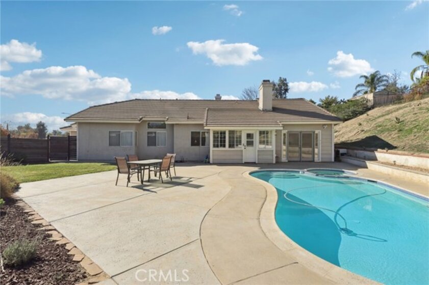Gorgeous 4 bed, 2 bath pool home is ready for it's next owner and offers great curb appeal, sitting on a cul-de-sac street with large gated front courtyard to enjoy, and Solar Panels! The interior is open and spacious featuring high ceilings, recessed lights, white paint and wood look-vinyl flooring throughout! Enter into the living room and dining area with lots of natural light. The separate family room sits just off of the kitchen and offers a cozy fireplace to enjoy, and there is a sunroom, or could be a breakfast nook or office. The updated kitchen features a center island with bar seating, granite countertops, white cabinetry, and stainless steel appliances including the oven and microwave. All 4 bedrooms are generously sized with the large primary bedroom offering double glass doors to the backyard and a private bathroom with dual sink vanity. There is also a full-size hall bathroom for the secondary bedrooms to share, both bathrooms have been nicely updated, and a laundry room with additional storage completes the first floor. Upstairs you will find a bonus room with private entry exterior entry, great for guests! Enjoy the private in ground pool and spa, there is also a large grass side yard and gorgeous mountain views! Conveniently located near schools, shopping, dining, and No HOA! Schedule your tour today!