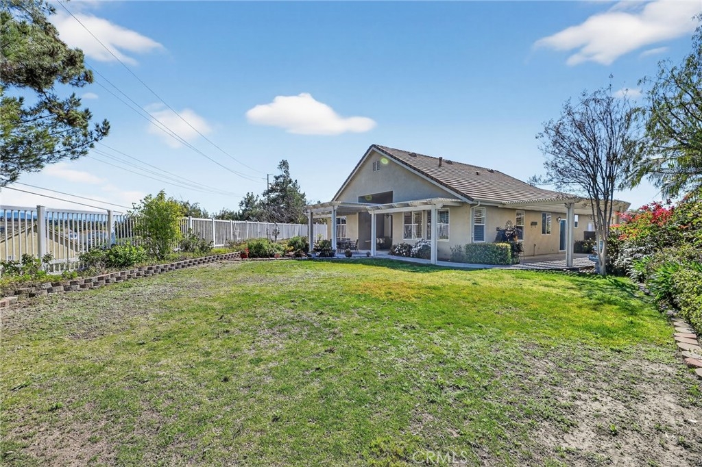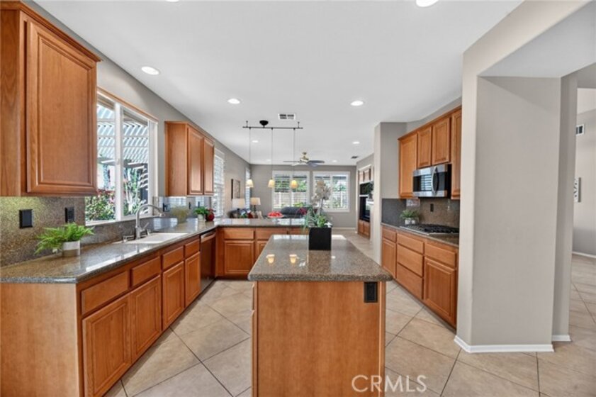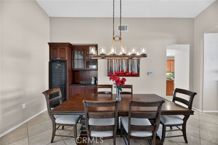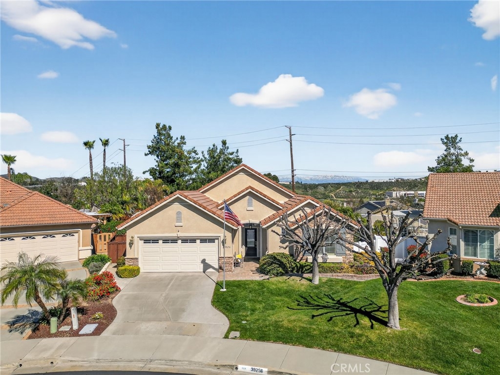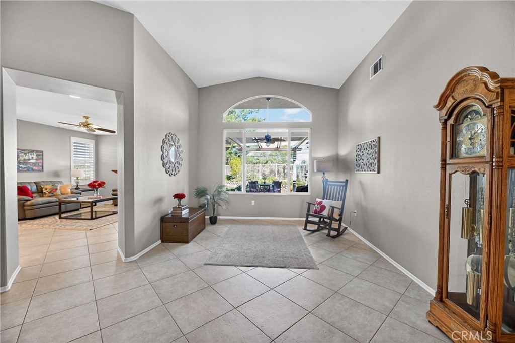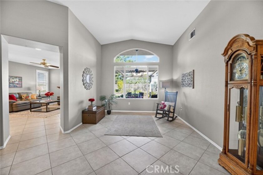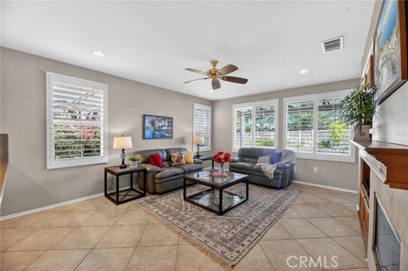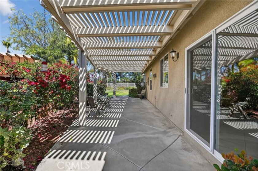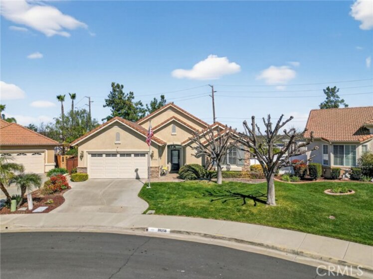 Welcome to Four Seasons where the good life is always in season. Located on one of the most desirable streets just two blocks from the clubhouse, this sought-after Traditional 3 floorplan offers 2,289 sqft on an elevated pie-shaped lot just under a quarter acre with incredible views and privacy. The home features 2 bedrooms, 2 full bathrooms, and an office that can easily convert to a 3rd bedroom. Vaulted ceilings and abundant windows create an open layout filled with natural light. The formal dining room includes a custom built-in with oversized wine fridge. The kitchen offers extensive cabinetry, a central island, sit-up bar, and informal dining area with direct access to the shaded side yard—perfect for morning coffee. The family room features a built-in entertainment center, fireplace, and access to the covered patio. The spacious primary suite opens to the backyard and includes a custom tiled shower, corner soaking tub, dual vanities, and dual walk-in closets. The secondary bedroom has convenient access to the hall bath. The office features a custom two-station built-in desk. The private backyard showcases mature landscaping, an Alumawood patio cover, concrete pad for a future spa, and ample space for entertaining. Residents enjoy The Lodge, a 13,000 sqft clubhouse on 10 acres with pool, spa, tennis, pickleball, bocce, basketball, chipping/putting area, fitness center, ballroom, billiards, sauna, and over 50 clubs and activities. Ideally located near shopping, golf, and Temecula’s award-winning wineries. Opportunities like this are rare in Four Seasons.