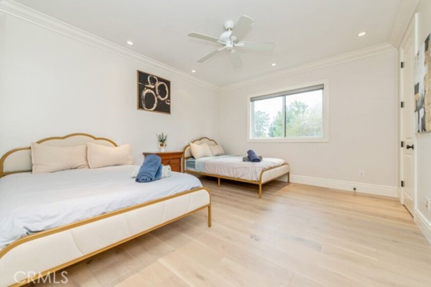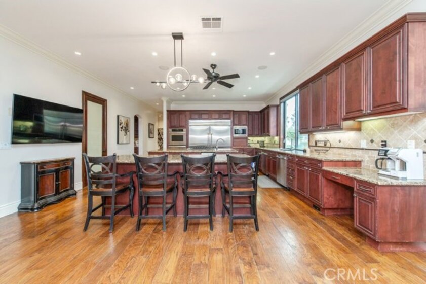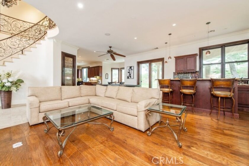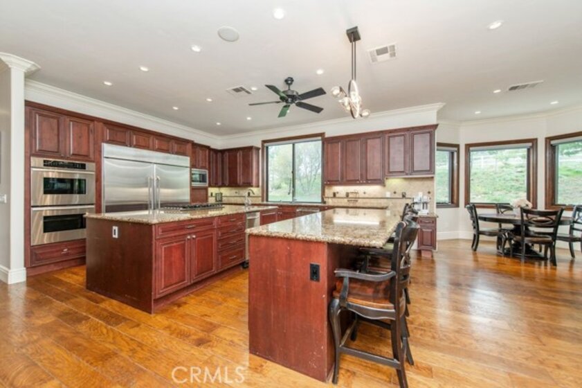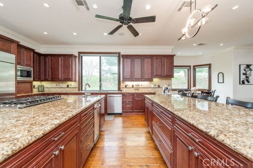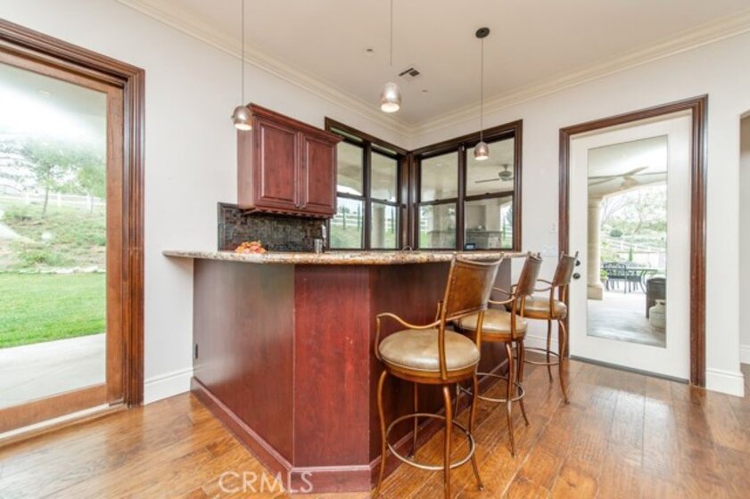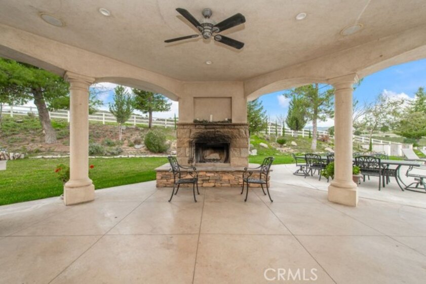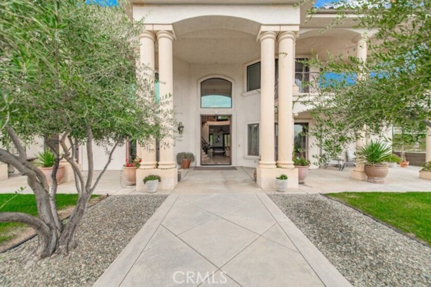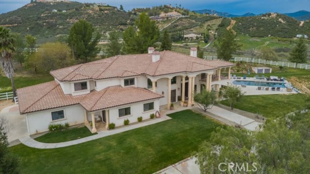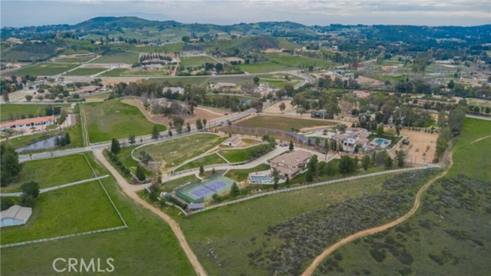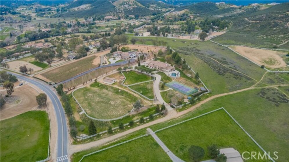 Set behind private gates in the prestigious equestrian community of La Cresta, this extraordinary custom estate offers true resort-style living on 5.29 acres of scenic hillside land. Designed by renowned Swedish architect Steve E. A. Falk, the approximately 6,079-square-foot residence is a masterful blend of architectural presence, thoughtful craftsmanship, and grand scale. The home features 6 bedrooms and 8 bathrooms, including a private main-level casita with kitchenette and separate entrance, ideal for guests, extended family, or long-term hosting. A grand formal entry with custom tall doors welcomes you into soaring ceilings, dual staircases, and elegant living and dining spaces anchored by dramatic dual-sided fireplaces, creating an immediate sense of sophistication and warmth that defines true estate living. At the heart of the home is an entertainer’s dream kitchen, appointed with two elongated granite islands, dual dishwashers, Viking professional appliances, a walk-in pantry, and a butler’s pantry with wine refrigerator. The kitchen opens seamlessly to the expansive great room, featuring a custom stone fireplace and a full-service bar designed for effortless entertaining. Additional interior highlights include a private 9-seat theater, a dedicated office with custom cabinetry, dual laundry rooms on both levels, and an impressive upstairs primary suite offering a fireplace, private retreat, spa-inspired bath, and a generous walk-in closet. A fitness room with balcony captures panoramic hillside views, while refined finishes and abundant natural light elevate every living space throughout the home. The outdoor experience rivals that of a private luxury resort, highlighted by a dramatic infinity-edge pool and spa, expansive patios, and a rare sunken, lighted tennis and pickleball court. The estate is exceptionally equipped for equestrian living, featuring a 4-stall barn, riding arena, paddocks, and direct access to miles of scenic riding and walking trails. An expansive 8-car garage, RV parking, paid-off 60-panel solar system, private well, and backup power provide efficiency, sustainability, and low operating costs. Ideally located near the Santa Rosa Plateau, Old Town Temecula, award-winning wineries, and equestrian preserves—with convenient access to Orange County, Los Angeles, San Diego, and Palm Springs—this remarkable estate offers a rare opportunity to experience privacy, scale, and the iconic La Cresta lifestyle at its finest.