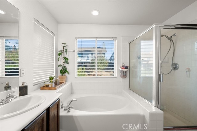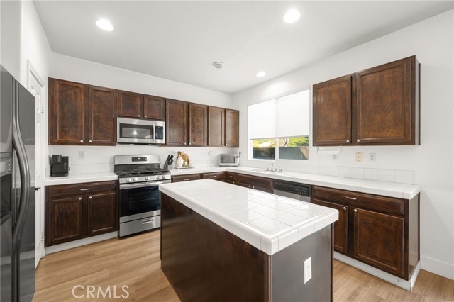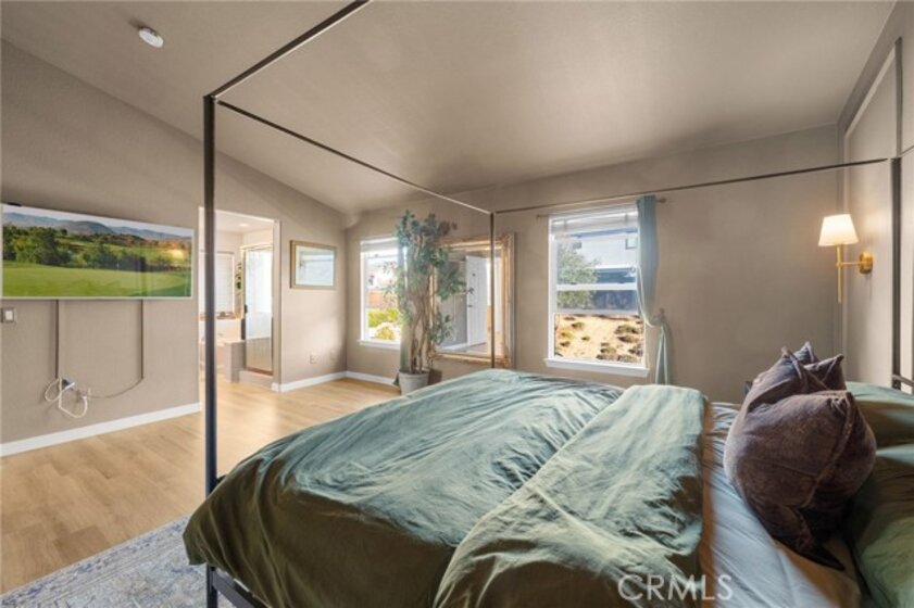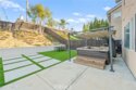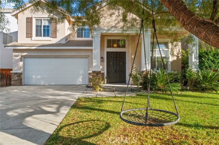 Welcome to this inviting 4-bedroom, 2.5-bath home offering 2,109 sqft of comfortable living space. You are close to EVERYTHING at this location! Upon entry, you’re greeted by soaring high ceilings and luxury vinyl plank flooring that runs throughout the home, creating a bright and cohesive flow. This west-facing home enjoys excellent natural light throughout the day, filling every room with warmth and openness. The spacious primary suite features high ceilings, fresh paint, and plenty of room to relax. One of the secondary bedrooms also boasts vaulted ceilings and new paint, adding extra character and dimension. The backyard has been completely redone with a combination of fresh concrete, custom pavers, high-quality turf, and decomposed granite plus a retaining wall, provides additional usable space and the luxury above-ground hot tub (included and in excellent condition) offers the perfect spot to unwind. Exterior fencing has recently been painted. Additional features include a newer water heater, fully painted interior, 2-car garage, and a beautifully landscaped front yard with green grass, rose bushes, and palms for great curb appeal. This home combines space, style, and thoughtful updates in a bright and welcoming setting.