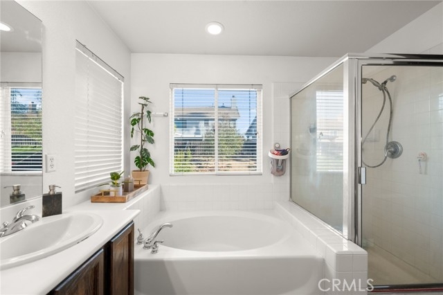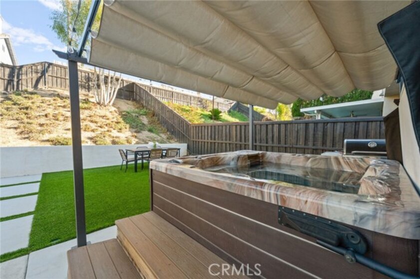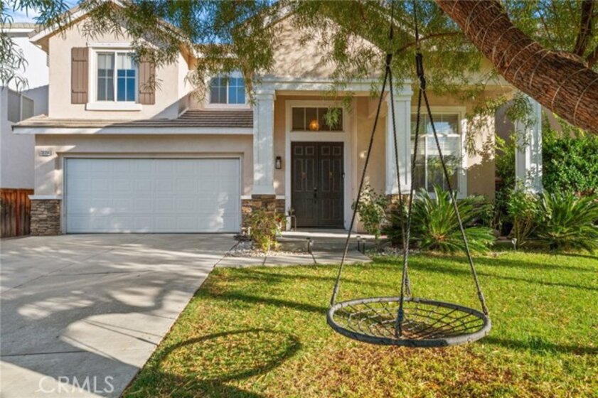 Welcome to this inviting 4-bedroom, 2.5-bath home offering 2,109 sqft of comfortable living space. You are close to EVERYTHING at this location! Upon entry, you’re greeted by soaring high ceilings and luxury vinyl plank flooring that runs throughout the home, creating a bright and cohesive flow. This west-facing home enjoys excellent natural light throughout the day, filling every room with warmth and openness. The spacious primary suite features high ceilings, fresh paint, and plenty of room to relax. One of the secondary bedrooms also boasts vaulted ceilings and new paint, adding extra character and dimension. The backyard has been completely redone with a combination of fresh concrete, custom pavers, high-quality turf, and decomposed granite plus a retaining wall, provides additional usable space and the luxury above-ground hot tub (included and in excellent condition) offers the perfect spot to unwind. Exterior fencing has recently been painted. Additional features include a newer water heater, fully painted interior, 2-car garage, and a beautifully landscaped front yard with green grass, rose bushes, and palms for great curb appeal. This home combines space, style, and thoughtful updates in a bright and welcoming setting.