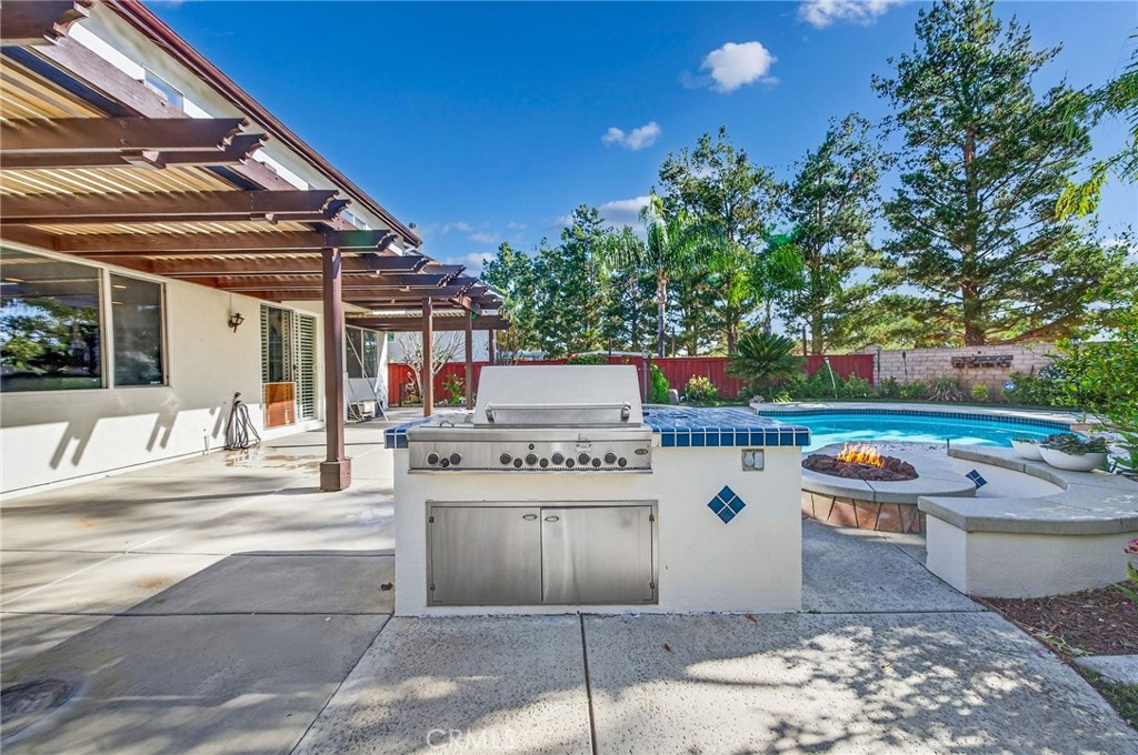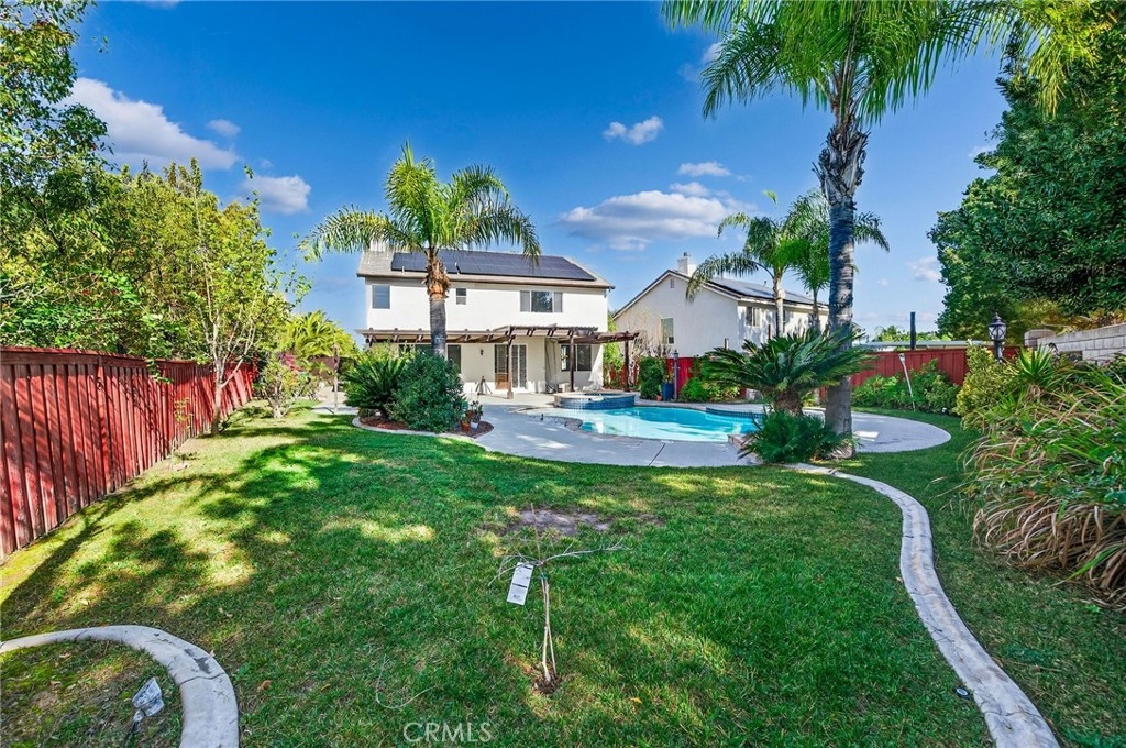 Discover elegance and sophistication at 39340 Majestic Circle! A STUNNING 5-BEDROOM POOL HOME ON A PRIVATE CORNER LOT perfectly positioned at the end of a quiet cul-de-sac. This richly appointed residence features a spacious and functional 5-bedroom, 3-bathroom layout designed for modern living. The heart of the home is the expansive chef’s kitchen, which features ample cabinetry and flows seamlessly into a large family room—ideal for gatherings. High-end custom touches abound, including a sophisticated built-in bar area and custom cabinetry. Another highlight is the luxurious primary suite that serves as a true sanctuary, boasting a massive walk-in closet and spa-like finishes. Step outside to a private paradise featuring a sparkling pool with an overflowing spa, a custom fire pit with built-in bench seating, and lush landscaping. The oversized corner lot provides exceptional privacy, the rare convenience of gated RV parking and paid-off solar. Located in a top-rated school district near shopping, dining, and parks with NO through traffic. This is a turnkey masterpiece that must be seen to be appreciated. Don't miss your opportunity to own this majestic retreat—come take a look and fall in love with your new home today!