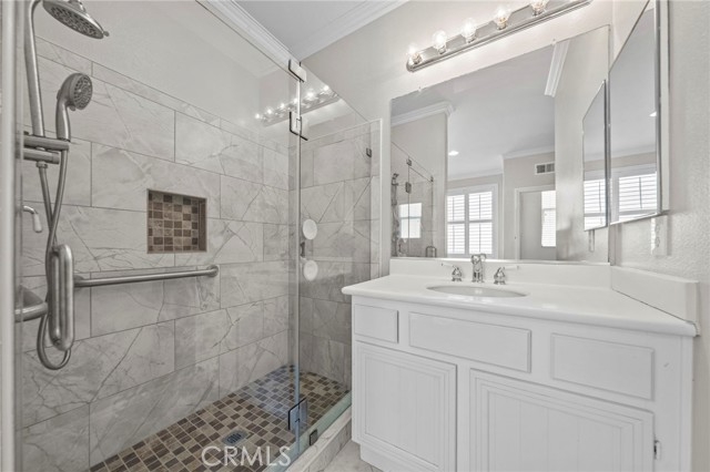 Welcome to 39463 Napa Creek Drive, an impeccably maintained, original-owner home in the prestigious Four Seasons 55+ community of Murrieta. This spacious single-story residence offers 2 bedrooms plus an office, 2 bathrooms, of thoughtfully designed living space featuring quartz countertops, crown molding throughout, plantation shutters, and freshly painted interior. The open layout with lots of natrual light flows seamlessly into a beautifully landscaped backyard with stamped concrete, a covered patio, and peaceful mountain views—perfect for relaxing or entertaining. The epoxy-coated garage is loaded with built-in cabinets and overhead storage racks, offering exceptional functionality. A new vinyl fence and gate enhance the privacy and curb appeal of the lush front and rear landscaping. Nestled on a quiet street that backs up to the clubhouse, this home offers quick access to world-class amenities including a 10-acre lodge with a heated pool and spa, fitness center, aerobics and dance studio, library, hobby rooms, beauty salon, and ballroom. Outdoor features include tennis and pickleball courts, shuffleboard, bocce ball, putting green, and walking trails. With a vibrant social calendar, low HOA dues, and no Mello-Roos, this move-in ready gem blends luxury, comfort, and an unbeatable lifestyle.