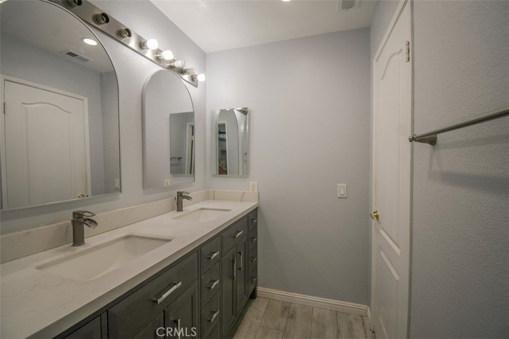 Light and bright Single-Story home with a fully dry walled 3-car garage, insulated garage doors, and gated RV Parking on the side of the house! Great floorplan with 4 bedrooms, 2 newly remodeled bathrooms, large Primary Bedroom with slider leading to the backyard. One of the 4 bedrooms would make an excellent home office with double doors. Large living room with stone fireplace, formal dining room, kitchen with granite counters, nice size family room with adjoining kitchen nook. New wood plank style tile flooring throughout along with new base boards, newly painted interior, new interior lighting fixtures and LED can lights. Huge fully fenced backyard with newly added Alumawood patio cover with integrated lighting perfect for entertaining family and friends. The backyard is a blank canvass ready to add a pool/spa or large lawn for the kids. No neighbors behind you, all open greenbelt space. Garden shed on the side of the house and RV/boat parking. This home has a really nice feel to it and the neighborhood is lovely. Come and enjoy the Murrieta lifestyle close to all the good schools and shopping and easy freeway access. No HOA Fees! No Mello Roos Tax!