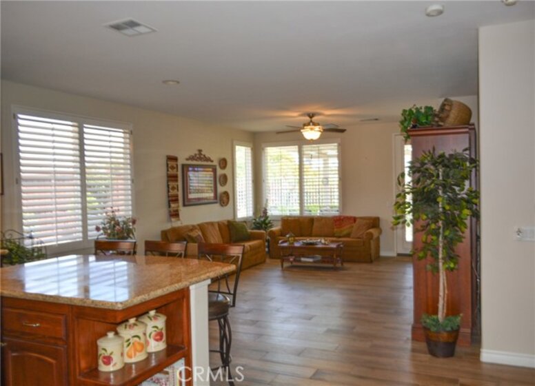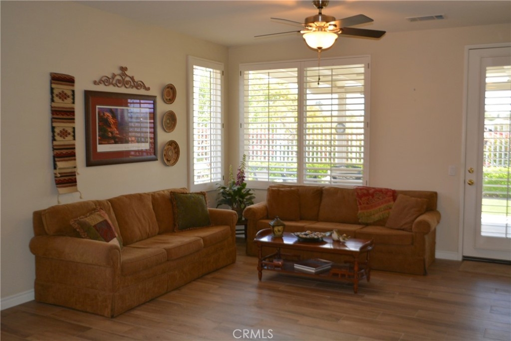 Enjoy this Turn-Key home that features a Craftsman 1 Floor Plan, 1772 sq. ft. of living space, including 2 bedrooms & 2 baths plus an office, located on a quiet cul-de-sac with no through traffic. The backyard is very spacious with more side and rear area than most of the neighboring houses. The low maintenance rear yard has a covered patio with an Easterly view. There is also a covered front porch for evening conversations with neighbors. When entering this home, the first area you see is an office from which you can view your front yard and street. The next area you come is a formal dining room. The main living area has the kitchen with an island, a dinette area, and a good-sized family room with fireplace and a door to the back patio. The primary bedroom has double door entry and is spacious with a large walk-in closet and primary bath; plus, there is a slider to the rear yard. Off the same hallway is a second bedroom and guest bath. The laundry room has a sink with cabinets and is adjacent to the 2-car garage. The house features many upgrades such including flooring, window treatments, cabinetry in the kitchen, upgraded kitchen appliances, plus Solar lights in both the Guest bathroom & Laundry Room. The Fridge, Washer & Dryer Convey. Four Seasons Community has a large lodge and outdoor activities area. There are as many clubs thought up by the owners that you can join. Included in the Lodge area is a year-round heated pool, jacuzzi, BBQ area, tennis courts, pickleball courts, shuffleboard, horseshoes, bocce ball and a golf practice area. Inside the Lodge is a library, computer room, card room, billiards, workout area and gym, and a lovely ballroom for parties and events. Four Seasons is located conveniently near the Promenade Shopping area, restaurants and wine country.