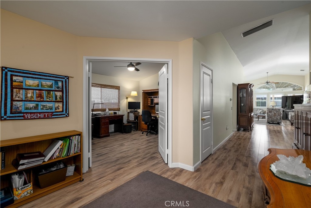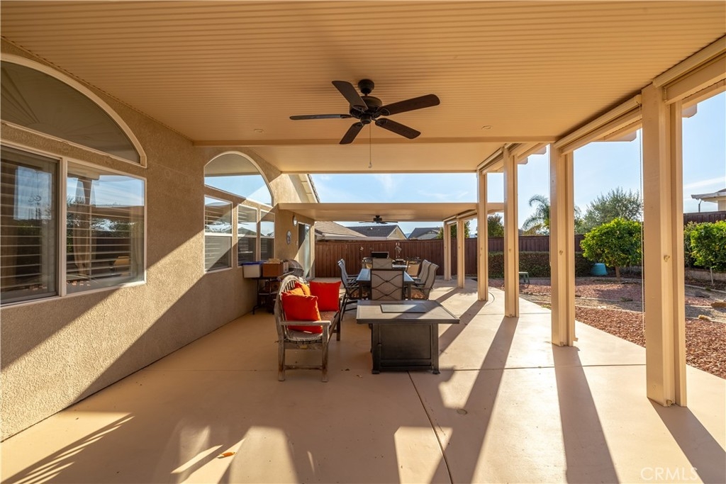 Welcome to 39535 Stags Leap Dr, located in the Four Seasons Murrieta 55+ Active Retirement Community! This home is the Craftsman 3 floor plan, with 3 bedrooms, 2 bathrooms, 2,095 sqft, on a 7,841 sqft lot. As you enter the home, you will notice the Vaulted Ceilings and Luxury Vinyl Plank (LVP) flooring. The kitchen has been upgraded with Bottle Glass Quartz countertops, tile floors, pull out drawers, and ample storage and opens to the Great Room. The Great Room has living space, breakfast nook, and dining room, and has ceiling fan and plantation shutters. The primary bedroom has plenty of space for a bed, dressers, and a sitting area. As you walk into the primary bathroom, you will see 2 closets, one is a walk-in closet, and the other is a sliding door closet. In the bathroom there are 2 sinks, vanity, walk-in shower, and separate soaking tub. There are 2 guest bedrooms located in the front of the home, one is currently set up as an office and the other is set up as a craft room. The guest bathroom is located between the guest bedrooms and has a shower in tub. The laundry room has a deep sink and storage cabinets. There is a 2 car garage and has been updated to a tankless water heater. The backyard is low maintenance landscaping with fruit trees and large, extended patio cover. This home is also close to "The Lodge" which is the clubhouse for the community. Residents of Four Seasons Murrieta enjoy a vibrant community with a variety of clubs and activities, from art classes to yoga, bridge, billiards, and more. Outdoor amenities include a large pool, spa, BBQ area, putting green, golf practice area, horseshoes, shuffleboard, bocce ball, basketball, and lighted courts for tennis, pickleball, and badminton. Indoors, you can take advantage of the gym, library, billiards and card room, craft room, and a large ballroom for events. Nearby, you'll find a major shopping mall with excellent restaurants and movie theaters. Old Town Temecula, with its charming downtown and award-winning wineries, is just a few miles away. Come and discover the active, enjoyable lifestyle waiting for you at Four Seasons Murrieta!