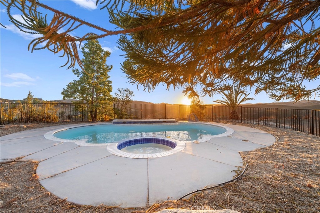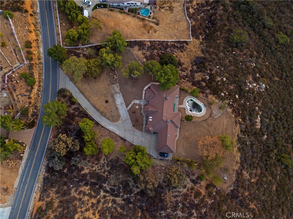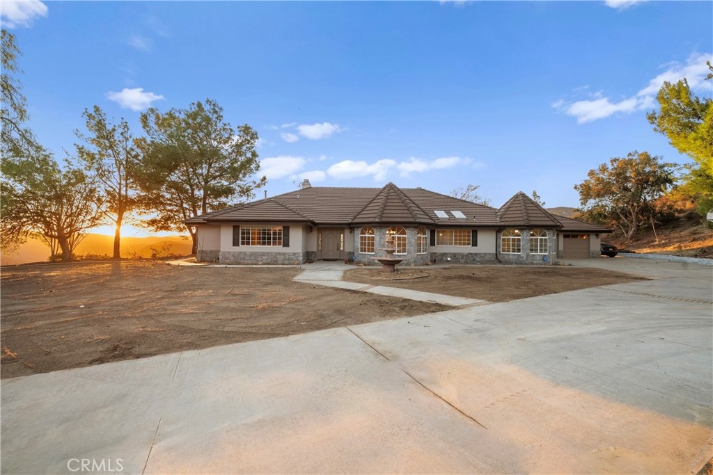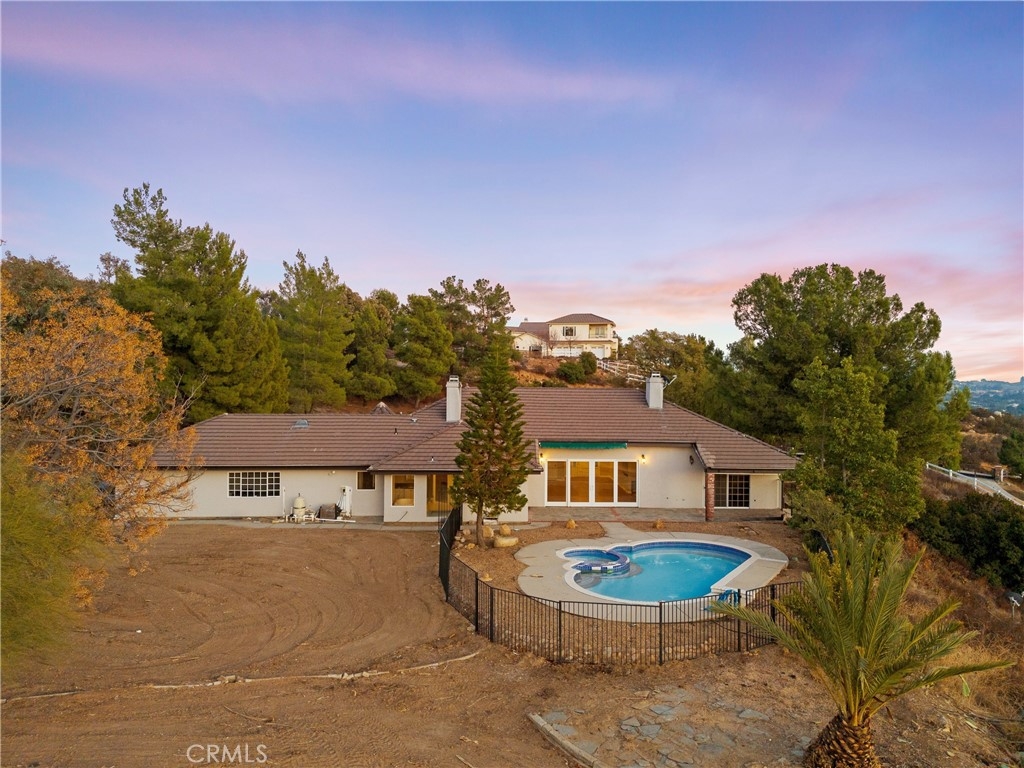 Nestled in the serene and highly desirable La Cresta community, this custom-built single-story home offers the perfect blend of privacy, elegance, and natural beauty. Situated on a sprawling 10-acre estate, this stunning property boasts breathtaking panoramic sunset views from the backyard, making it the ultimate retreat for those seeking peace and tranquility. Step inside to find a thoughtfully designed layout featuring 4 spacious bedrooms and 3 full bathrooms. The master suite, complete with an en-suite bathroom, offers unobstructed views of the surrounding landscape, providing a private sanctuary to unwind. A junior master suite provides additional comfort, while two additional bedrooms are tucked away in a separate wing of the home for optimal privacy. The interior features high-pitched ceilings that create an airy, open ambiance, complemented by warm wood floors throughout. The heart of the home is the expansive kitchen, perfect for entertaining, with ample counter space and room for culinary creativity. Step outside to a backyard oasis featuring a sparkling pool and spa, surrounded by large, mature trees that enhance the home’s secluded feel. Whether you’re relaxing by the pool, hosting gatherings, or simply enjoying the sunset, this outdoor space is truly a haven. Additional features include a 3-car garage, ideal for vehicles or storage, and the property’s proximity to town ensures convenience without sacrificing privacy. This exceptional home is a rare gem offering a lifestyle of comfort, beauty, and tranquility in one of La Cresta’s most sought-after locations. Don’t miss this opportunity to make it yours!