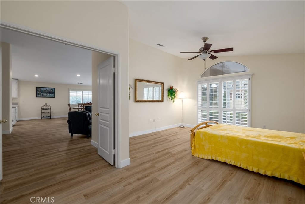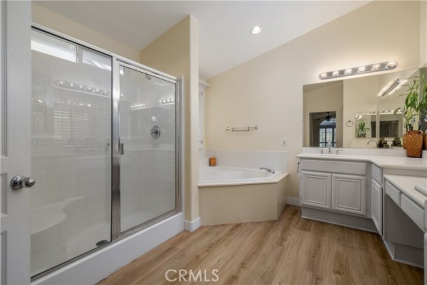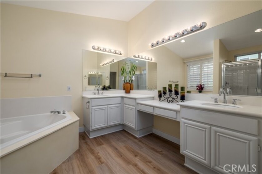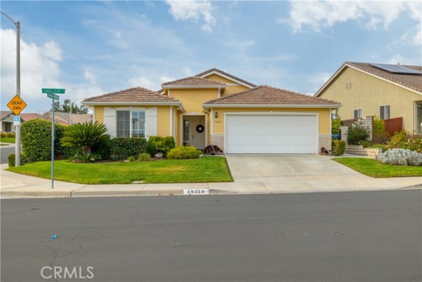 Welcome to 39559 Stags Leap Dr - a Turnkey, Move In Ready Home located in Four Seasons Murrieta 55+ Active Retirement Community! This home is the Craftsman 3 Floor Plan, featuring 3 bedrooms, 2 bathrooms, and 2,095 sqft of living space. Located on a corner lot, this home is on a 8,712 sqft lot that is well manicured for enjoying a peaceful afternoon on the patio. Inside, you will see the home has Luxury Vinyl Plank (LVP) flooring throughout - no carpet anywhere! The kitchen has lots of storage, white cabinets, stainless steel appliances, kitchen island, and opens to the breakfast nook and family room. There is also space for a dedicated dining room. There are plantation shutters throughout the home, French Doors to the back yard off the family room, and a slider to the back yard from the primary bedroom. Double doors separate the living space from the primary bedroom, which has enough space for a sitting area, dual walk-in and hall closet, dual sinks in the bathroom, and separate walk-in shower and soaking tub. The guest bedrooms are located in the front of the home, one with mirrored closet doors, and one with double door entry currently configured as an office or craft room. The backyard also has fruit trees, a shed, and a tiered Alumawood patio cover. The Air Conditioner was just replaced as well. Residents of Four Seasons Murrieta enjoy a vibrant community with a variety of clubs and activities, from art classes to yoga, bridge, billiards, and more. Outdoor amenities include a large pool, spa, BBQ area, putting green, golf practice area, horseshoes, shuffleboard, bocce ball, basketball, and lighted courts for tennis, pickleball, and badminton. Indoors, you can take advantage of the gym, library, billiards and card room, craft room, and a large ballroom for events. Nearby, you'll find a major shopping mall with excellent restaurants and movie theaters. Old Town Temecula, with its charming downtown and award-winning wineries, is just a few miles away. Come and discover the active, enjoyable lifestyle waiting for you at Four Seasons Murrieta!