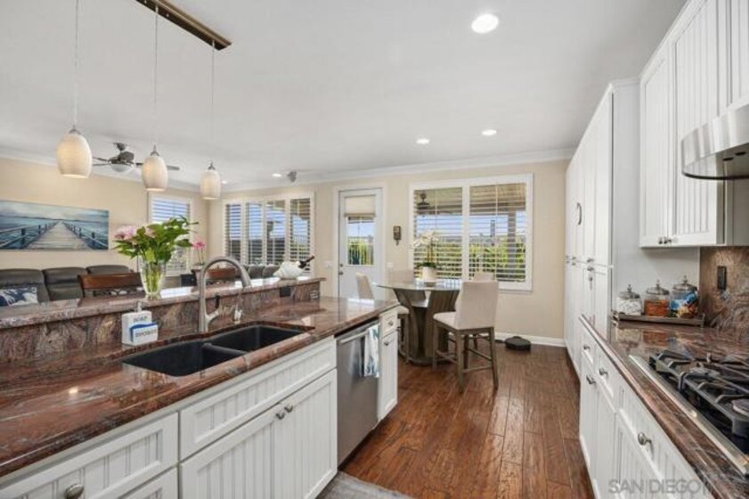 Welcome home to this beautiful single-story residence tucked away on a quiet cul-de-sac in the highly sought-after Four Seasons active adult community. This popular and rarely available floor plan has been nicely upgraded and offers a great mix of comfort, style, and everyday livability. Enter through the inviting courtyard and step into a warm, welcoming space featuring rich hardwood floors throughout. The living and dining room area is perfect for hosting friends or family gatherings. The spacious kitchen is a standout, with stainless steel appliances, granite countertops, plenty of storage, a butler’s pantry, and a casual dining area that’s ideal for everyday meals or morning coffee. Just off the kitchen, the large family room features custom cherry wood built-in cabinets that add both charm and functionality. The primary suite is a true retreat, offering a large walk-in closet and a roomy sitting area that’s perfect for relaxing, exercising, or unwinding at the end of the day. The en-suite bathroom includes dual sinks, a soaking tub, and a separate shower. The third room is currently set up as a home office with custom built-in desks and cabinets, making it a great spot to work or enjoy hobbies. You’ll notice thoughtful upgrades throughout the home, including crown molding, plantation shutters, decorative doors with arched entryways, and an oversized two-car garage with overhead storage. Step outside to your private backyard, where an Alumawood-covered patio, attractive landscaping, and a built-in BBQ create the perfect setting for outdoor entertaining and dining. Living in Four Seasons means enjoying access to beautifully maintained resort-style grounds and the private Lodge. Amenities include a ballroom, fitness center, library, game and card rooms, billiards, a heated pool, bocce ball, tennis courts, shuffleboard, horseshoes, and more. The community also offers plenty of social events and activities, making it easy to stay active and meet neighbors. And best of all, you’re just 10 minutes from wine country. This is a fantastic opportunity to own a highly desirable home in one of the Inland Empire’s premier 55+ communities.