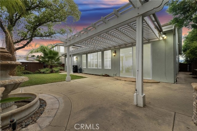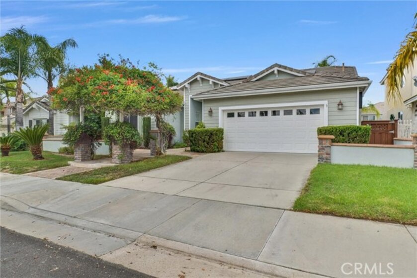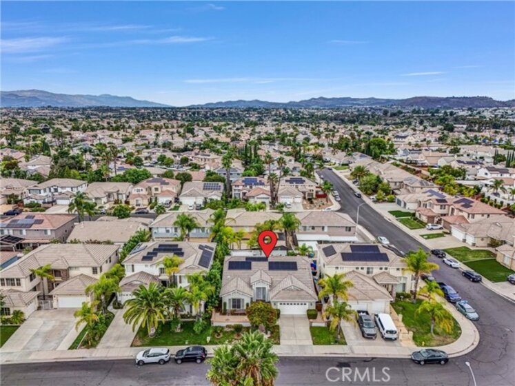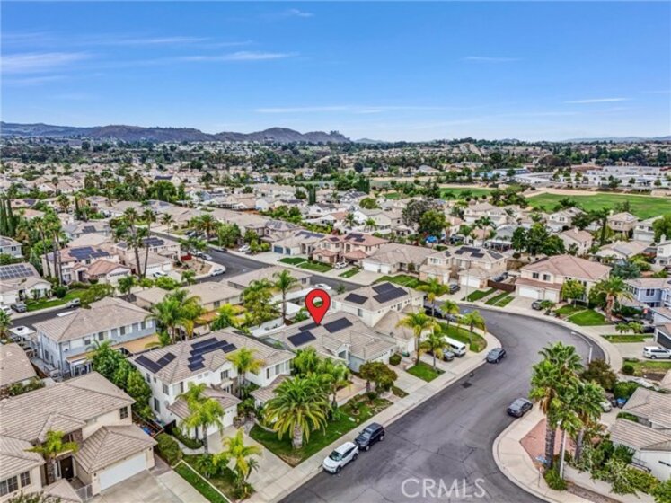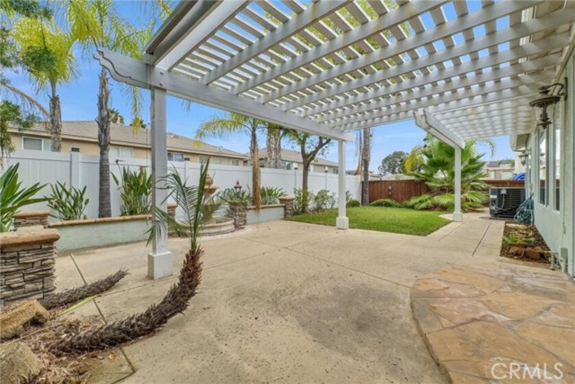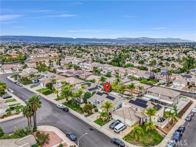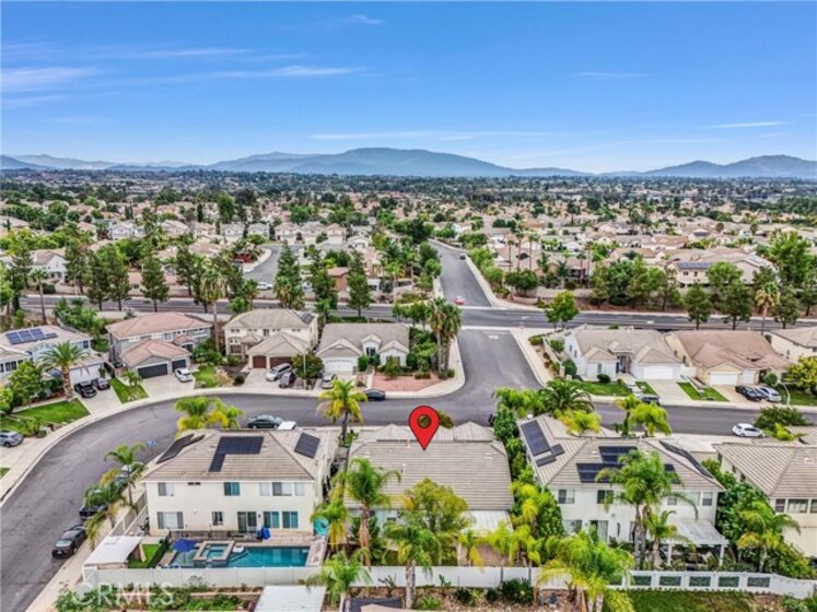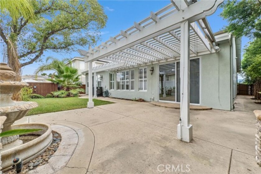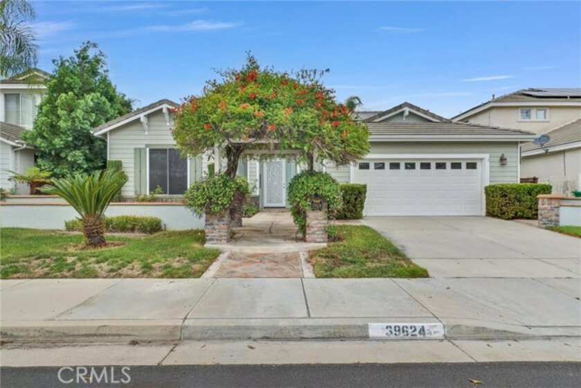 Nestled in the highly desirable Vintage Reserve community of Murrieta, this beautifully updated single-story home offers 3 bedrooms, 2 bathrooms, and approx. 2,025 sq ft of living space on a well-appointed 6,098 sq ft lot. From the moment you arrive, its curb appeal shines with a lush garden arbor entry, charming courtyard, and custom walkways. Inside, a formal entry welcomes you with abundant natural light and graceful arched doorways throughout. The spacious family room is anchored by a tile fireplace with a built-in TV cabinet and flows seamlessly into the dining area, where sliding glass doors open to serene backyard views. The gourmet kitchen is a centerpiece, featuring a custom hood vent, expansive cabinetry with decorative open shelving, beveled granite countertops, a large island with breakfast bar, and upgraded stainless steel appliances including a French door refrigerator, double ovens, and dishwasher. The master suite is a private retreat, complete with sliding door access to a side patio, a walk-in closet, and a spa-inspired bath with dual sinks, a designer-tiled walk-in shower, and a soaking tub framed in stylish tile accents. Two additional bedrooms are generously sized, and the hall bath offers double sinks and a shower-in-tub. The laundry room includes cabinetry and a utility sink with pull-out faucet for convenience. Interior upgrades include fresh paint, ceramic tile flooring with new carpet in bedrooms, plantation shutters and blinds, recessed lighting, upgraded ceiling fans, new black matte bath fixtures, and a new AC unit. Best of all, the home comes with solar panels and a fully paid Tesla wall mount, providing long-term energy savings and efficiency. Outdoors, the backyard is an entertainer’s dream, highlighted by an expansive wood lattice patio cover, custom stamped concrete, tranquil waterfall feature, manicured lawn, stucco-and-brick planters with lighting, and mature trees and shrubs. Located in one of Murrieta’s most sought-after neighborhoods, you’ll enjoy close proximity to top rated schools, parks, shopping, dining, and easy freeway access.